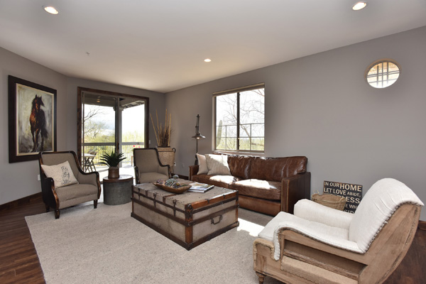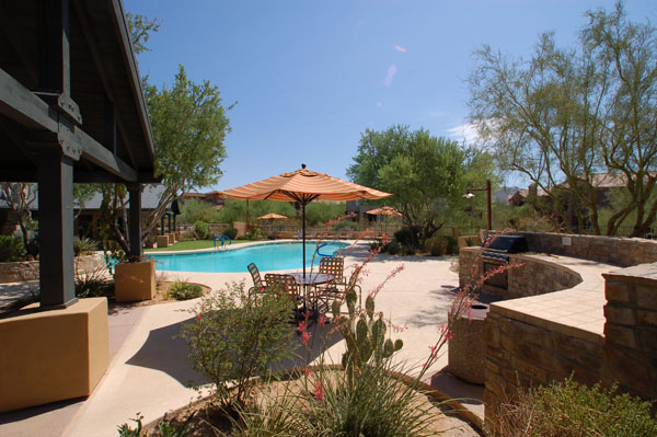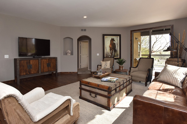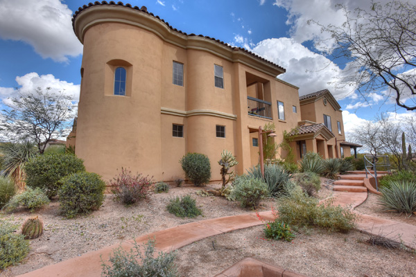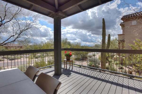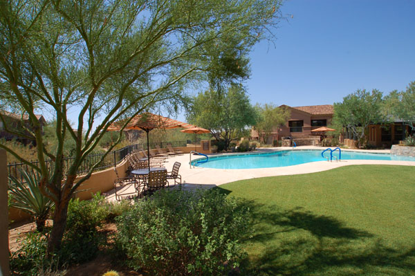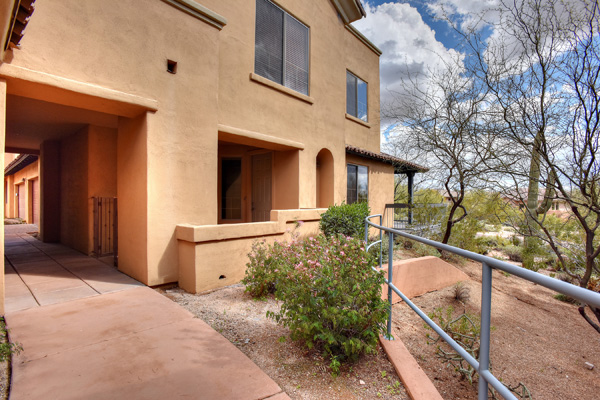 This spacious condominium home with attached 2-car garage is nestled in the heart of North Scottsdale, and has all the benefits thereof. 2014 Remodel provides a spacious new layout with brand new stainless steel appliance, granite countertops and backsplash, all new flooring, southern exposure off the patio, with no interior steps. Streamlined looks with the latest in interior decor, including a customized wood-plank wall. Community pool, spa, and workout facilities onsite and walking distance to shops and restaurants, this quiet getaway could serve as your primary residence, or is perfect for that extra escape space. You also have access to 2 DC Ranch community centers: heated lab pool, spa, basketball and tennis courts, playground, work out facility, grassy areas, and miles of walking trails.