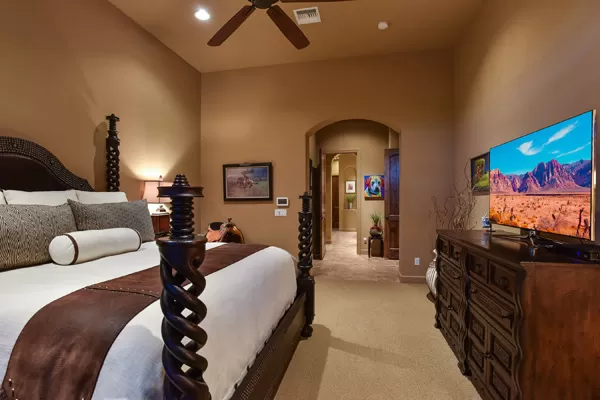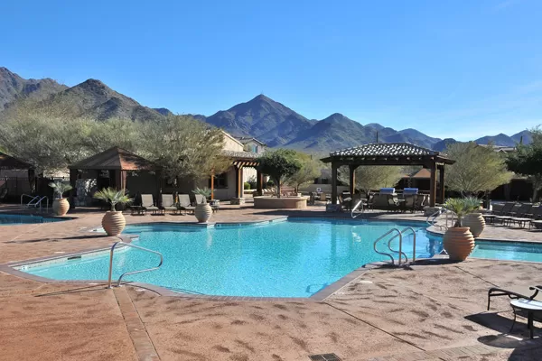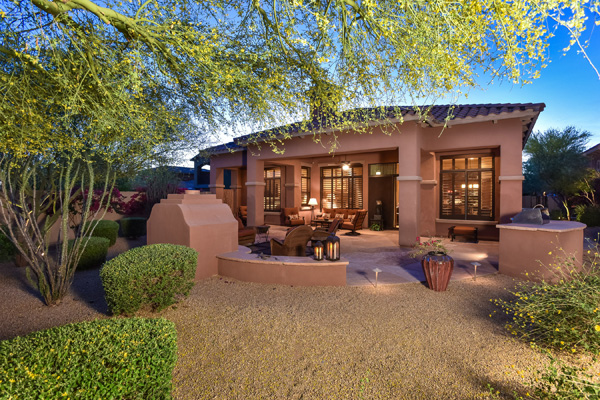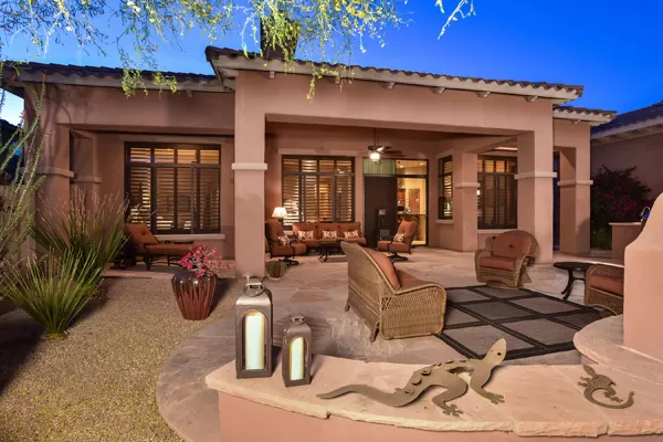 One of the finest single level homes and view lots you willl find in N. Scottsdale. This 2007 Solaria model in Windgate Ranch has significant upgrades throughout. Great room sits at the rear of the home and opens to outside, kitchen, breakfast nook, and formal dining area. Master is split from 2 guest bedrooms, each with an en-suite bath. Office boasts custom built-in his and her desks accompanied by classy closet office organizer. Backyard has southeast exposure to enjoy the sun and McDowell Mountain views. Extended covered patios with flagstone decking allow for spectacular outdoor living with inviting gas fireplace, built-in BBQ, and McDowell Mountain Views. Epoxy sealed garage expanded 2 foot. Take a stroll to the Community Clubhouse, pools, hot tubs, tennis court. A full range of amenities to suit your lifestyle. Please see Documents tab for a full list of upgrades.