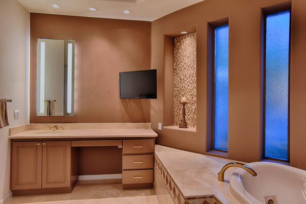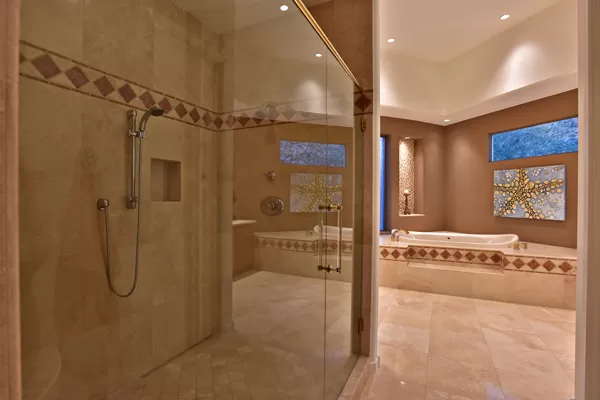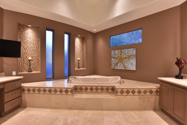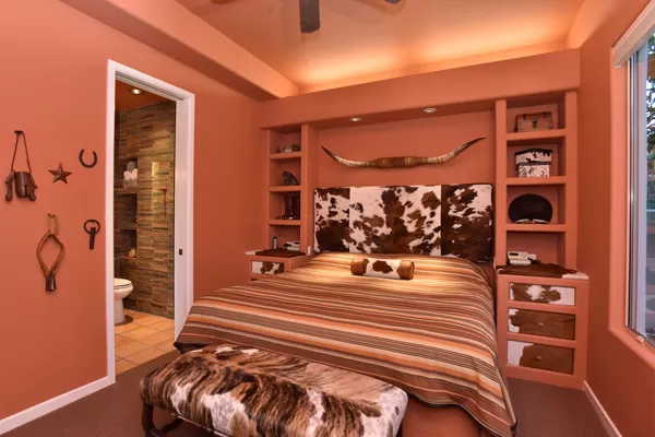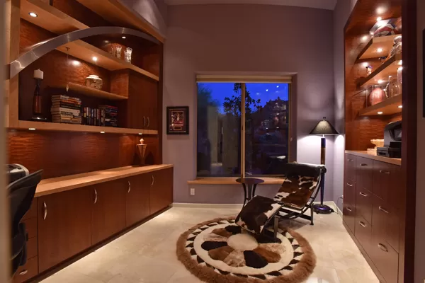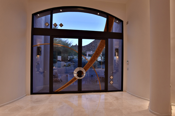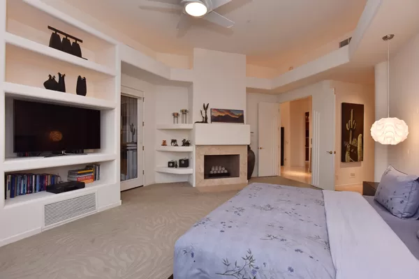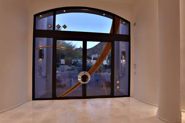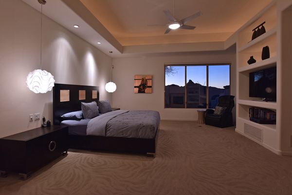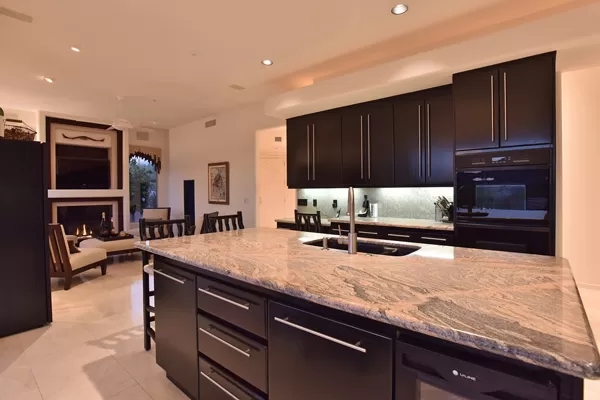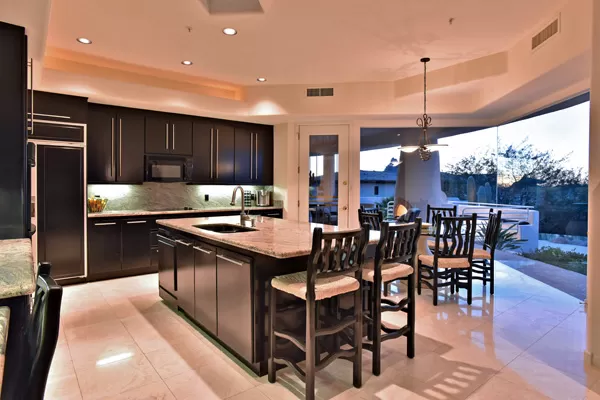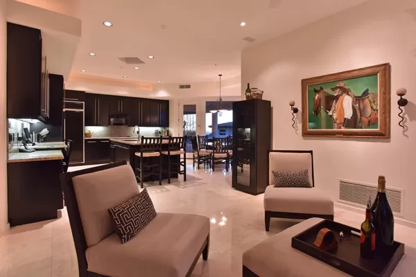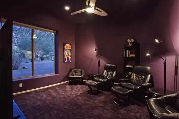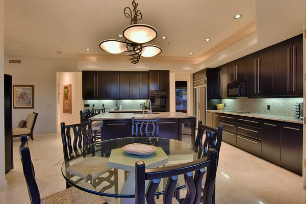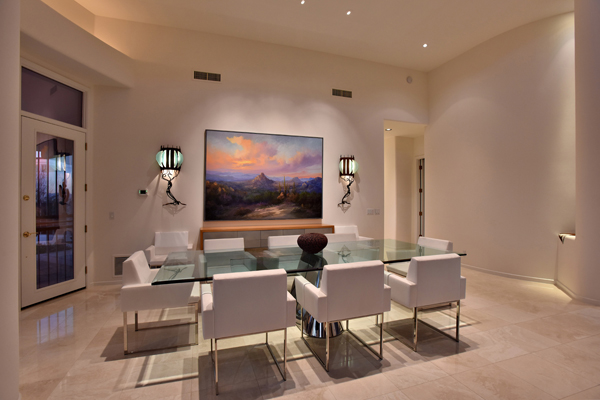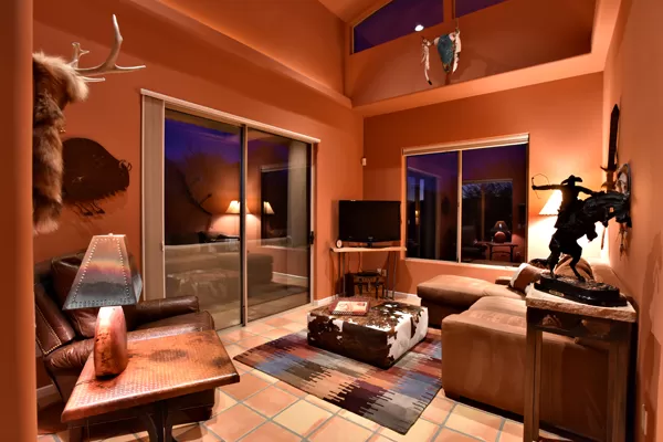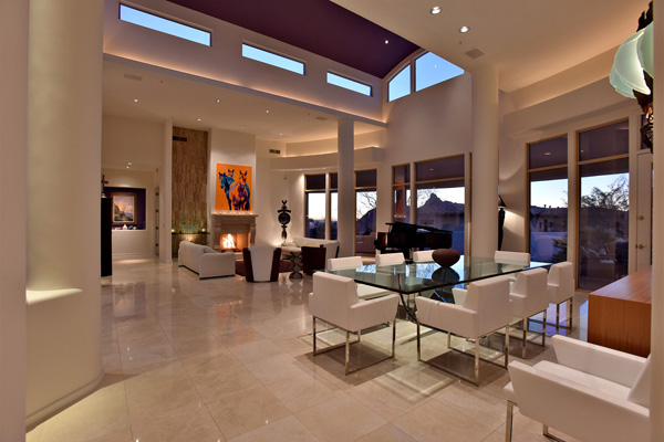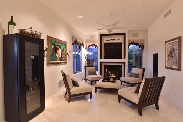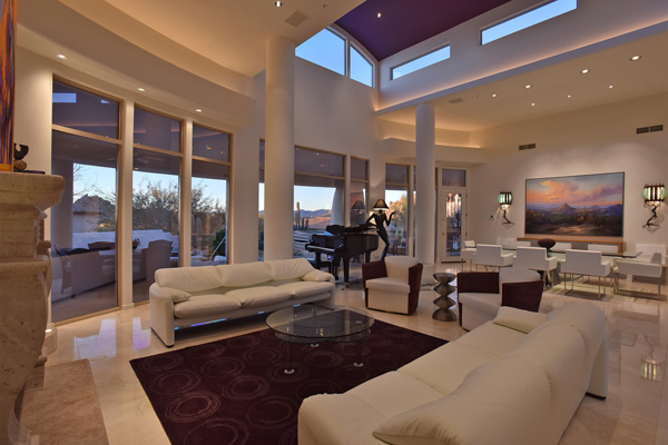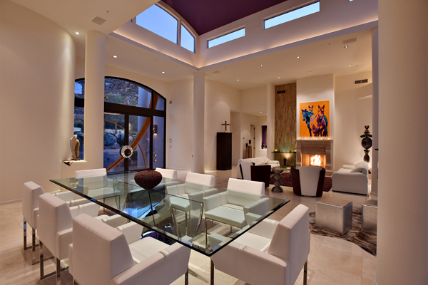 Spectacular views and clean line architecture combine to create this impressive residence in guard gated Troon Village. Formal great room is a showstopper with floor to ceiling windows almost 2 stories high framing expansive views in all directions; eat-in kitchen design is on trend with newer sleek cabinetry and appliances to seamlessly blend including island counter wine fridge; adjacent family room with fireplace; all areas featuring butted glass to maximize views; master suite fully appointed plus separate office; additional bedrooms with private baths plus a TRUEguest casita with private bath and kitchenette. ASID award winning den featured in Phoenix Homes and Garden. Elevated location provides privacy as well as mountain and city light views throughout. The expansive covered patio wraps the entire back facade offering year round enjoyment with a wood burning fireplace, built-in fans, and multi-use space for seating and dining. A dramatic spa and negative edge pool with boulder accents perfectly aligned with Pinnacle Peak create an enduring hallmark for the home.