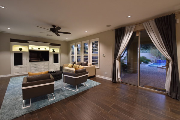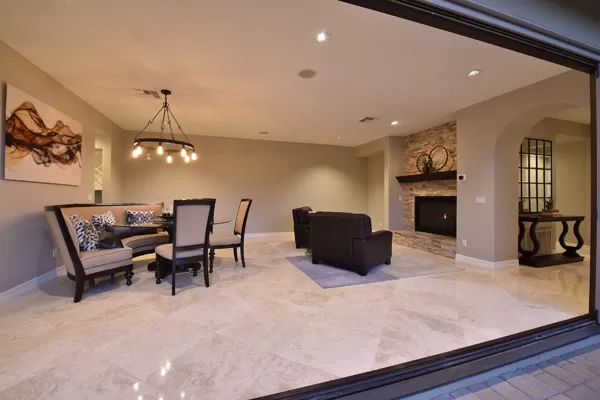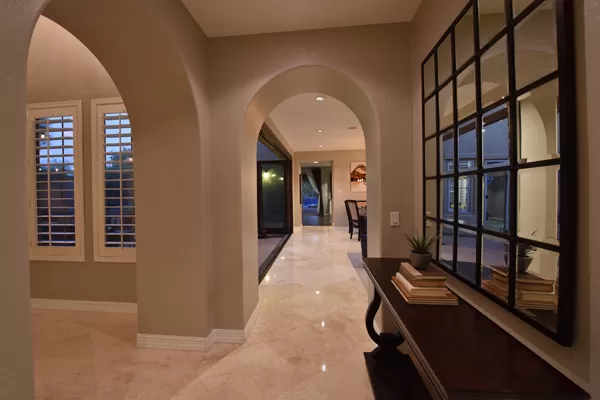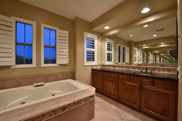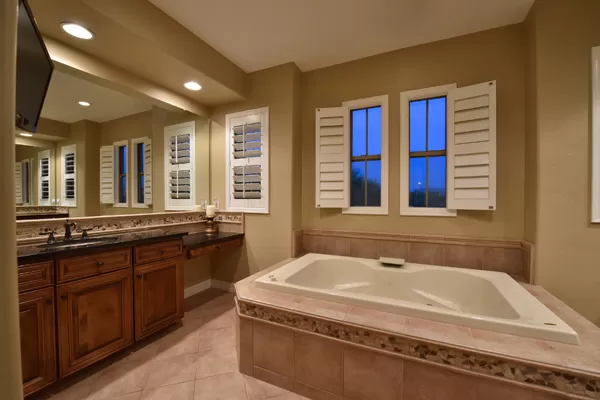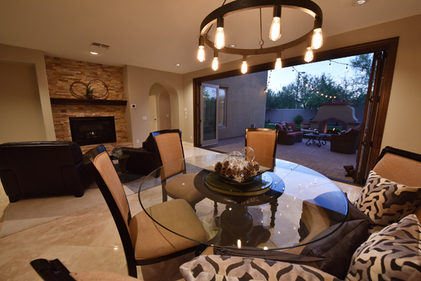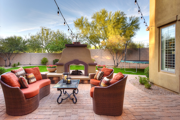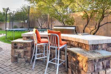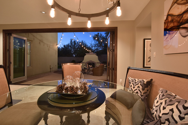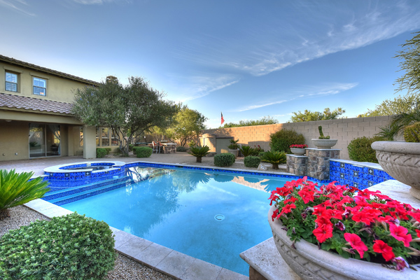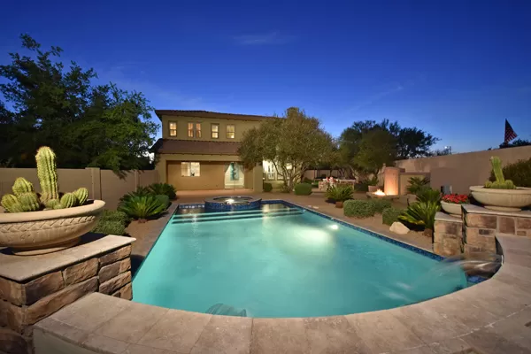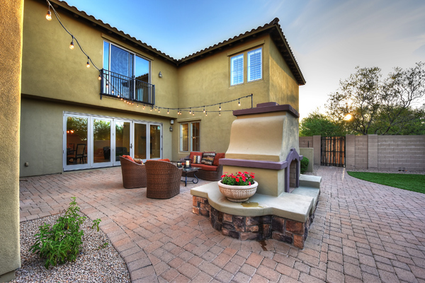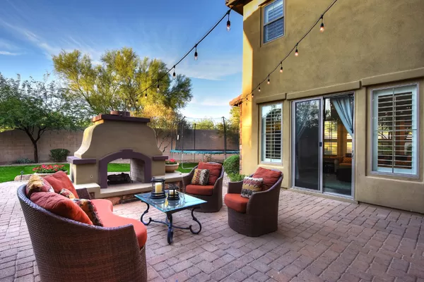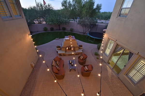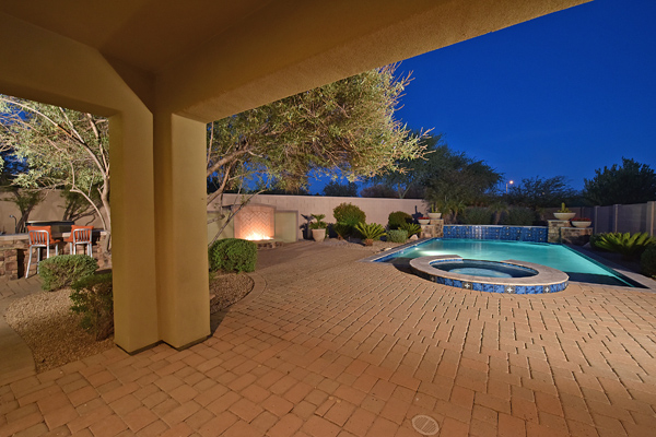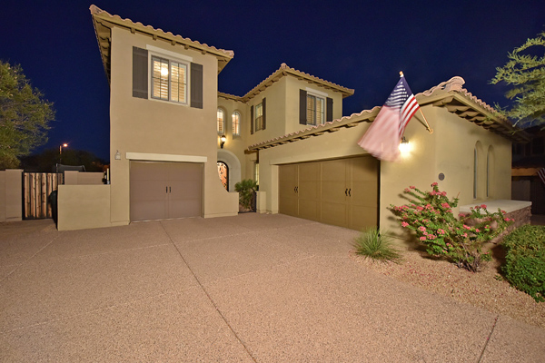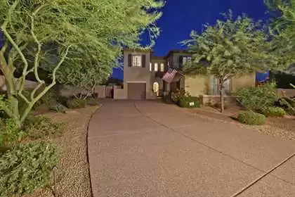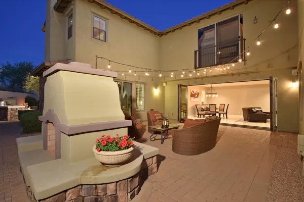 This highly desirable home is on one of the best and largest lots in Aviano at Desert Ridge. Just steps away from the community center and park and within walking distance to Wildfire Elementary. The private street leads to the extended length driveway and a split 3-car garage with an entry courtyard. Upon entering the foyer take note of the polished travertine and wood plank tile flooring with 4 inch baseboards and designer paint. The five panel folding panoramic doors lead you from the dining room to the resort style backyard with a large patio seating area with two way fireplace wrapping around to the outdoor kitchen with bar seating. A beautiful spa that flows over into the pool, hand-laid pavers, synthetic grass, and fire pit complete the expansive backyard. The newly remodeled kitchen featuResshaker style white custom cabinetry with accent molding, black granite counters, tile backsplash, gas cooktop, and stainless steel appliances opening to the family room with custom built-ins. The spacious master suite has room to spread out with it’s own seating area and cozy fireplace. The master bathroom has dual split vanities framing the jetted tub, walk in closet with cabinetry storage, two way shower and details galore. At 3600 square feet, 4 bedrooms, an office/playroom and a loft, this immaculate home is ready for you to call home. The community center includes tennis and basketball courts, swimming pools, community activities, clubhouse and more. Don’t miss out on the opportunity to live in this wonderful community. Other featuResinclude: plantation shutters, epoxy garage flooring, garage cabinetry, matching metal accent doors at the front and courtyard, mature landscaping, stone exterior details, upgraded carpets, oil rubbed bronze hardware throughout, nest thermostats, central vacuum, LED lighting, Wi-Fi controlled irrigation system, laundry with sink, corner lot, and formal dining and living spaces.