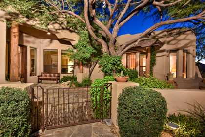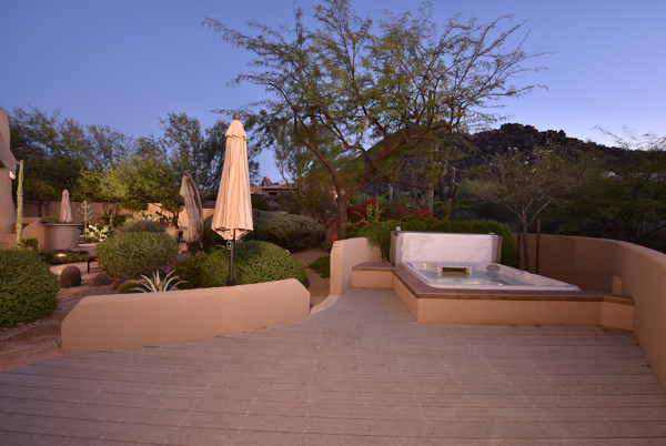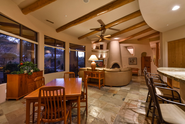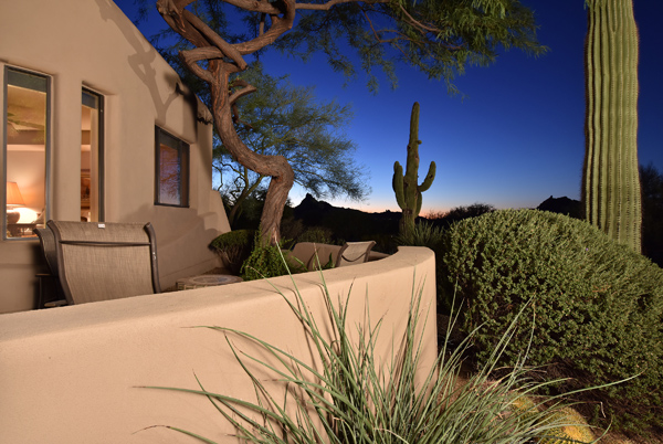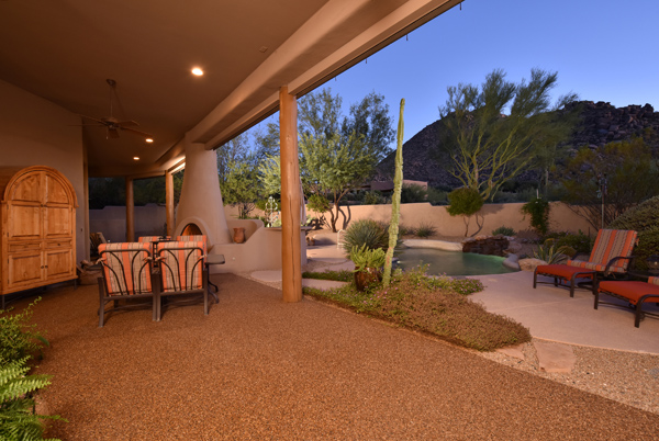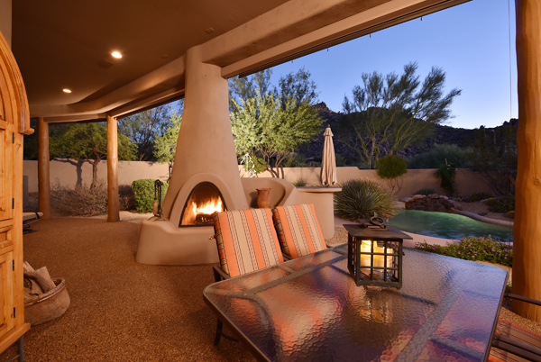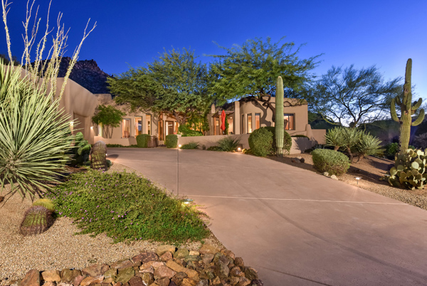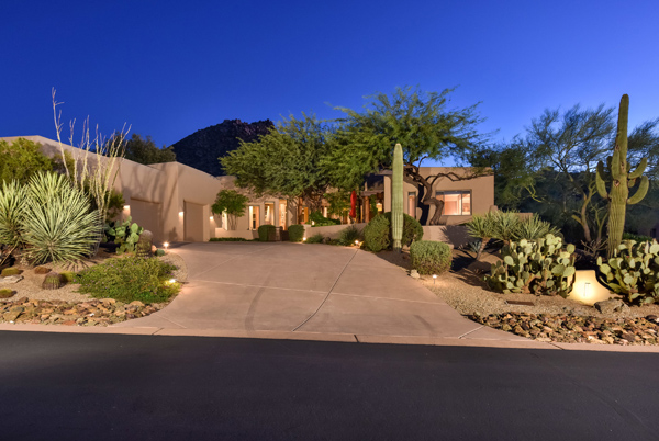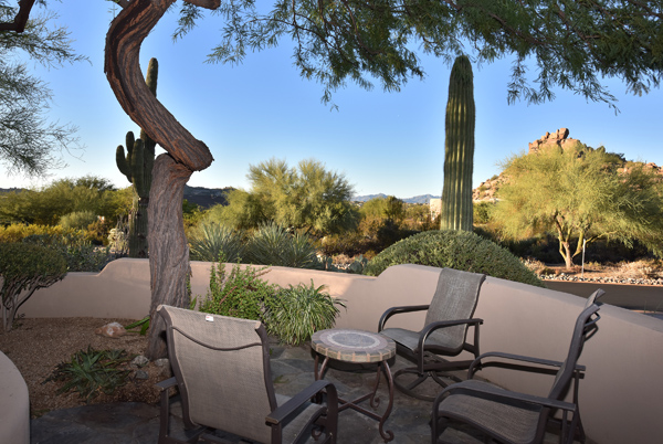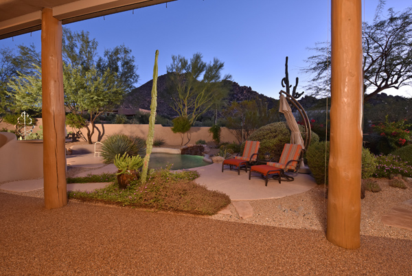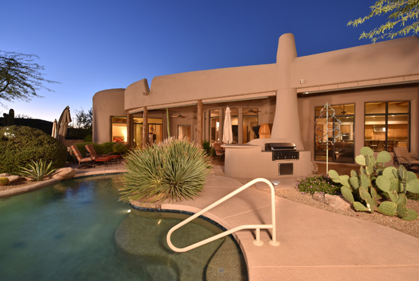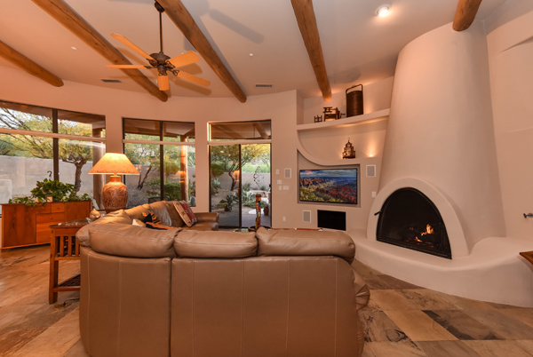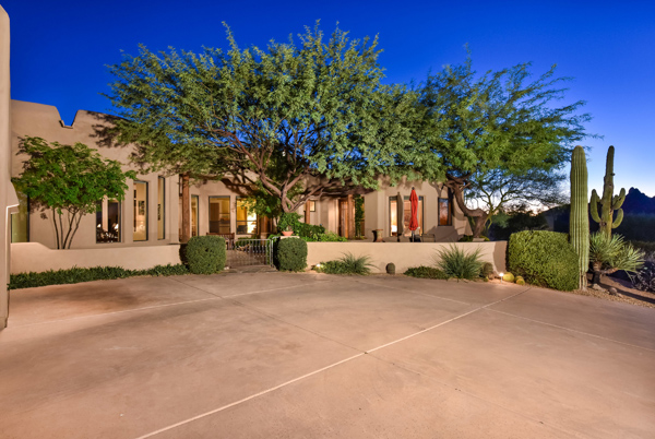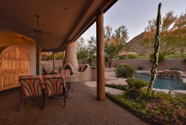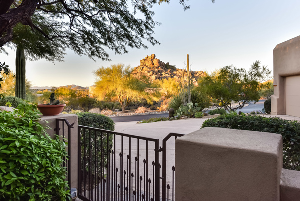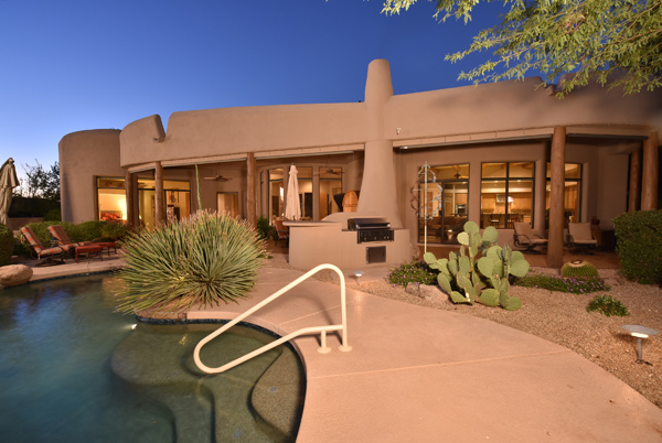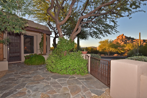 Welcome home to your very own private retreat! Outstanding resort yard frames the up close dramatic view of Troon Mountain to be enjoyed all year round with south facing orientation. Interior continues to embrace the views throughout and are complimented with a tasteful use of territorial accents that lend to all types of decor styles. Formal dining & living rooms; open kitchen/family room with dining area + breakfast bar; multiple fireplaces; top of the line appliances including hooded gas range and warming drawer; neutral slate flooring, viga beamed ceilings & pillars; floor to ceiling windows for natural light and views; wraparound covered patio with seating and dining space, fireplace, and cooking station; pool & spa; private entry casita; & oversized 3 car garage. Office with ensuite bath and closet could converted to bedroom. This is the best of Troon!
