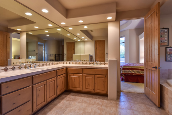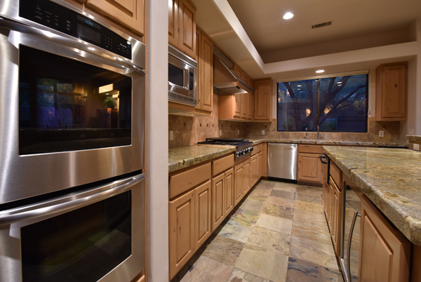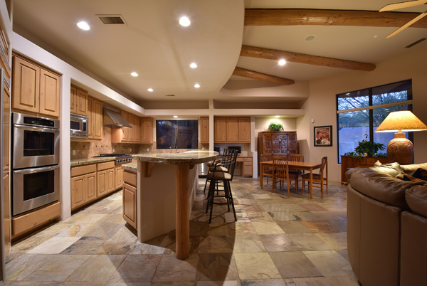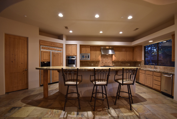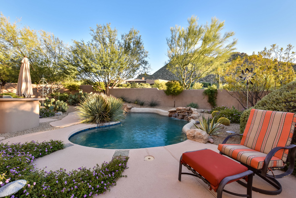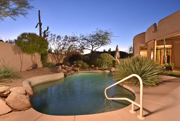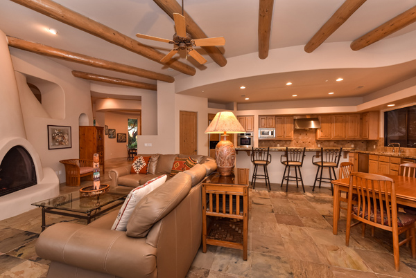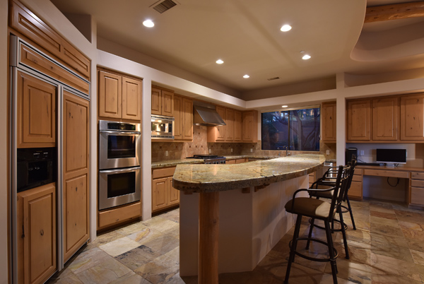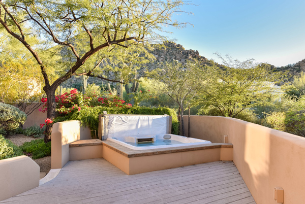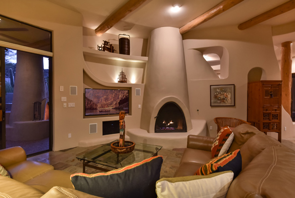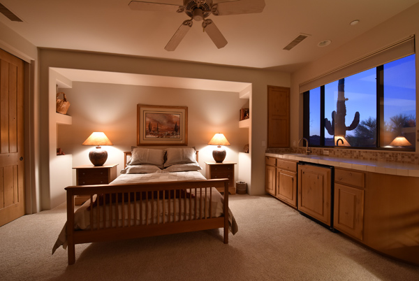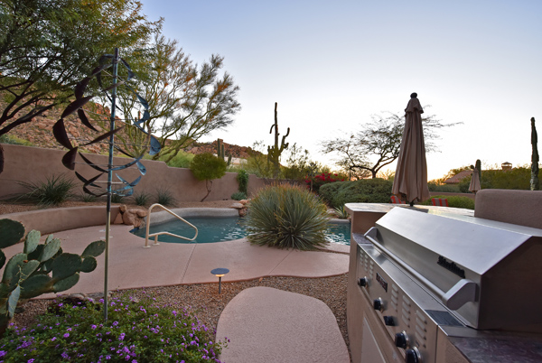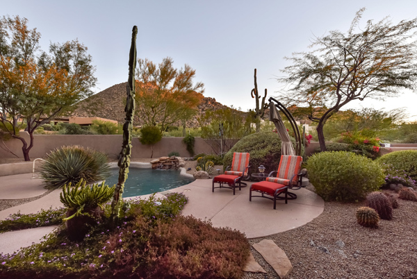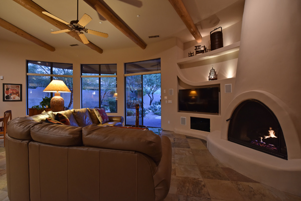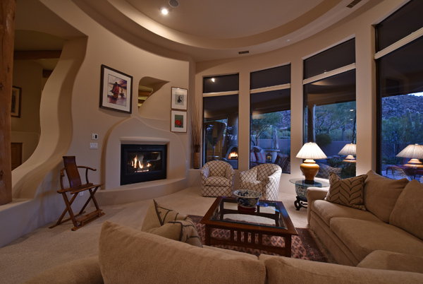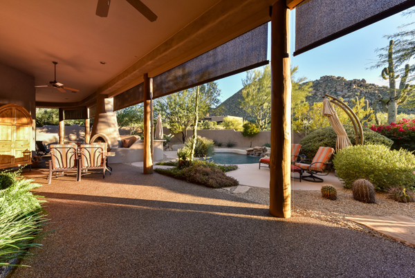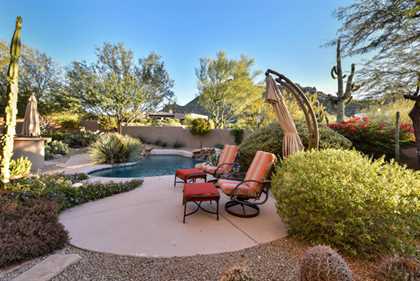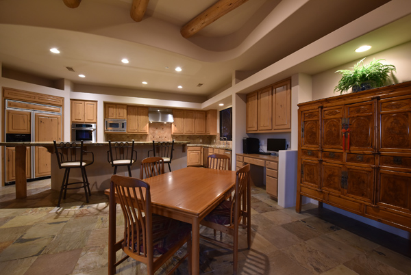 Welcome home to your very own private retreat! Outstanding resort yard frames the up close dramatic view of Troon Mountain to be enjoyed all year round with south facing orientation. Interior continues to embrace the views throughout and are complimented with a tasteful use of territorial accents that lend to all types of decor styles. Formal dining & living rooms; open kitchen/family room with dining area + breakfast bar; multiple fireplaces; top of the line appliances including hooded gas range and warming drawer; neutral slate flooring, viga beamed ceilings & pillars; floor to ceiling windows for natural light and views; wraparound covered patio with seating and dining space, fireplace, and cooking station; pool & spa; private entry casita; & oversized 3 car garage. Office with ensuite bath and closet could converted to bedroom. This is the best of Troon!