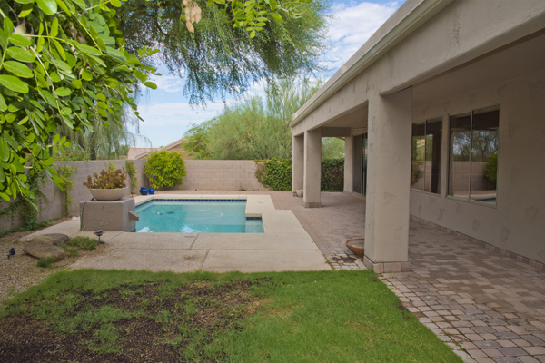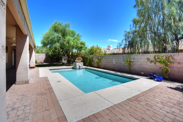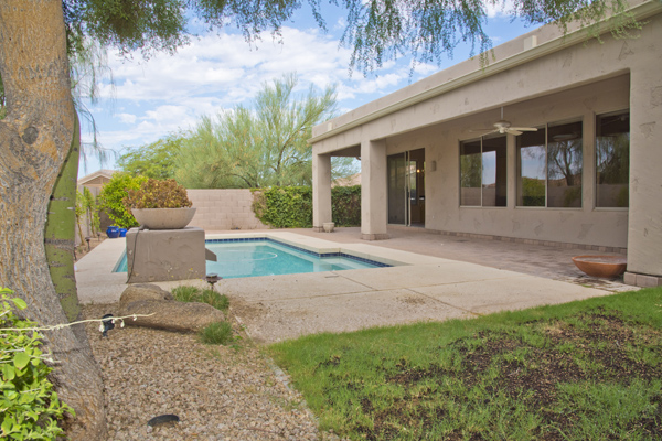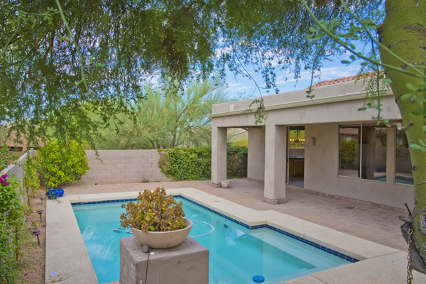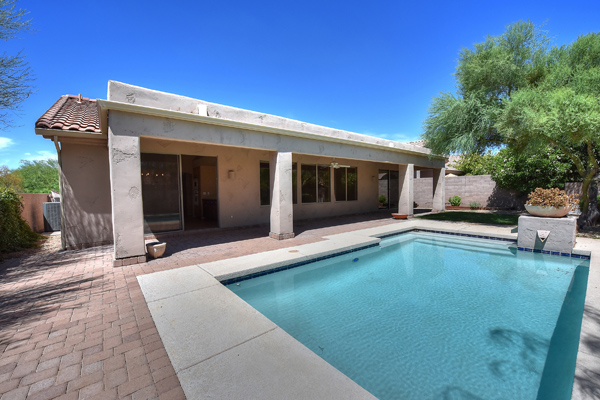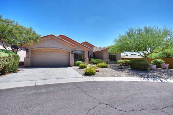 Great opportunity to buy a wonderful home on a private, quiet cul-de-sac lot in the heart of Pinnacle Peak. Conveniently located within walking distance to AJ’s (local grocery), restaurants and stores. Featuring a 3 bedroom split room floor plan with a separate den and vaulted ceilings offering plenty of light open space. Spacious sized guest bedrooms with a master suite that has its own access to the back. The pavers under the large covered patio extend around the refreshing pool and make for an easy care backyard. A mature tree provides shade for the grassy area. Fully remodeled kitchen featuring two toned cabinets with double islands. Plantation shutters throughout. Don’t miss out on this chance to make this home your own!