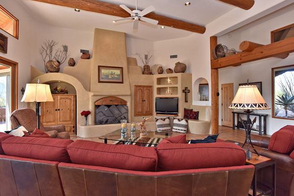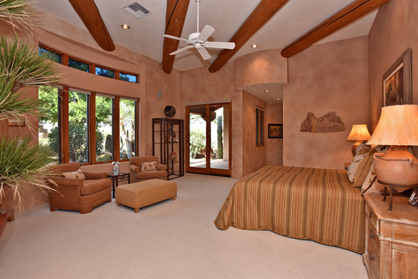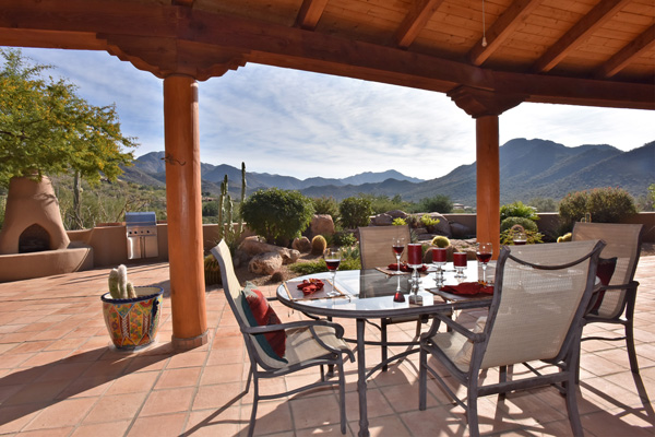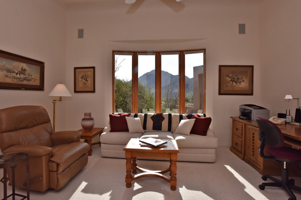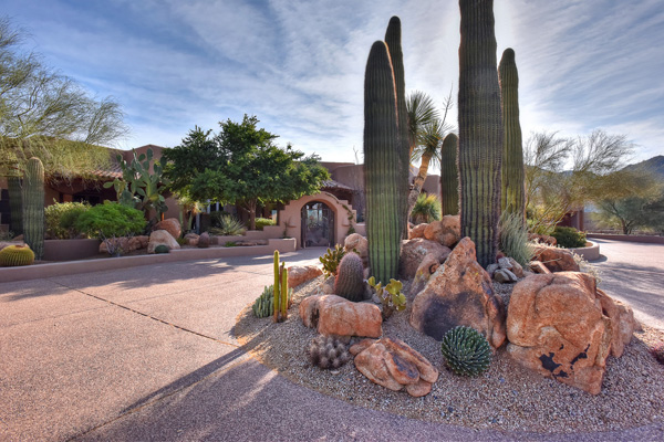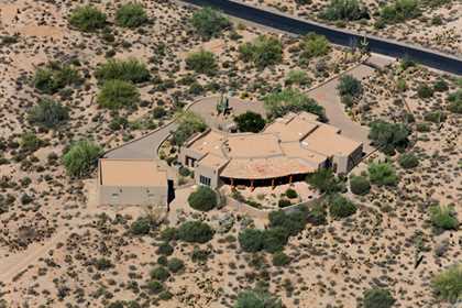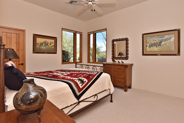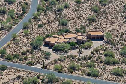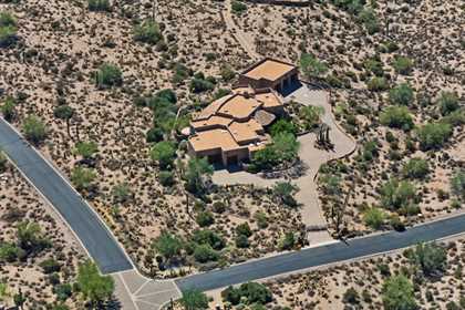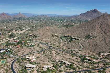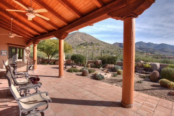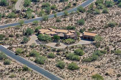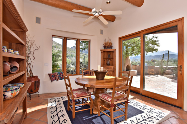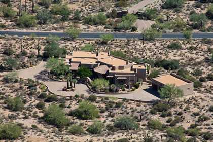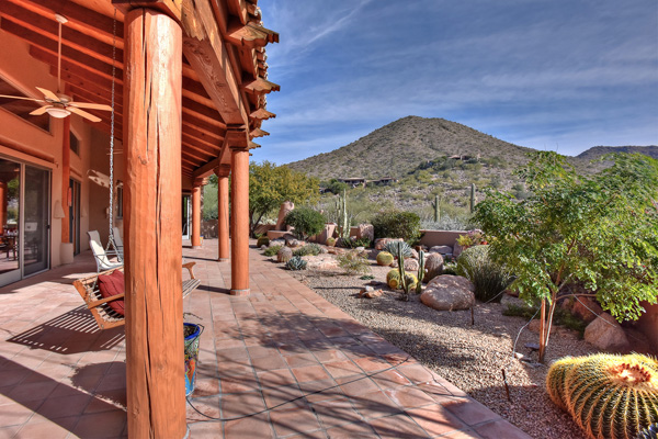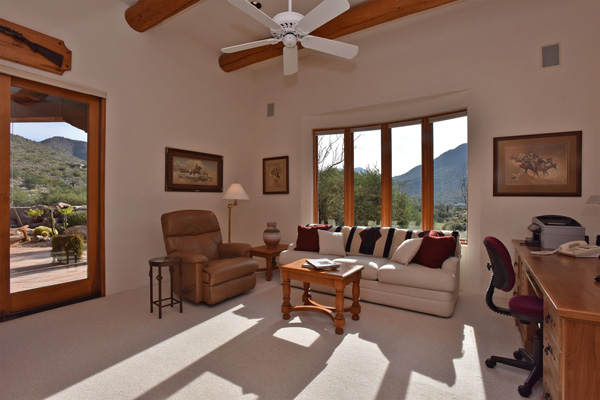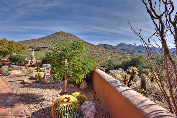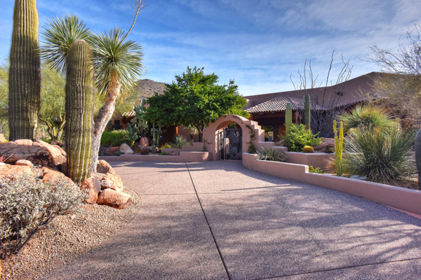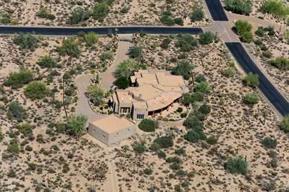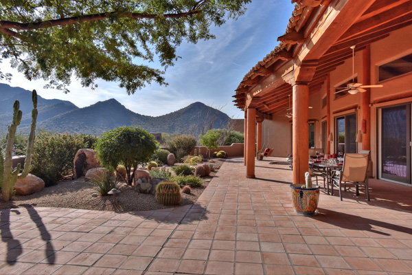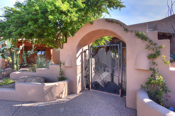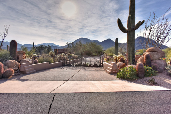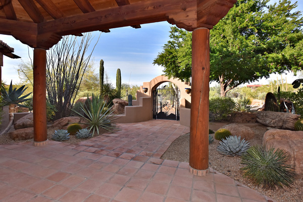 Beginning at its gated drive, this AZ territorial residence on a private 1.78 acRescomplete with a generous setback offers expansive views of the desert vista and up close McDowell Mountains. Vega beams and pillars, hacienda accent tiles, Saltillo tile flooring, and indoor and outdoor adobe style wood burning fireplaces add to the authenticity of the design. Single level floor plan with no interior steps; high beamed great room with walls of windows and doors to access the covered patio wrapping the entire back facade for indoor/outdoor living; eat in kitchen with wine rack, walk-in pantry, dining area, and breakfast bar; split master suite with large bath, seating area and private patio; 2 additional bedrooms plus office with access to patio; car enthusiasts will appreciate the attached 3 car garage PLUS the freestanding workshop that can house an additional 3 cars with half bath. Privately gated circular drive leads to entry courtyard and motor court, covered back patio flows to beautifully landscaped yard dotted with mature Saguaros, chollas, agaves, and cacti. Entire property is oriented to accentuate the dramatic mountain views from every angle and located in the highly desired 85255 zip code, minutes to shopping and dining.