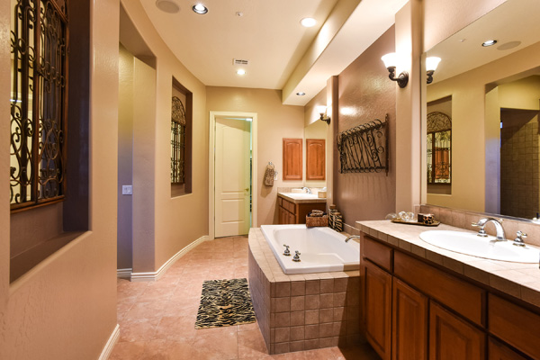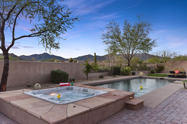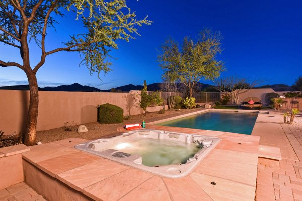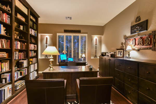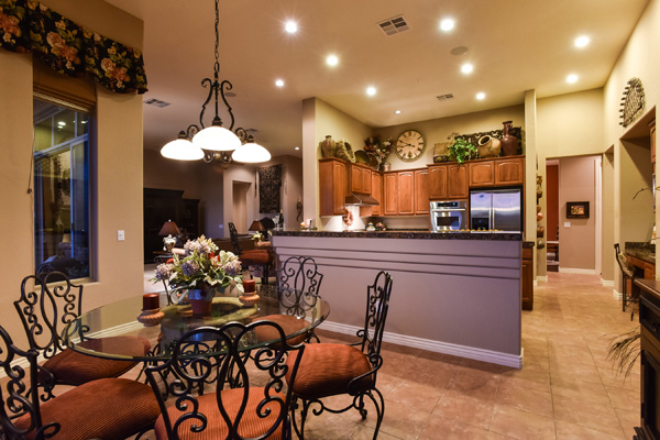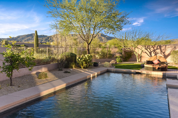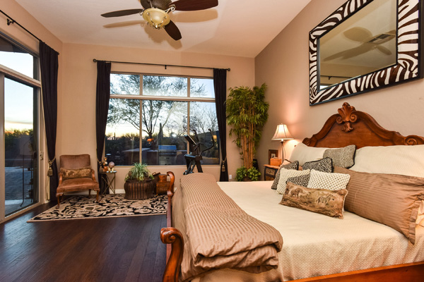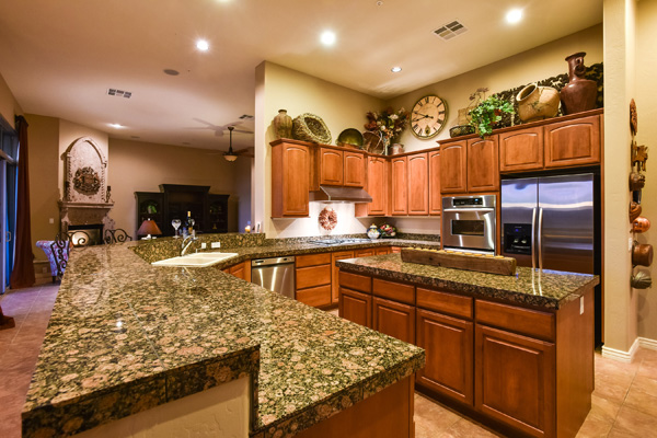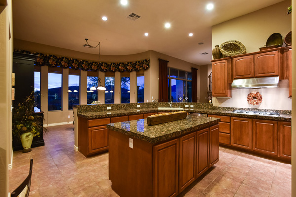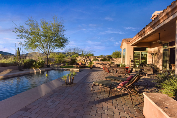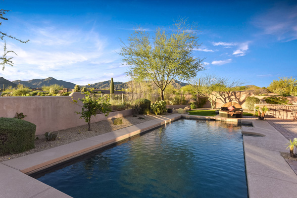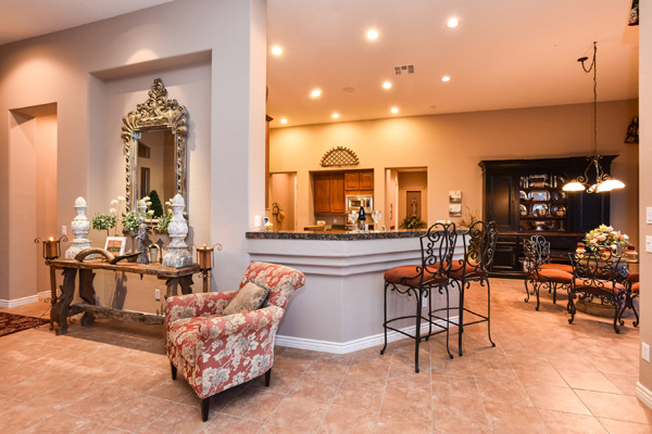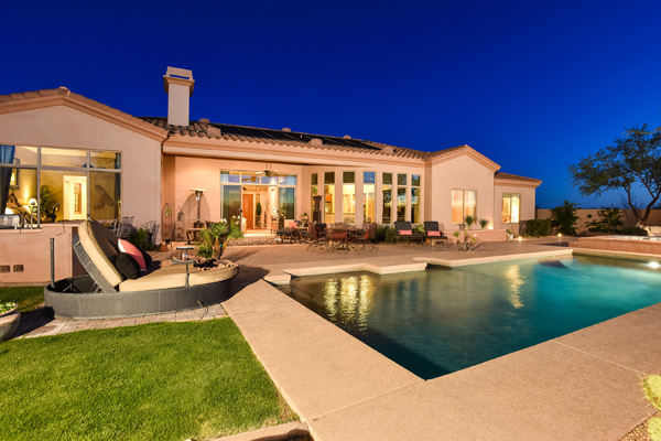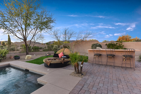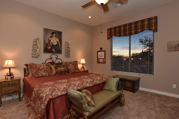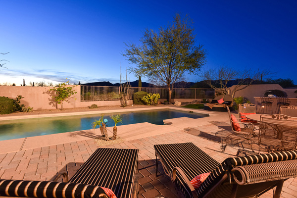 In the gated Cresta Norte, this home begins on a 1.52 acre lot in a private cul-de-sac and oriented to enjoy dramatic mountain vistas and sunset views year round. Three bedrooms plus office with library shelving. A desirable attached casita offers privacy for guests; Master suite is split. A lavish outdoor living area stuns with its covered patio, seating with exterior fireplace, cooking station with dining bar, paver decking for additional lounge and dining areas, desert garden beds, grass lawn, and heated pool and spa. Inside, open great room plan has flowing living spaces with high ceilings, tile and wood flooring, walls of windows and retractable doors framing views. Open eat-in kitchen has breakfast bar, stainless steel appliances including hooded gas range, granite counters, and dining nook. Tastefully appointed and sure to impress!