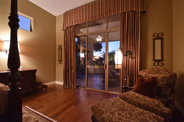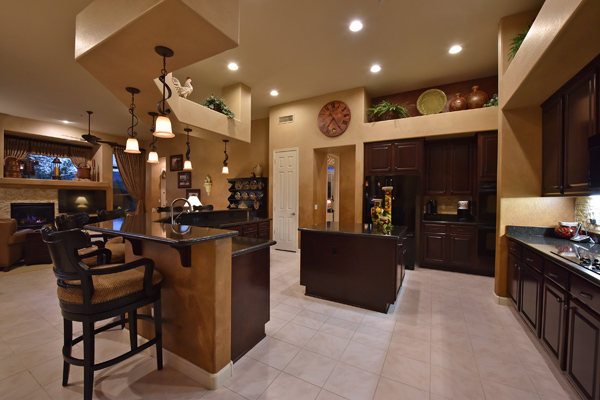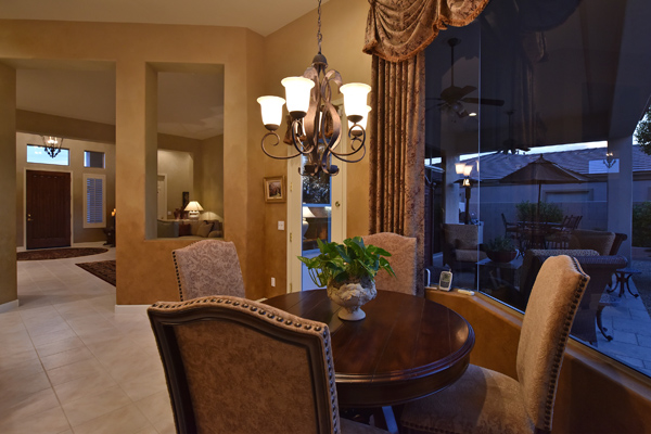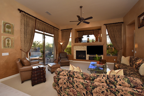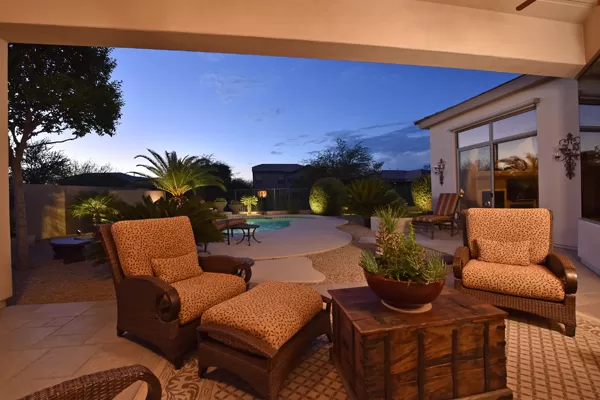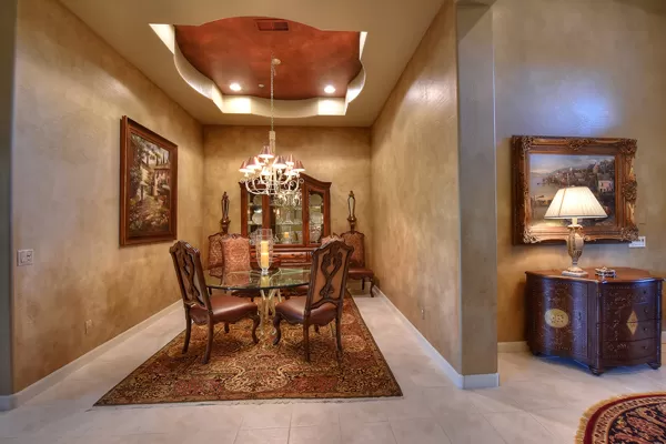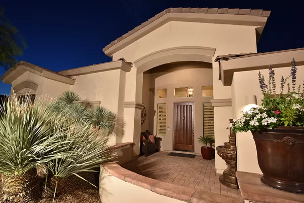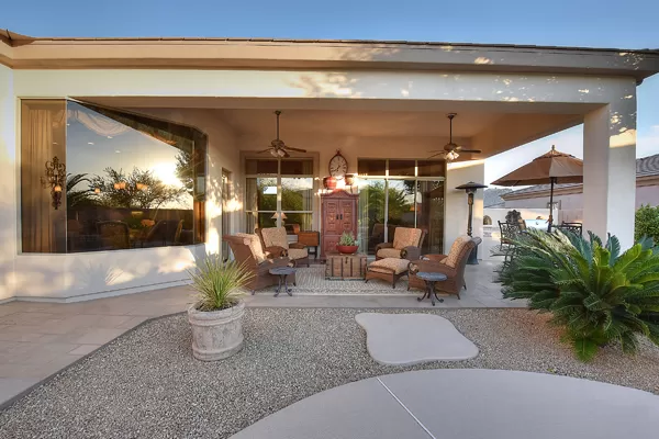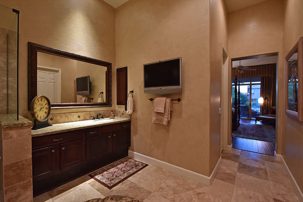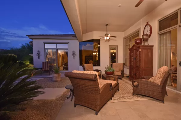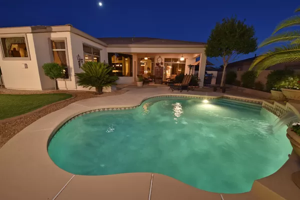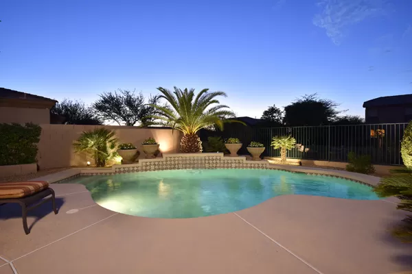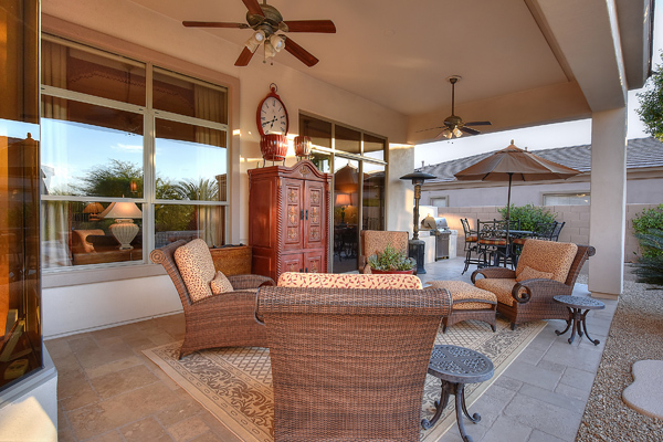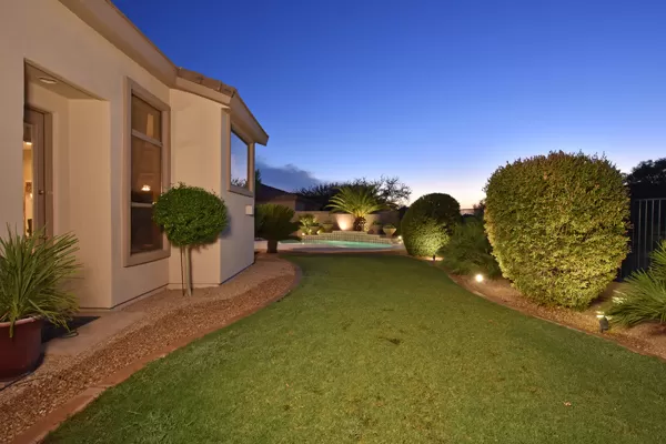 Welcome home to your private desert oasis with a recently renovated backyard featuring an extended patio with a cooking station, multiple spaces for both dining and seating, and relaxing pool with tranquil water features, stunning palms and landscape plus natural grass that wraps around to a large side yard. Renovations also highlight the interior with new stone and tile work, French doors installed to enjoy access and views to the yard, new lighting fixtures, and updated bathrooms including a completely overhauled master bathroom comparable to one found in a custom home complete with a walk-in frameless glass and travertine shower, soaking tub, separate dual sinks, and two huge walk-in closets. Floor plan begins with formal flex space perfect for traditional living and dining areas, or to be used as a billiards, media & bar space and/or office area. The open family room/kitchen featuResspacious cooking/prep space, a breakfast bar, dining area, and fireplace with new entertainment center. The wood floored master bedroom is split from the 3 additional guest bedrooms each connected to a private bathroom. Additional featuResinclude a full size laundry room, oversized 3-car garage with built-in storage cabinets and new epoxy flooring, updated paver entry, and new exterior paint. Inside and out, this is it!
