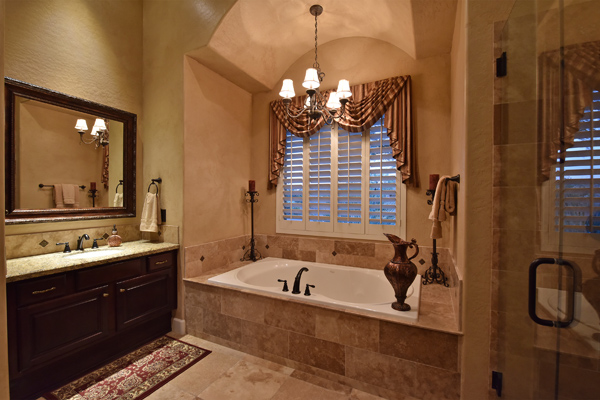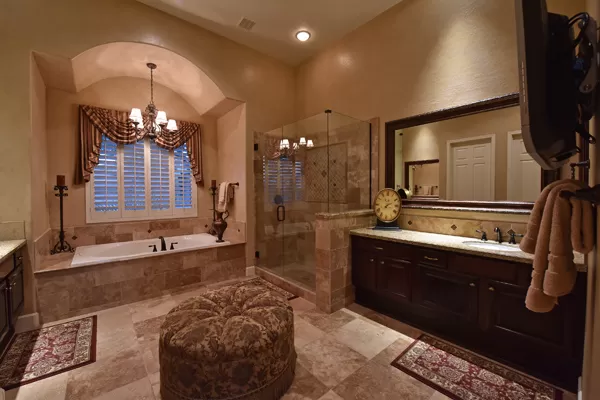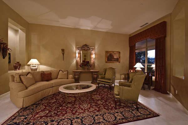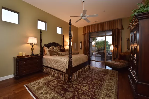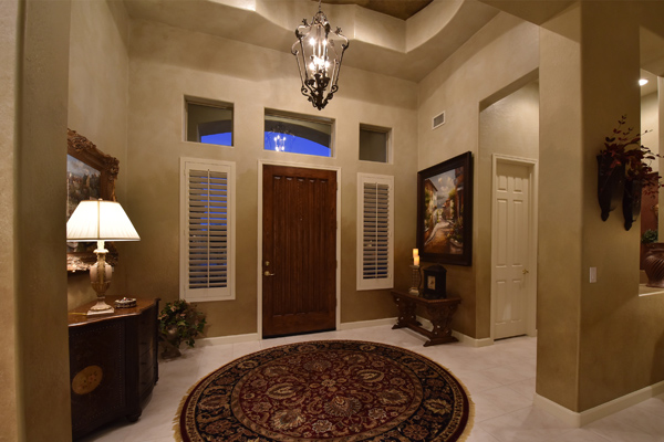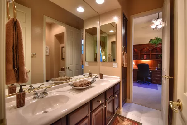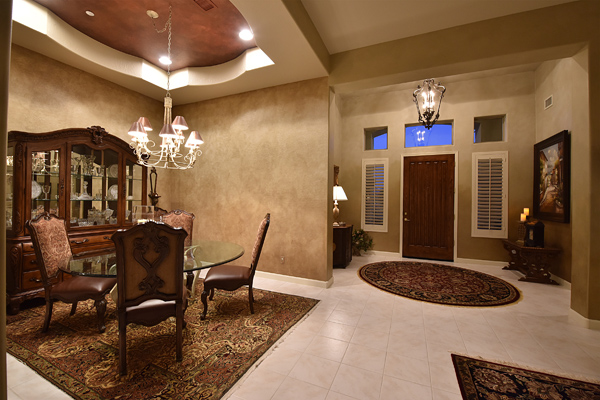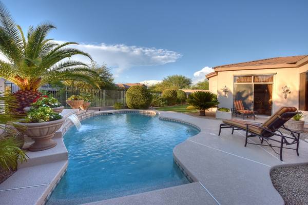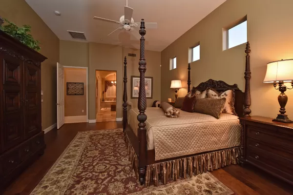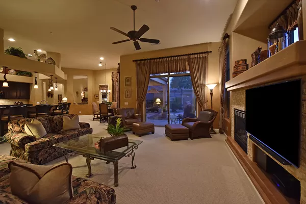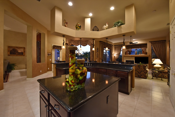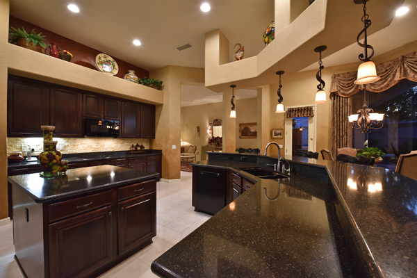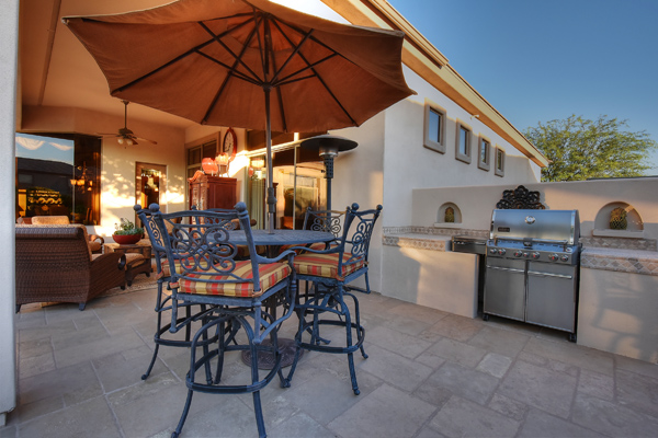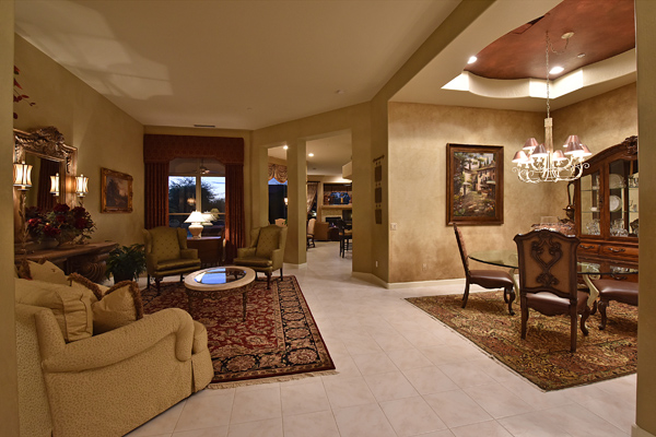 Welcome home to your private desert oasis with a recently renovated backyard featuring an extended patio with a cooking station, multiple spaces for both dining and seating, and relaxing pool with tranquil water features, stunning palms and landscape plus natural grass that wraps around to a large side yard. Renovations also highlight the interior with new stone and tile work, French doors installed to enjoy access and views to the yard, new lighting fixtures, and updated bathrooms including a completely overhauled master bathroom comparable to one found in a custom home complete with a walk-in frameless glass and travertine shower, soaking tub, separate dual sinks, and two huge walk-in closets. Floor plan begins with formal flex space perfect for traditional living and dining areas, or to be used as a billiards, media & bar space and/or office area. The open family room/kitchen featuResspacious cooking/prep space, a breakfast bar, dining area, and fireplace with new entertainment center. The wood floored master bedroom is split from the 3 additional guest bedrooms each connected to a private bathroom. Additional featuResinclude a full size laundry room, oversized 3-car garage with built-in storage cabinets and new epoxy flooring, updated paver entry, and new exterior paint. Inside and out, this is it!