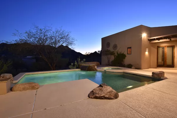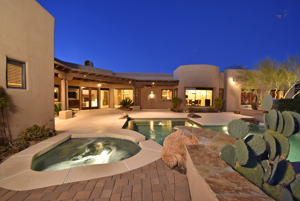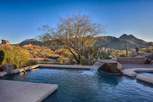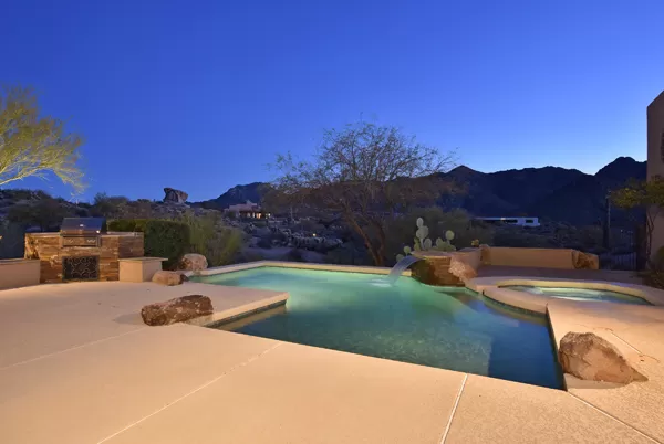 A truly spectacular home located on a private cul-de-sac in the prestigious community of Talus at Troon North. Enjoy endless sky and sunset views from the resort style backyard with a negative edge pool and spa. Located on the 4th Green of the highly acclaimed Pinnacle Course, your large patios and seating areas let you take in the beautiful green course. The large gourmet kitchen has endless custom cabinets, granite countertops, s/s appliances, double ovens and double islands with seating. With a modern open floor plan the kitchen, family and breakfast area all open to each other with a corner fireplace and large picture windows to enjoy the views. FeatuResinclude: pavered drive, 3 car garage, alder wood doors, travertine flooring, BBQ, grassy area, 4 fireplace, and mature landscaping. Inside you will find 4 beds plus office and 4.5 baths. The spacious master suite featuResa large master bath with separate vanities, large snail shower, soaking tub and lots of light. Other featuResof the home include: large pavered drive with three car garage, alder wood doors, travertine flooring, formal dining, BBQ, grassy area and fireplace in the rear yard, mature landscaping, custom front door, art niches, custom painting and an appreciation for fine details.