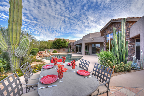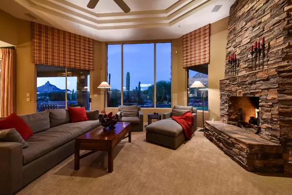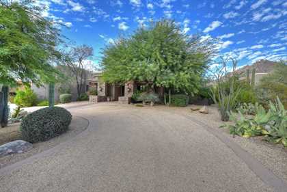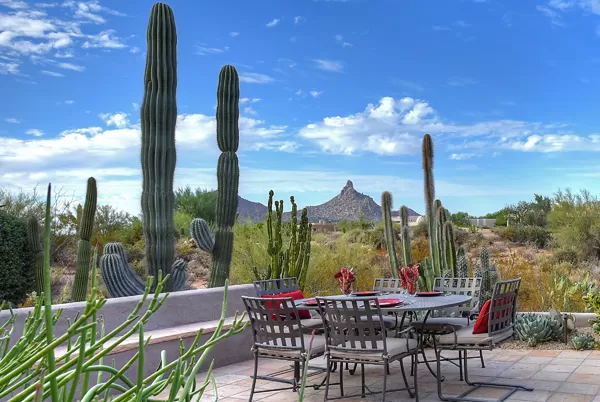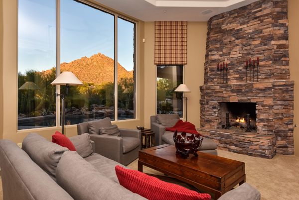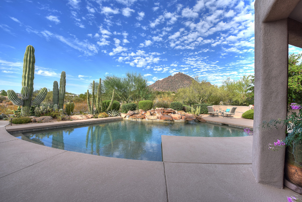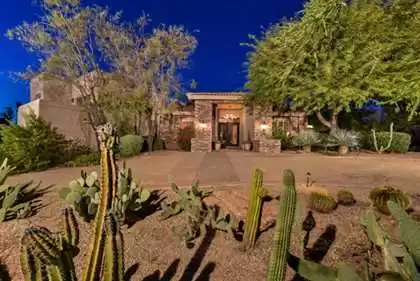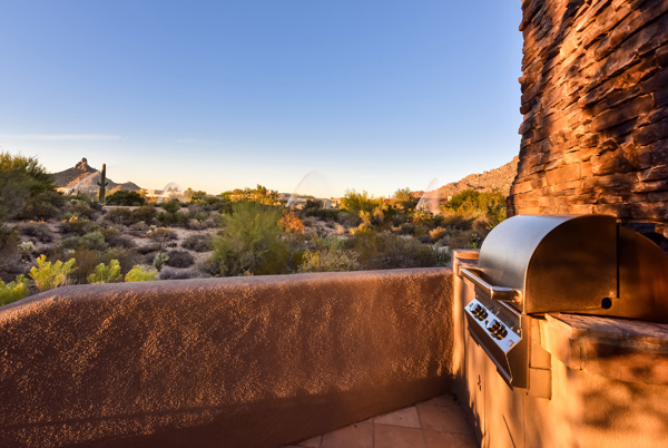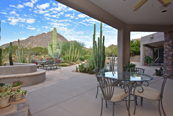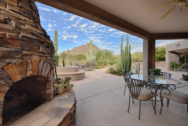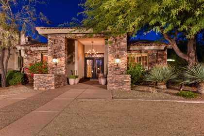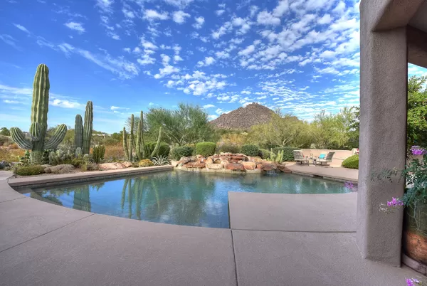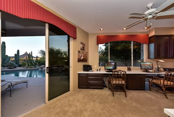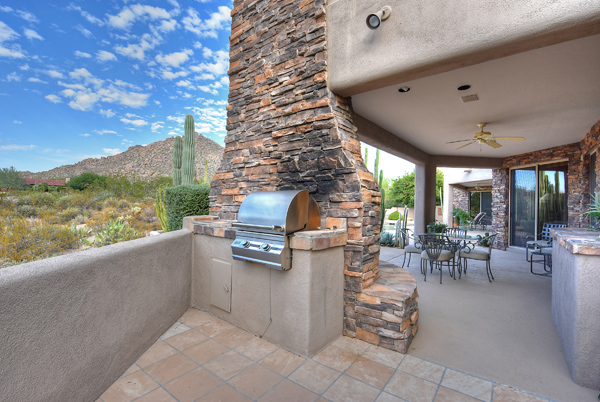 MAJOR RENOVATION COMPLETE: Private Residence with stellar views of Troon Mountain, Pinnacle Peak and the 11th Fairway of Troon Country Club has been completely enhanced inside and out: stacked stone accents, new kitchen with state of the art appliances including hooded gas range, refinished cabinetry, master bathroom with tumbled travertine, plantation shutters, lush landscaping, and remodeled backyard just to start. Floor plan offers traditional living with formal living and dining rooms plus an eat-in kitchen that opens to the family room, main floor master suite, two additional guest bedrooms, and an oversized office with three workstations. The exterior living space will impress with the large covered patio with outdoor fireplace, room for multiple seating and dining areas, built-in BBQ and pool with rock water feature…all framing the priceless views!
