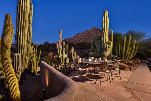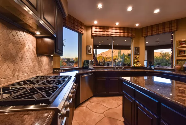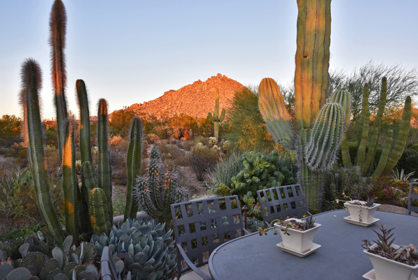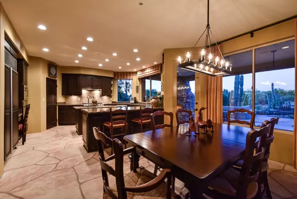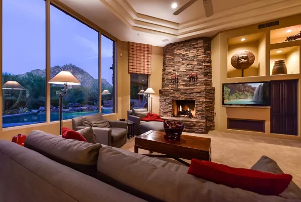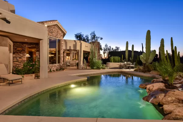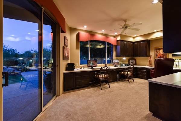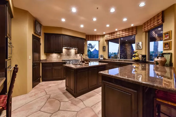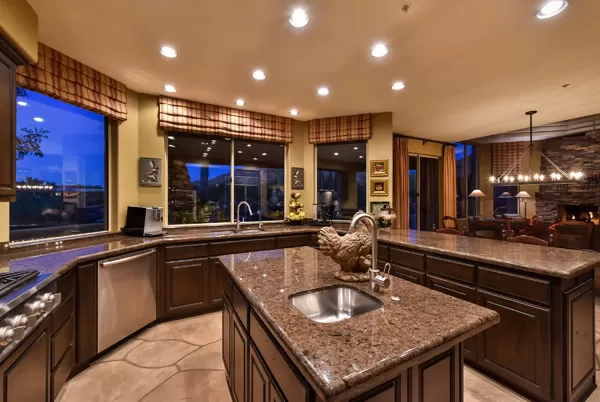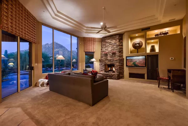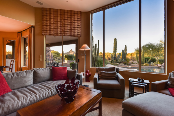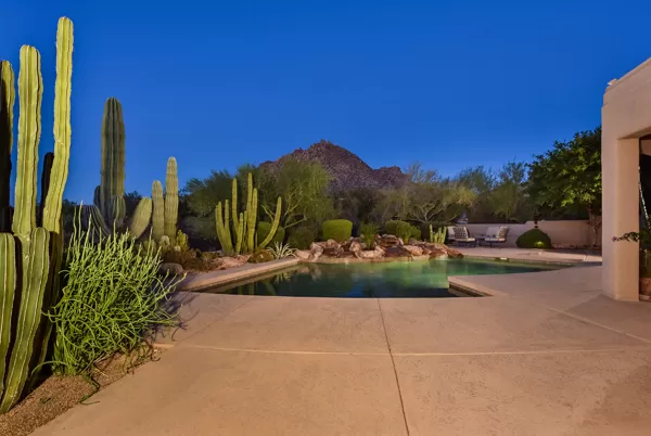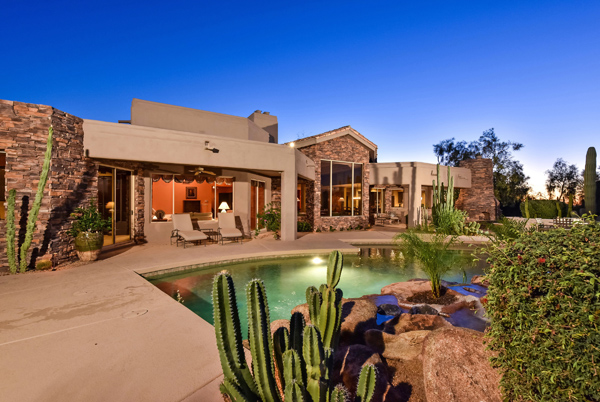 MAJOR RENOVATION COMPLETE: Private Residence with stellar views of Troon Mountain, Pinnacle Peak and the 11th Fairway of Troon Country Club has been completely enhanced inside and out: stacked stone accents, new kitchen with state of the art appliances including hooded gas range, refinished cabinetry, master bathroom with tumbled travertine, plantation shutters, lush landscaping, and remodeled backyard just to start. Floor plan offers traditional living with formal living and dining rooms plus an eat-in kitchen that opens to the family room, main floor master suite, two additional guest bedrooms, and an oversized office with three workstations. The exterior living space will impress with the large covered patio with outdoor fireplace, room for multiple seating and dining areas, built-in BBQ and pool with rock water feature…all framing the priceless views!