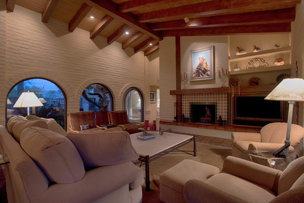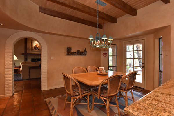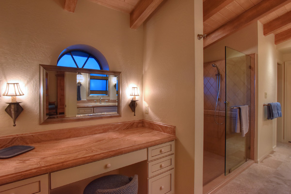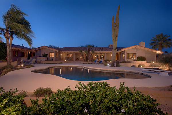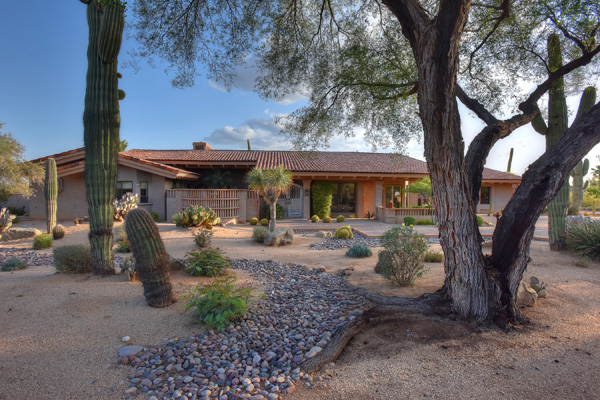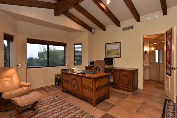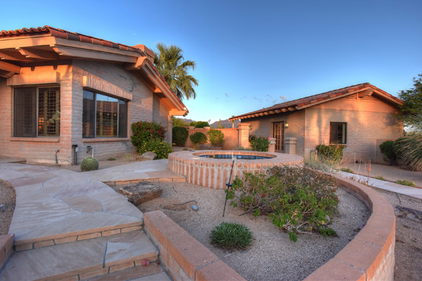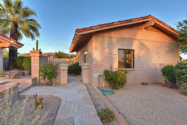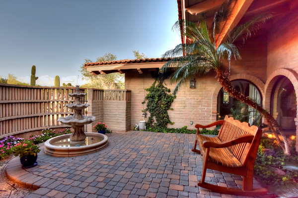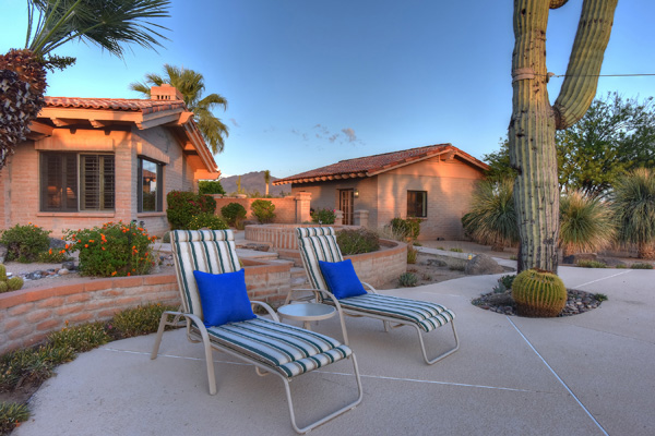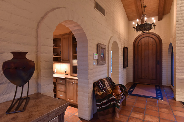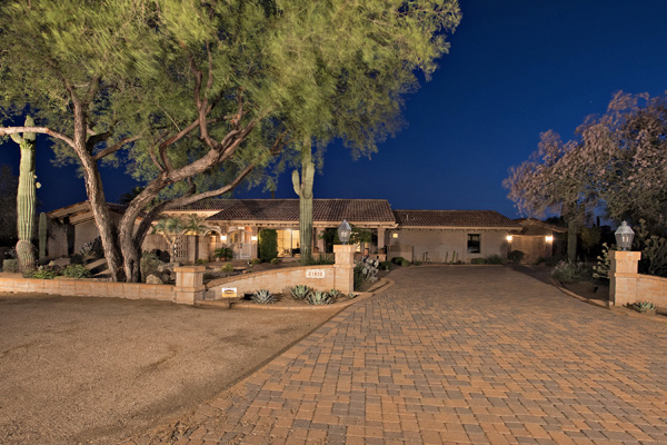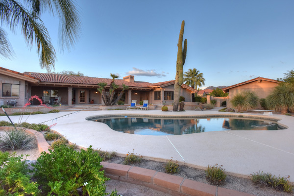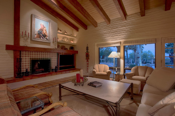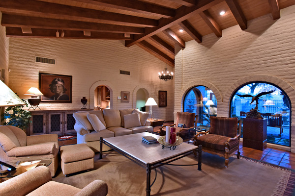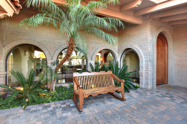 Extensively remodeled in 2006, this custom residence maintains integrity with its original hacienda design boasting Saltillo tile flooring in the main living areas, high wood beamed vaulted ceilings, arched windows and doorways, and hand-laid brick walls to enhance its beautiful setting as well as frame views of both mountains and city lights. Main residence boasts dual master suites both with seating areas and beautifully renovated tiled bathrooms, open great room with wood burning fireplace and formal dining area; bonus family room/flex space; gourmet eat-in kitchen with granite slab counters, custom cabinetry, built in workstation, island, and newer SS appliances including the Dacor gas range with built-in hood; and 3 bedroom with private bath. Two stand alone casitas are accessed across the back patio. The first is a studio design with bathroom, built in cabinetry, and beamed ceiling perfect for a private office or guest suite; the second featuResa private bedroom, bathroom and spacious living room with kitchenette space and its own patio. The property exterior is highlighted with mature saguaros, cacti and palms, an enclosed front paver courtyard with water fountain, flagstone covered back patio with room for seating and dining, extensive decking, south facing orientation to enjoy pool and spa year round, all protected by setbacks and neighboring building restrictions to ensure privacy and those dramatic views!