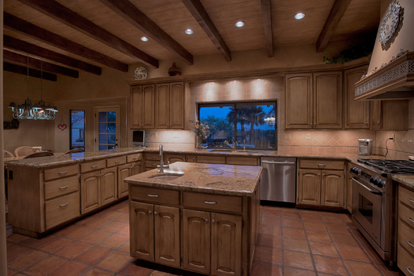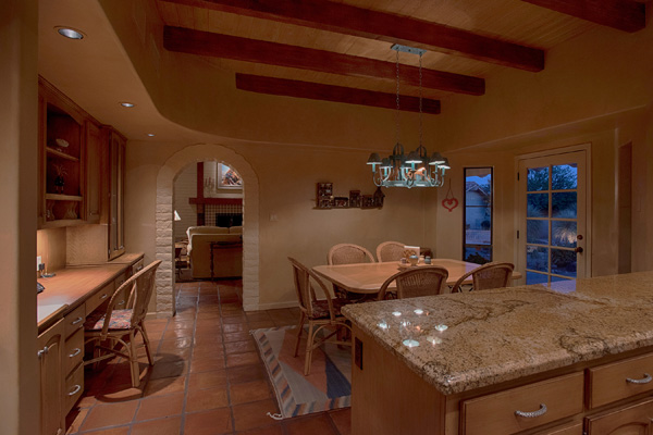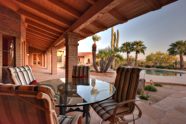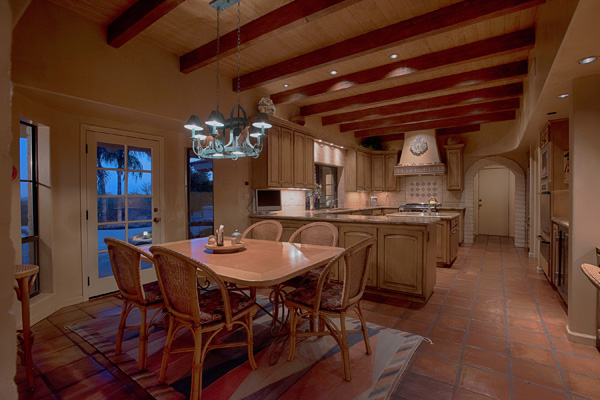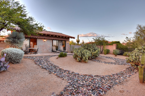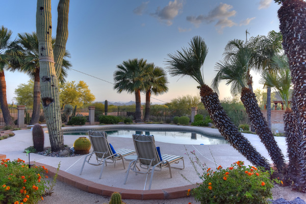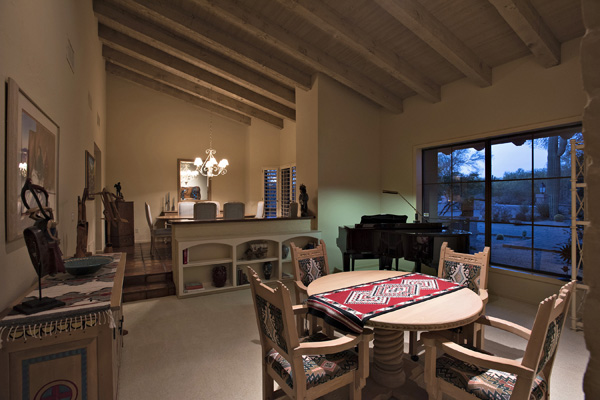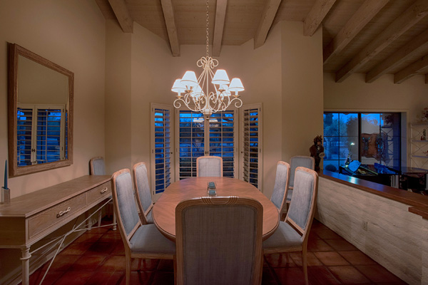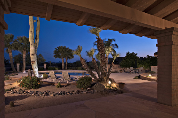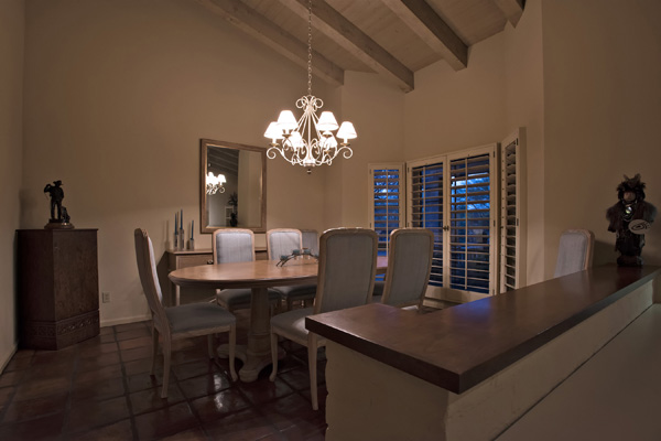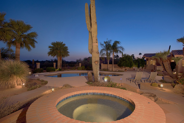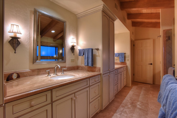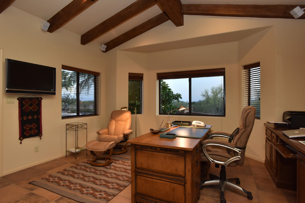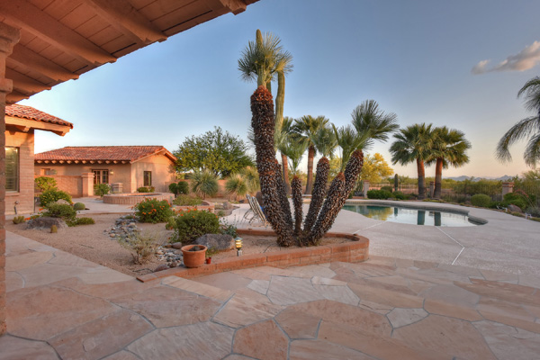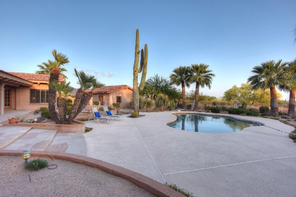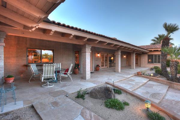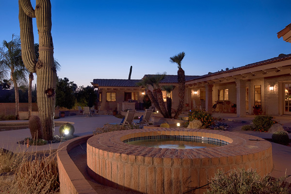 Extensively remodeled in 2006, this custom residence maintains integrity with its original hacienda design boasting Saltillo tile flooring in the main living areas, high wood beamed vaulted ceilings, arched windows and doorways, and hand-laid brick walls to enhance its beautiful setting as well as frame views of both mountains and city lights. Main residence boasts dual master suites both with seating areas and beautifully renovated tiled bathrooms, open great room with wood burning fireplace and formal dining area; bonus family room/flex space; gourmet eat-in kitchen with granite slab counters, custom cabinetry, built in workstation, island, and newer SS appliances including the Dacor gas range with built-in hood; and 3 bedroom with private bath. Two stand alone casitas are accessed across the back patio. The first is a studio design with bathroom, built in cabinetry, and beamed ceiling perfect for a private office or guest suite; the second featuResa private bedroom, bathroom and spacious living room with kitchenette space and its own patio. The property exterior is highlighted with mature saguaros, cacti and palms, an enclosed front paver courtyard with water fountain, flagstone covered back patio with room for seating and dining, extensive decking, south facing orientation to enjoy pool and spa year round, all protected by setbacks and neighboring building restrictions to ensure privacy and those dramatic views!