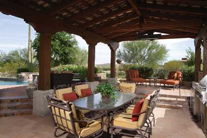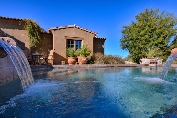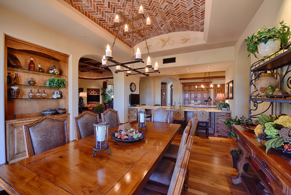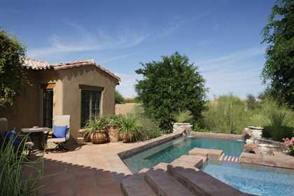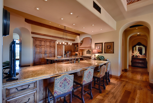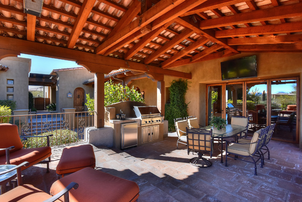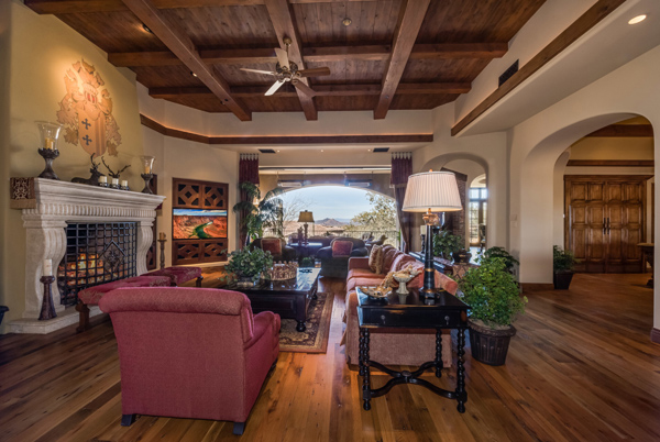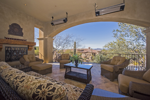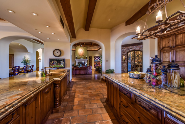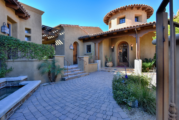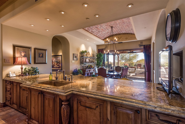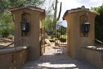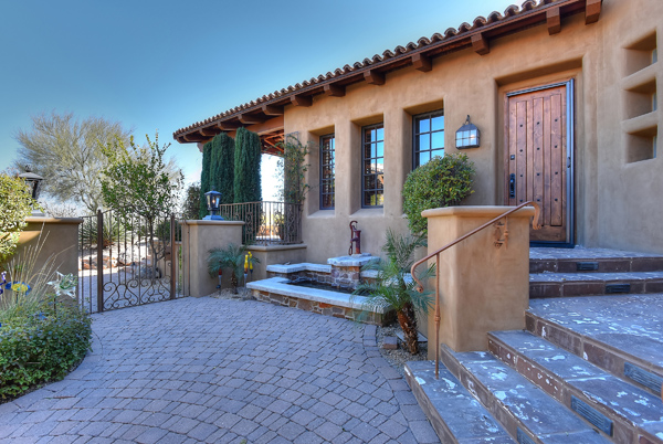 On the 12th green of Troon North’s Monument course, this is a one of a kind custom estate featuring historical architectural details, old world charm and breathtaking views in the prestigious Pinnacle Canyon at Troon North. Enter the Great Room with solid beam ceiling, travertine fireplace, full bar, and views into the kitchen, wine cellar, and breakfast bar. The 16 feet of pocket doors blends the indoors and out seamlessly. In the kitchen you will find reclaimed paver floors from France, travertine backsplash with reclaimed cast iron insert, Venetian plaster hood, Wolf, Viking, and Subzero appliances and expansive countertops. The feature rich kitchen also opens to the relaxing covered patio and outdoor kitchen. All bedrooms are ensuite. Finishes in the detached 500 sq. ft. casita match the main house. The home theater has solid beam ceilings, acoustic dampening panels and furniture quality built-ins to frame the 10-foot screen. The attention to detail can not be ignored with featuReslike hand laid brick ceilings, Chestnut Oak reclaimed solid plank floors, custom iron works and lighting fixtuResmade specifically for this home, heated salt water pool and spa, paneled library, an elevator connecting the 3 car garage, Lutron lighting, and so many more featuReswith unsurpassed quality! Watch the video. All furniture is available by separate bill of sale.