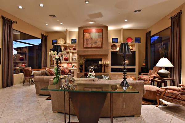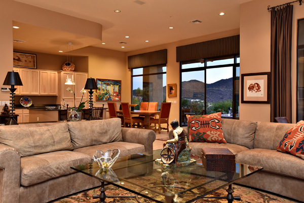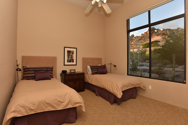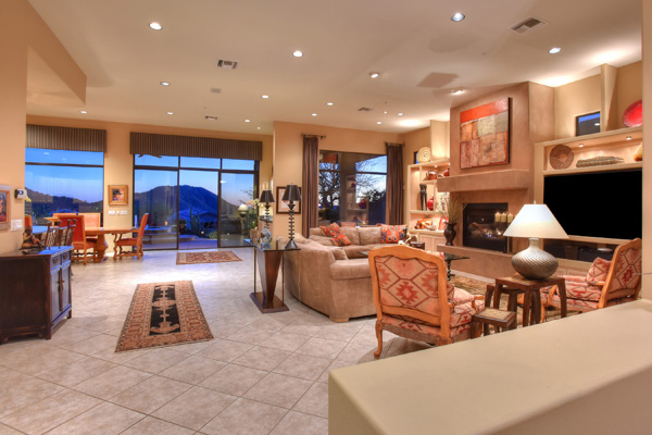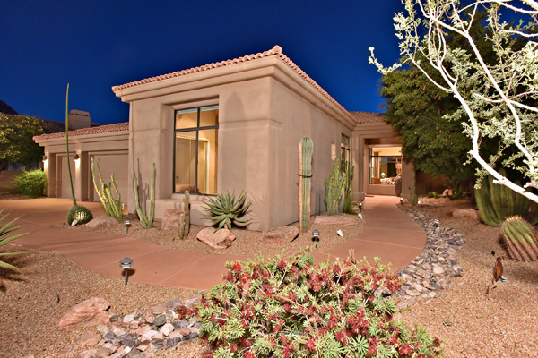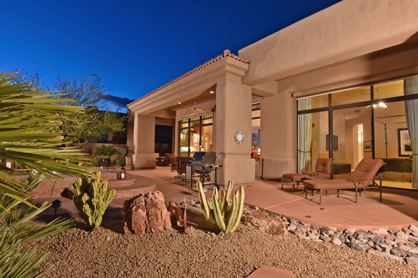 Located in the desirable gated community of Quail Ridge at Troon Village this home feature an open floor plan with city lights and McDowell Mountain views. This open floor plan allows for modern living with the kitchen, family, and dining open for entertaining. In the spacious master bed and bath you will be able to relax in the Jacuzzi tub or take advantage of your double sink master vanity with a sitting area. 3 bedrooms, 3 full baths and an study just off the front entry. Outside featuResa large covered patio for entertaining and a centerpiece water feature. Art niches, built in entertainment area, a cozy fireplace, wet bar and diagonal tile floors are just some of the other featuResyou will find. As soon as you take a step through the unique front door you will appreciate this wonderful home.