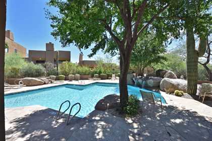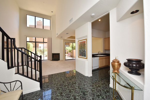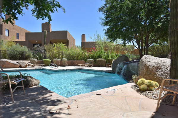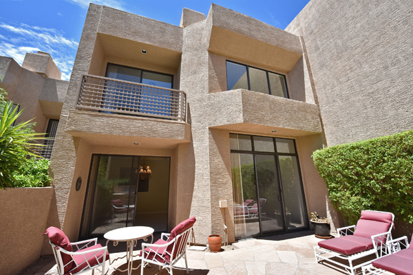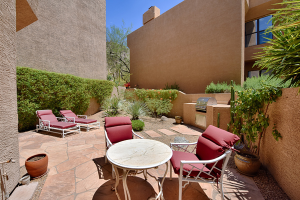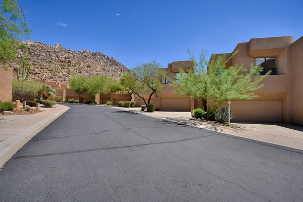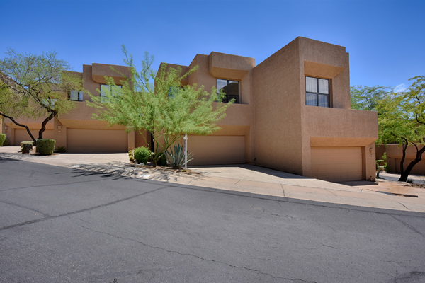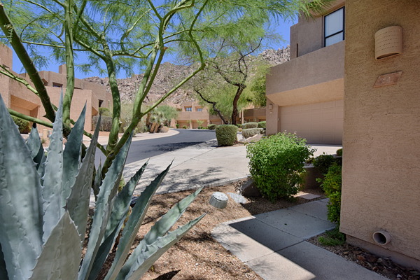 Located behind the manned gate at Troon, this townhome residence is the perfect lock and leave retreat. Upon entry, soaring ceilings with a wall of windows provide natural light for the open living spaces which include a living room with wood burning fireplace, formal dining/office/flex space with coffered ceiling, and eat-in kitchen. The main level opens onto an extended flagstone patio appointed with a built-in grill, perfect to create an outdoor great room with both dining and seating space. Upstairs, the master suite featuResa private view deck, large walk-in closet and bath area complete with soaking tub, separate shower, and dual sinks with vanity area. The secondary bedrooms have an adjacent full bathroom with dual sinks. Additional amenities include full size laundry room, 2 car garage, access to the heated community pool and spa, 24 hour manned guard gate, and excellent location close to hiking, golfing, shopping and dining. Located behind the manned gate at Troon, this townhome residence is the perfect lock and leave retreat. Upon entry, soaring ceilings with a wall of windows provide natural light for the open living spaces which include a living room with wood burning fireplace, formal dining/office/flex space with coffered ceiling, and eat-in kitchen. The main level opens onto an extended flagstone patio appointed with a built-in grill, perfect to create an outdoor great room with both dining and seating space. Upstairs, the master suite featuResa private view deck, large walk-in closet and bath area complete with soaking tub, separate shower, and dual sinks with vanity area. The secondary bedrooms have an adjacent full bathroom with dual sinks. Additional amenities include full size laundry room, 2 car garage, access to the heated community pool and spa, 24 hour manned guard gate, and excellent location close to hiking, golfing, shopping and dining. Located behind the manned gate at Troon, this townhome residence is the perfect lock and leave retreat. Upon entry, soaring ceilings with a wall of windows provide natural light for the open living spaces which include a living room with wood burning fireplace, formal dining/office/flex space with coffered ceiling, and eat-in kitchen. The main level opens onto an extended flagstone patio appointed with a built-in grill, perfect to create an outdoor great room with both dining and seating space. Upstairs, the master suite featuResa private view deck, large walk-in closet and bath area complete with soaking tub, separate shower, and dual sinks with vanity area. The secondary bedrooms have an adjacent full bathroom with dual sinks. Additional amenities include full size laundry room, 2 car garage, access to the heated community pool and spa, 24 hour manned guard gate, and excellent location close to hiking, golfing, shopping and dining.