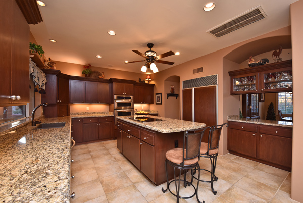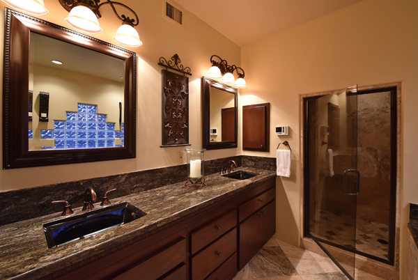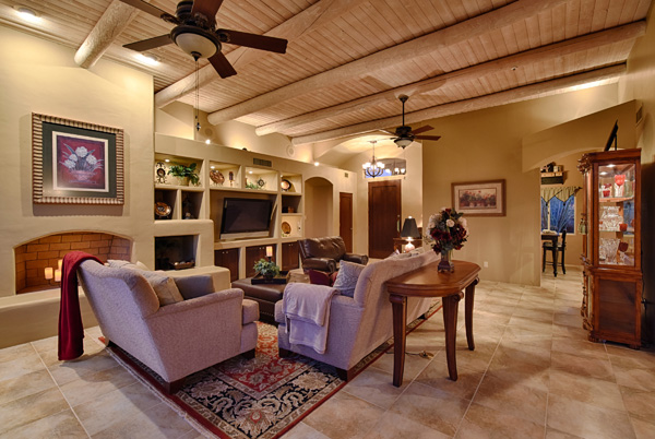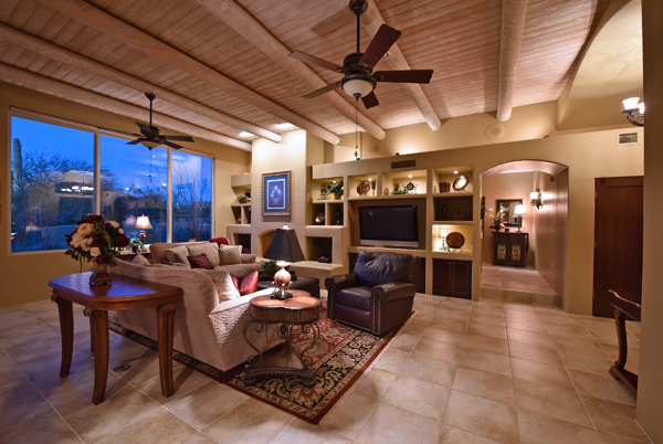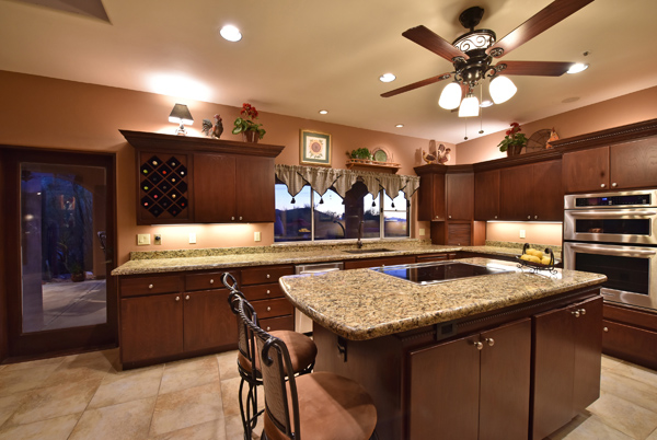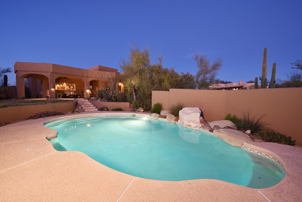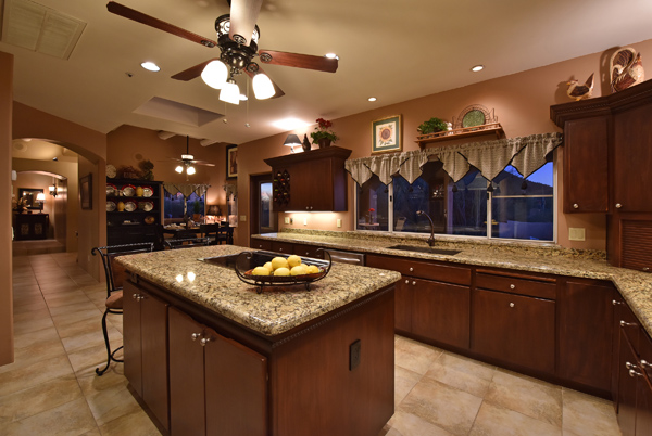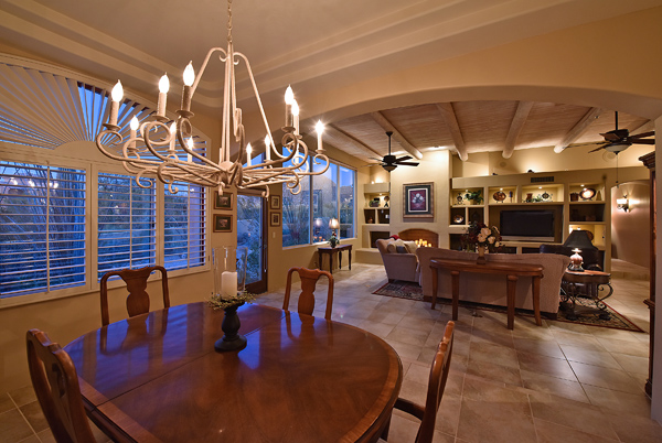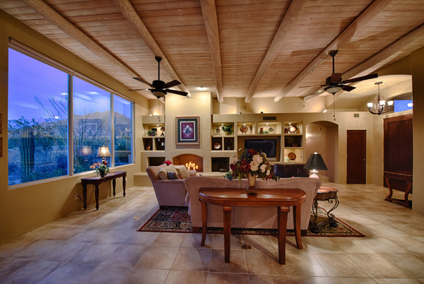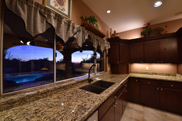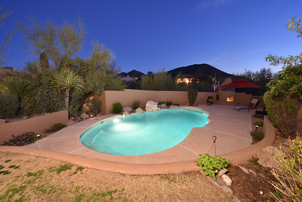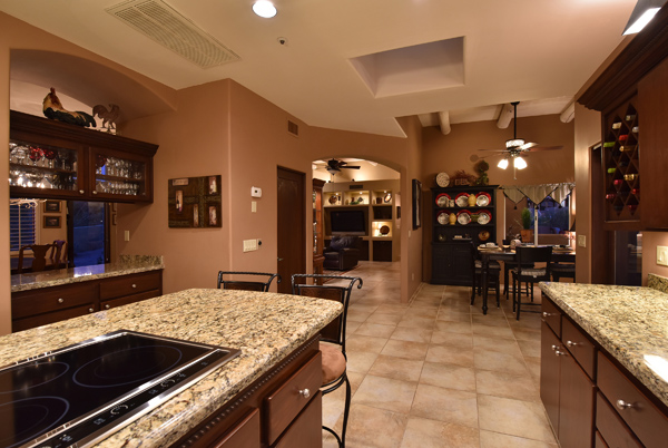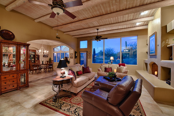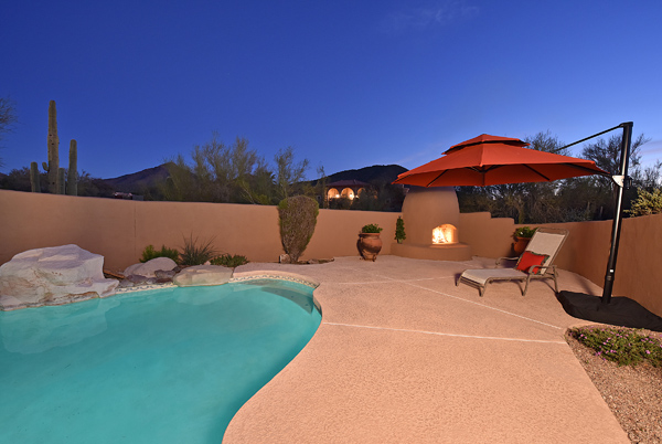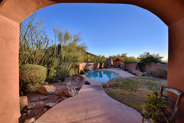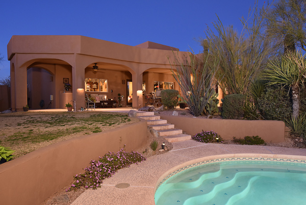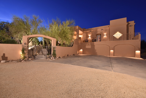 Oriented for maximum privacy and views, this custom built residence exudes warmth throughout its classically designed living spaces which flow seamlessly for an inviting retreat or entertaining. Living spaces including eat-in kitchen, family room, and laundry room, as well as the master suite are on main level. A raised dining room is connected to the kitchen via a pass through buffet/bar area and open to the family room. The master featuResa library gallery, seating area, fireplace, updated bathroom, and its own private patio with Troon Mtn views. The lower level featuRestwo ensuite bedrooms, each with their own bathrooms. Interior is appointed with two wood burning fireplaces, Vega beams, tongue and groove ceilings, granite slab counters, plantation shutters, surround sound, updated S/S appliances, and tile flooring. Outside, an extended veranda wraps the main level offering city light, mtn and sunset views year round while the south facing yard featuResa grass lawn, pool, large covered patio for multiple seating and dining areas, and an exterior fireplace. This makes for the perfect home to be a winter escape, set up to welcome guests and/or as a year round residence for a family.