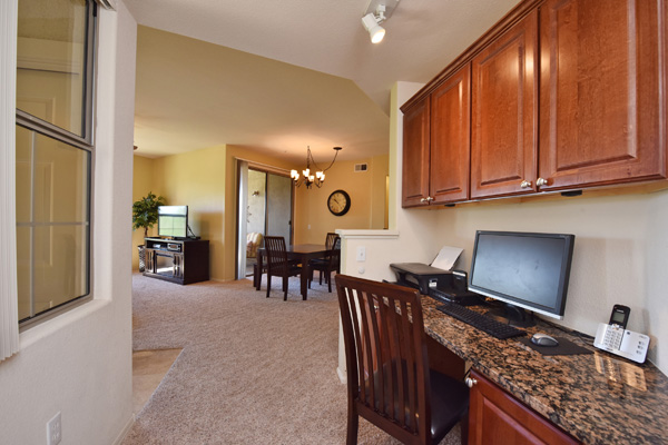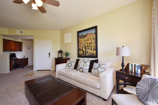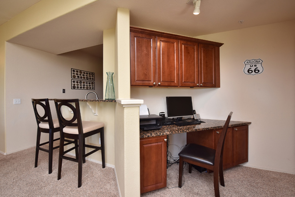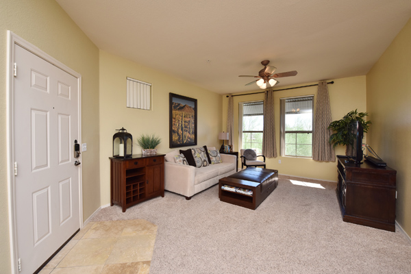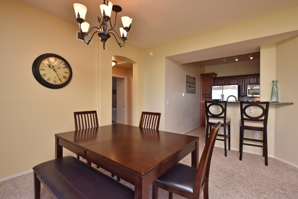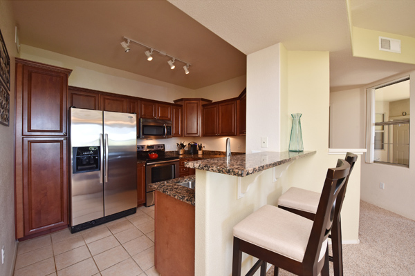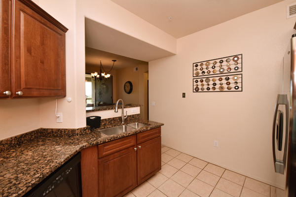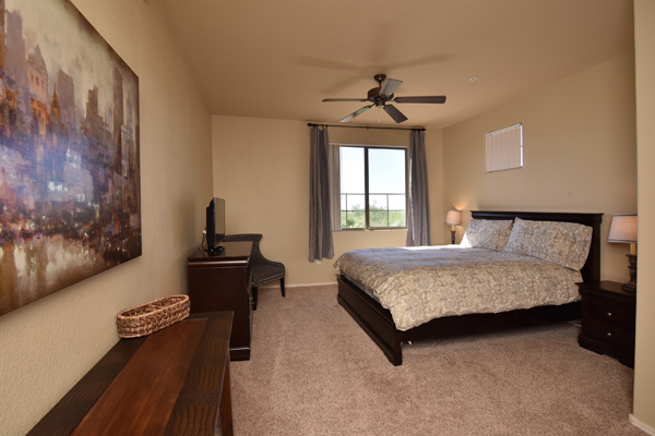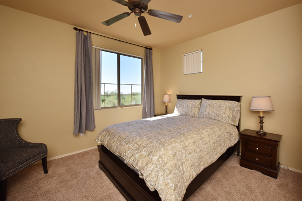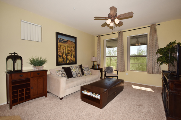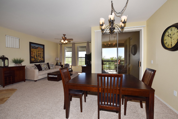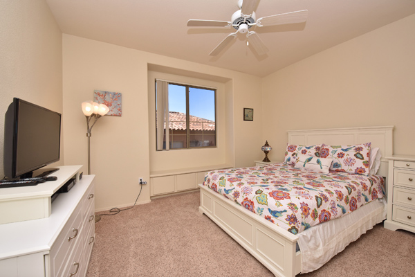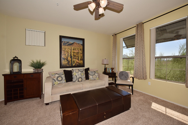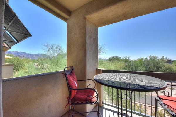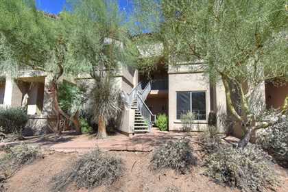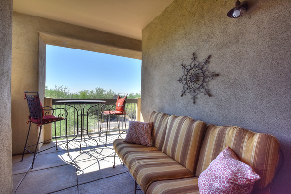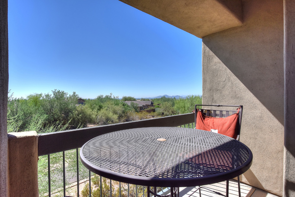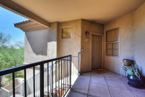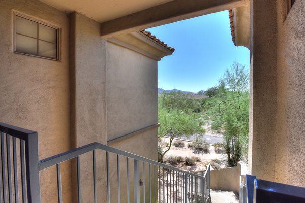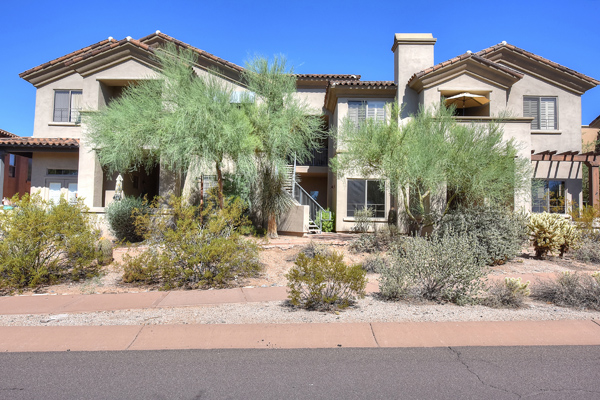 Immaculately maintained lock and leave condo in the Village at Market Street in DC Ranch. Great location with mountain, city light and desert views. The private entry, 2nd floor unit featuResa great room floor plan with 2 bedrooms, 2 baths and a built in desk/office area. The southern facing covered patio opens off the dining room for seamless entertaining. The separate laundry room with full sized washer and dryer includes plenty of storage room. Uncovered parking spot 720 and covered parking spot 577 are included as well as ample guest parking surrounding the unit. Community has heated pool, fitness center and meeting space – walking distance to grocery store, Starbucks, restaurants and shopping. 13 miles of hiking and biking trails and a full time concierge. Other featuResinclude: walk-in master closet, granite slab countertops, walk-in pantry, nine foot ceilings, tile and carpet surfaces, and rich cherry cabinetry in the kitchen.