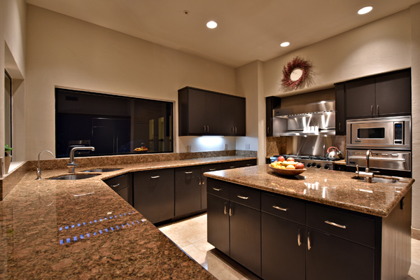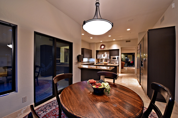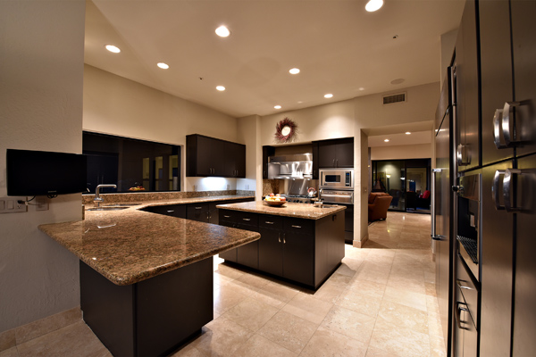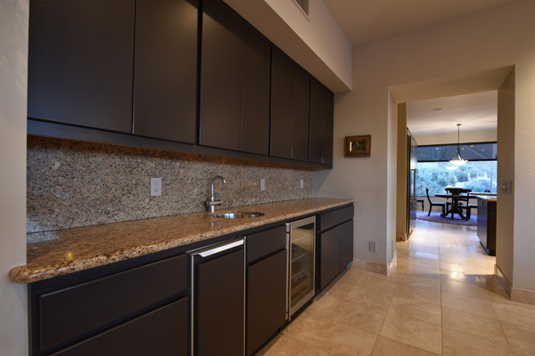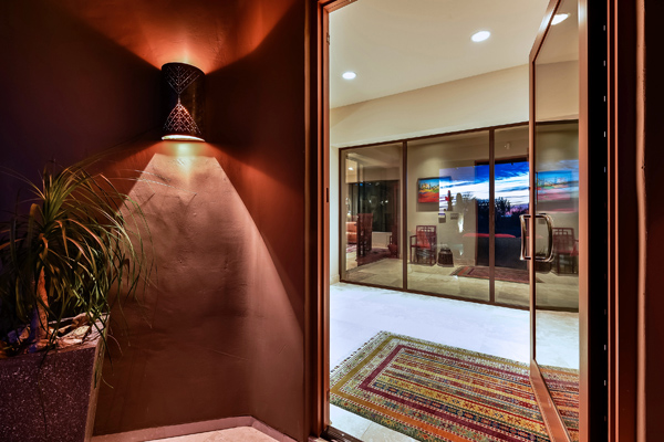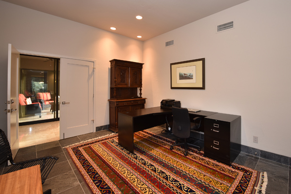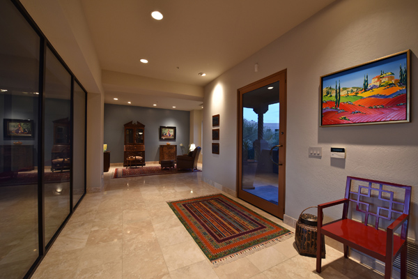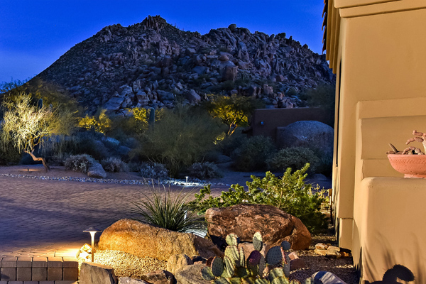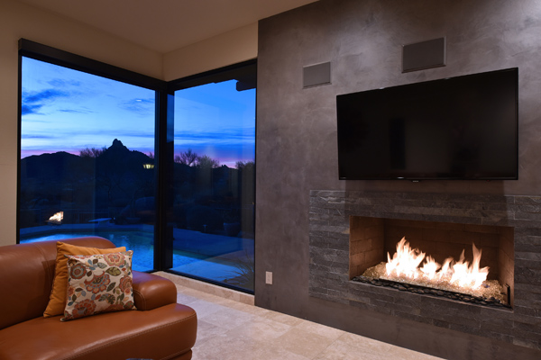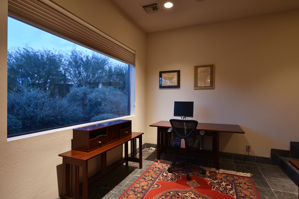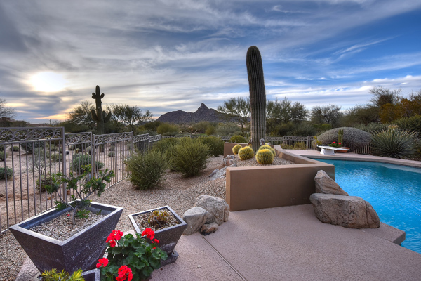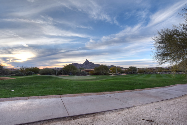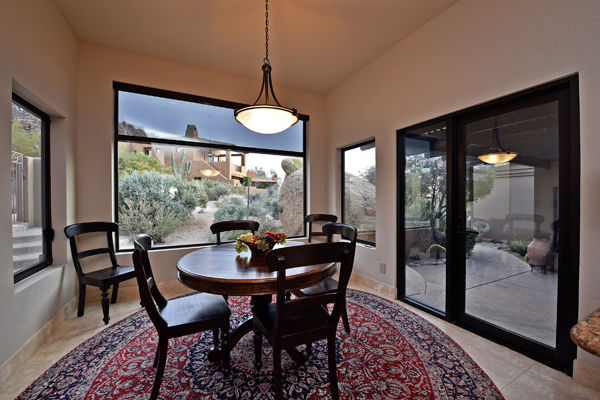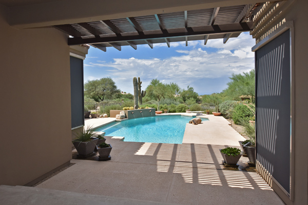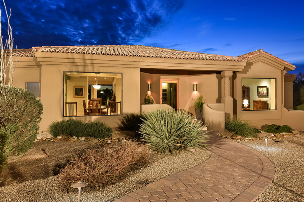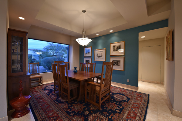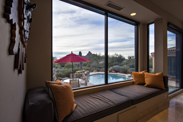 A standout amongst golf course properties, this clean line residence fully embraces its grand setting on the 5th green of Troon while specifically oriented to maintain privacy without compromising views. Custom built, renovated, and maintained, the impeccable interior featuRestravertine and slate flooring and baths, custom cabinetry, lighting, and sound systems, granite and stone counters, upgraded energy efficient systems and windows, professional Viking cooking system plus Miele espresso system plus SubZero fridge, bar with wine storage cooler and icemaker, multiple outdoor living spaces with up close boulders, views, and much more. Split master with European extended closet and bath with dual showers and rainshower head; adjacent office with two separate work areas equivalent to 2 offices; separate guest wing with ensuite bedrooms plus bonus/ secondary family room; formal living and dining; European style kitchen with breakfast room; oversized family room with dramatic slate fireplace offset by large windows capturing mountain and golf views; exterior living space designed to enjoy 360 views of Troon Mountain, Pinnacle Peak, and beyond with covered patio for seating and dining stepping down to the extended patio surrounding the diving pool with water feature. From the moment you walk through the front entry that impressively frames just the beginning of the views, you will know this is the home.