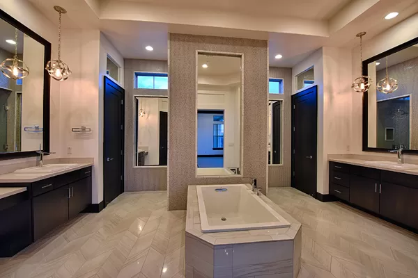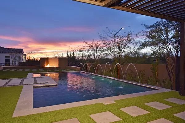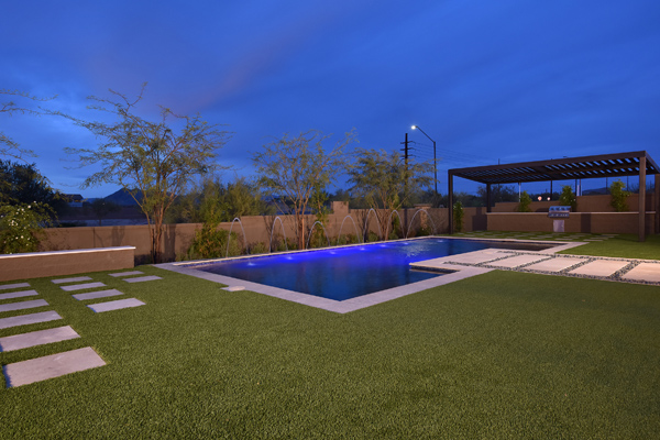 Dramatic interior featuRescombined with certified energy efficiency make this new build home a must own. The gourmet kitchen featuResstainless steel appliances, centerpiece hood vent surrounded by beautiful tile backsplash, custom cabinets, large granite island with bar seating, and butlers pantry. The open great room, with its impressive tile fireplace and decorative two-toned boxed ceilings, extends into the resort backyard through the sliding pocket doors. Outside you will find the peaceful pool surrounded by tumbled stone pathways, lush green grass, outdoors fire pit, and bbq area under a pergola. The secluded master suite has the ultimate luxurious bath with soaking tub, walk through shower, dual vanities and walk in closet. Other featuResinclude: study, game, and dining rooms; walk in closets throughout; upgraded finishes and lighting; tile and wood floors; 4-car garage with pavered drive; fully landscaped; entry courtyard. Located in gated Bellissima with community featuResincluding playgrounds, putting green, trails, BBQ grills and ramadas.