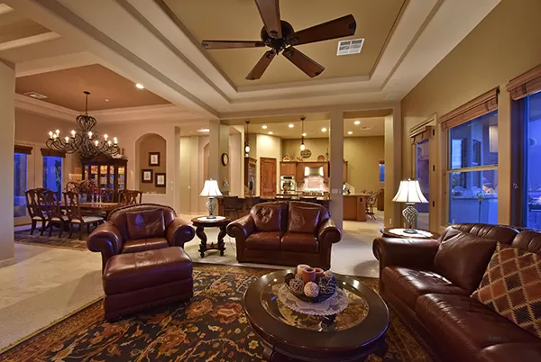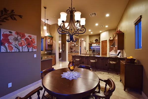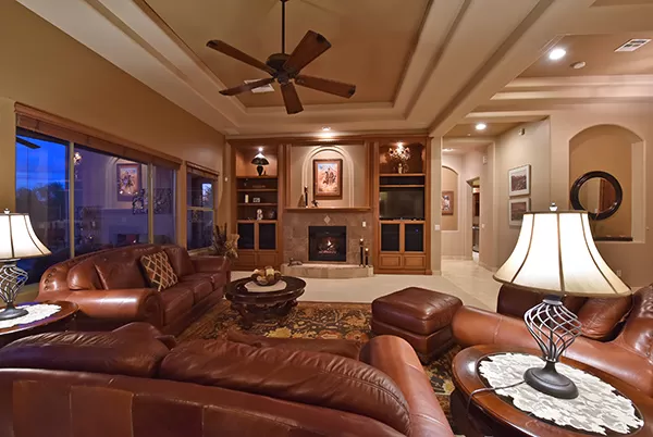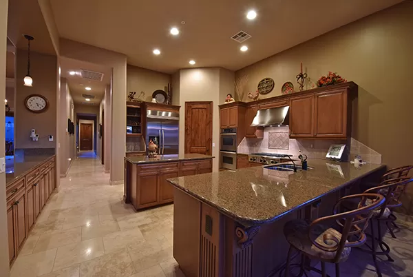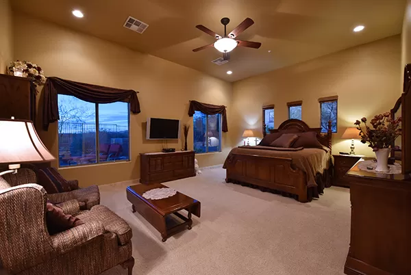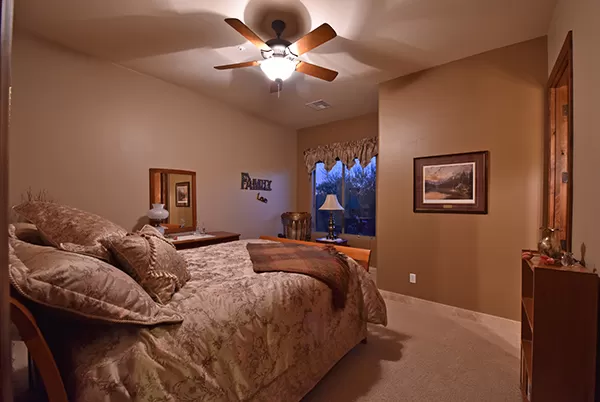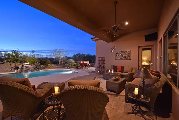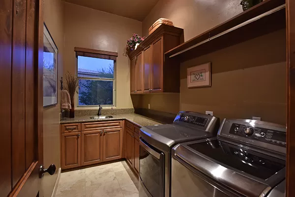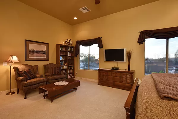Meticulous and spacious describe this soft territorial Boulder Heights home with beautiful mountain, sunset, and sunrise views. The kitchen is a chef’s dream with multiple counter prep surfaces, ample storage, stainless steel appliances, breakfast bar, six-burner gas stove, double ovens, granite counters, upgraded cabinets and molding, and a separate breakfast room. The oversized master suite with sitting area and two ensuite bedrooms are joined by a bonus room (currently used as an exercise room) and a casita with bar and it’s own entrance perfect for visiting guests. The entertainer’s backyard has a large covered backyard with built in BBQ and refrigerator, extended paver surfaces for additional seating/dining areas, an elevated fire pit, pool with waterfall, and a view fence to enhance the exterior views. Minutes from several golf courses, Bartlett Lake, and hiking and biking paths, the community provides you with another level of peacefulness but close enough to enjoy area dining and shopping. Other featuResincluded: tall ceilings, family room with fireplace flanked by built-ins for media and art, large laundry with storage, counters, hanging rack, and sink, entry courtyard with seating, travertine flooring and baseboards, Alder wood doors and trim, upgraded bathrooms with neutral finishes.