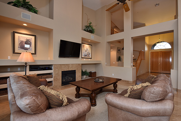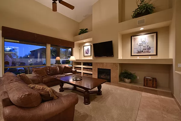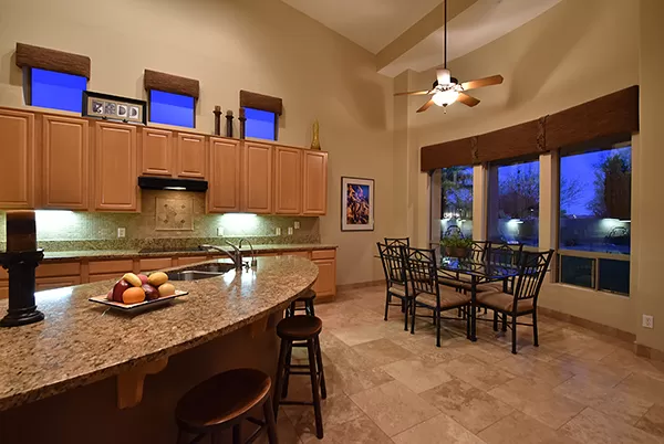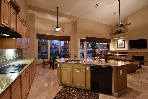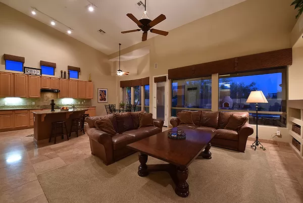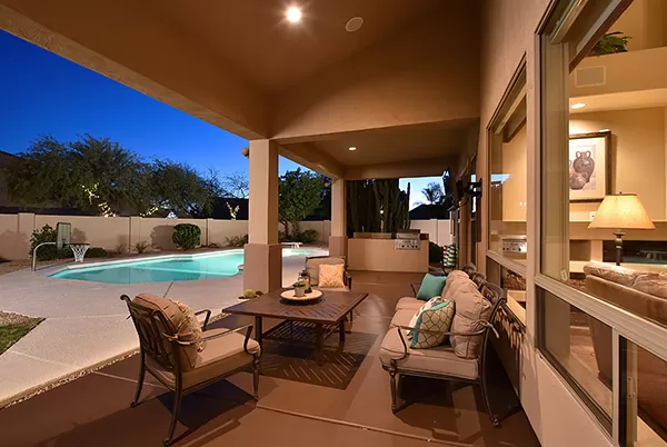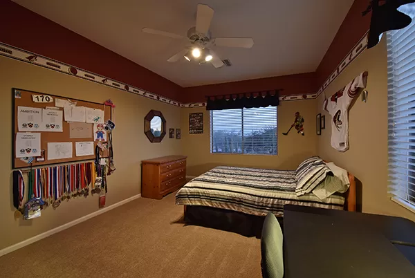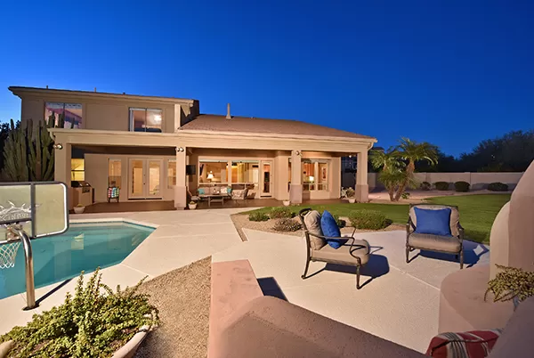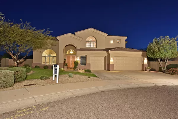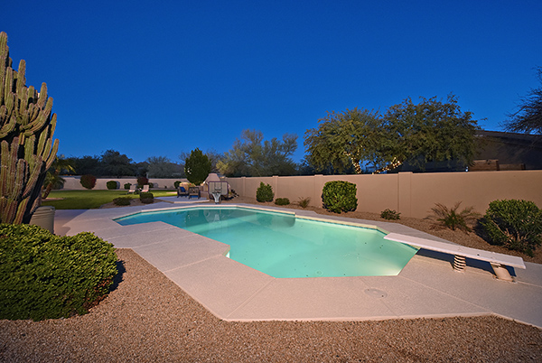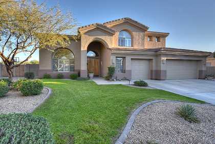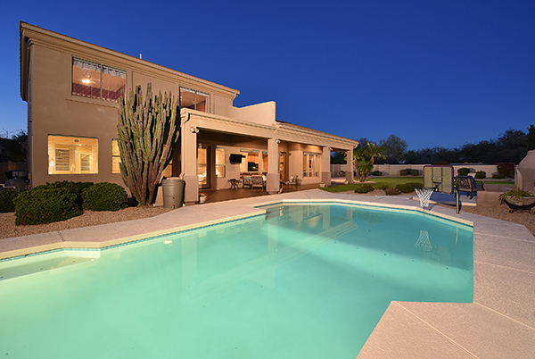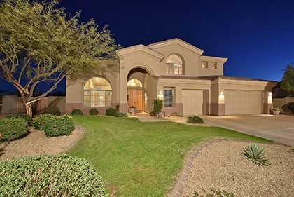 First time on the market! One of the largest corner lots in the desirable master planned community of Grayhawk within walking distance to the community park. The Talavera floor plan by Coventry Homes features 3,708 sq ft with 5 bedrooms, 3.5 bath, loft, and activity room. Downstairs you will find the master bedroom with a large ensuite bathroom and one additional bedroom (could be used as a den) along with open concept family room/kitchen/breakfast room area complimented by soaring ceilings. Also downstairs is a formal living/dining space along with an entry foyer. Upstairs opens to the loft along with a multipurpose activity room, three additional bedrooms and 2 full baths. The spacious resort style backyard has a large covered patio, heated diving pool, expansive grassy area, built in BBQ, lounge area with kiva fireplace, and a basketball slab court. The entertainer’s kitchen features granite counter tops with island, 42″ cabinets, built in microwave and oven, and a pantry. The fireplace in the family room is surrounded by built in shelves and art niches. Travertine tile, carpet and plantation shutters throughout. Grayhawk features 30 miles of multi-use trails, one long greenbelt with smaller pocket parks, eight unique playgrounds, basketball and volleyball courts, permed and picnic area, top-rated schools and lots of community planned events.