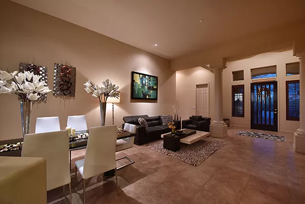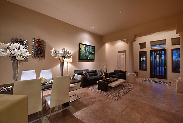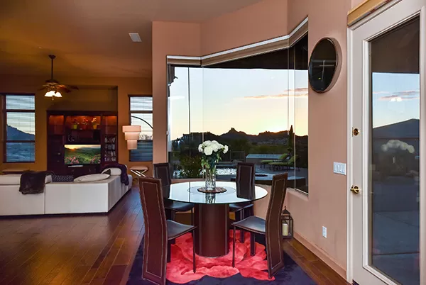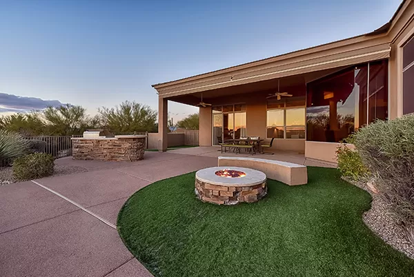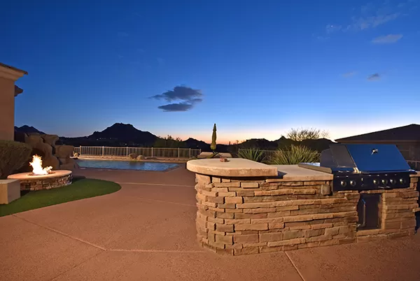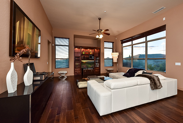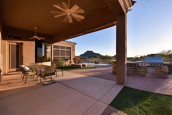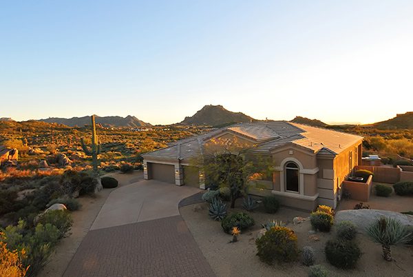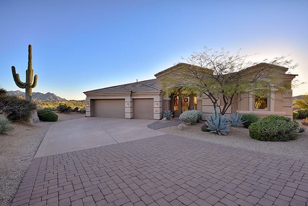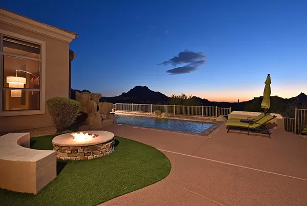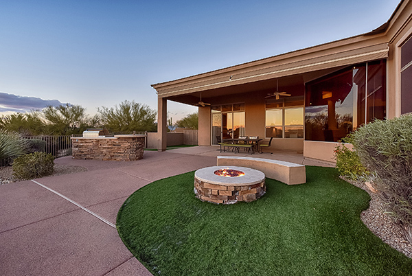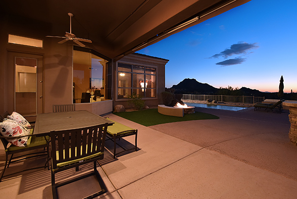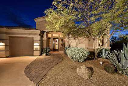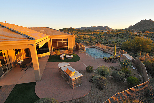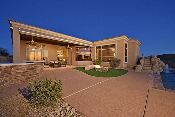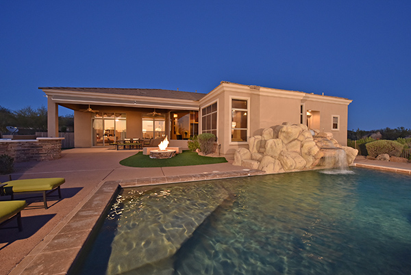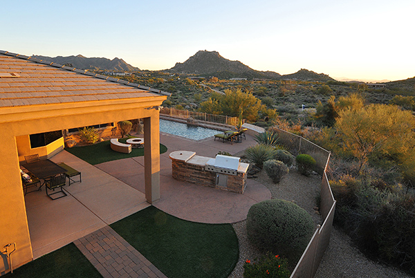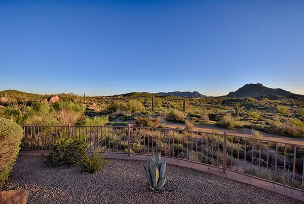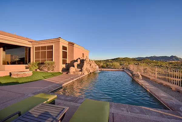 This well maintained home in the upscale community of Desert Vista has a sun filled, premium lot that has all the bells and whistles. Relax in the backyard with the rectangular pool and rock waterfall slide, easy maintenance desert landscaping and artificial turf, stacked stone built in BBQ, lounge areas, fire pit, covered patios, and dynamite panoramic views; direct views include Pinnacle Peak, McDowell Mountain Range and Preserve, and infamous Arizona sunsets. The large picture windows inside the home fill the open, split floor plan with lots of light. The dark wood floors are complimented by large neutral ceramic tile throughout and rich wood cabinetry topped with granite slabs in the kitchen and baths. The large kitchen has all the amenities including two islands, one with counter seating, stainless steel appliances packages, 6 burner gas stove, and pantry. The curved extended driveway leads you to the 3 car garage and is accented buy majestic saguaros and boulders. At over 3,000 sf, this 4 bed plus office, 3.5 bath home is model perfect and ready to move into.