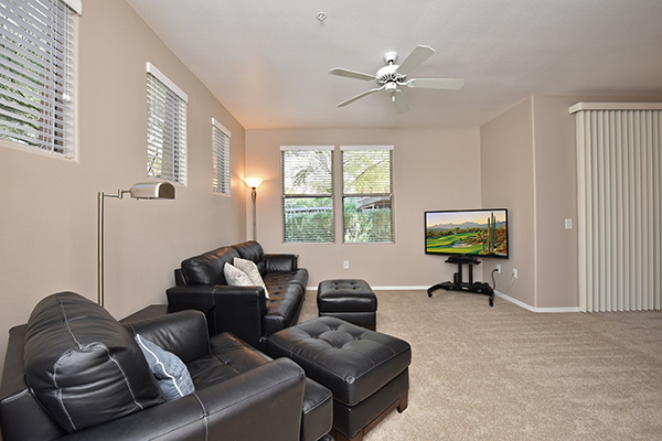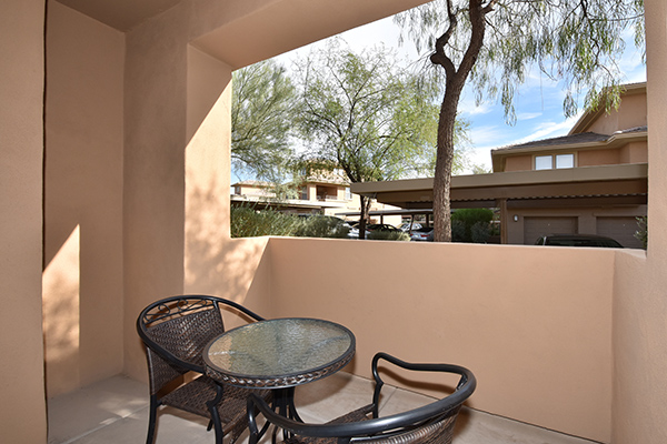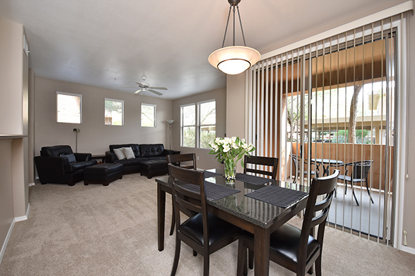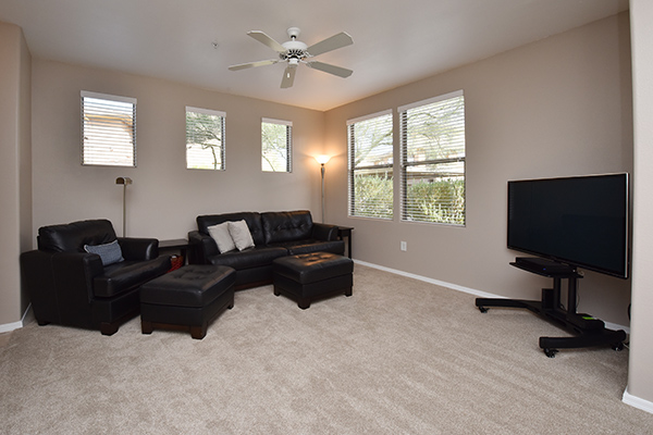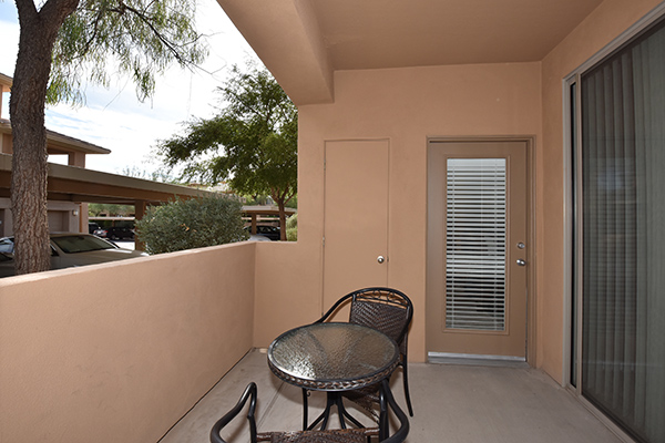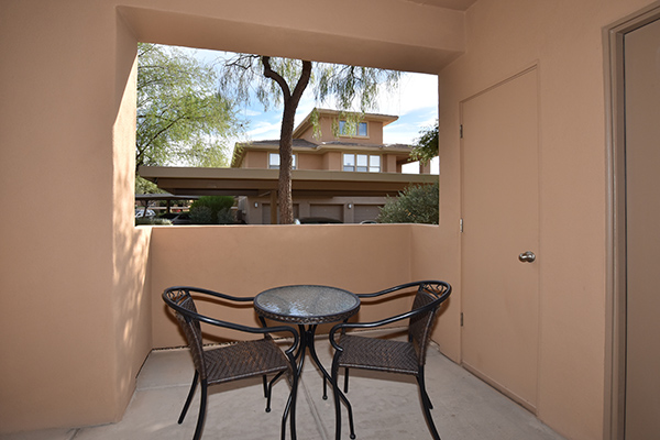 Meticulously maintained condo in gated The Edge at Grayhawk is the perfect lock and leave or full time residence. This downstairs corner unit featuReslots of windows for an open and bright feel. The kitchen is fitted with newer stainless steel appliances, pantry, ample cabinetry, and counter top breakfast bar. A cozy covered patio off the dining room allows for indoor and outdoor dining during the renowned AZ evenings. The paint, carpet, and blinds are all new in 2017 and the water heater and A/C were replaced in 2013. One covered reserved carport is included conveniently located near the unit. The Edge featuRestwo community pools and spas, a clubhouse, movie theatre, BBQs, and a well appointed workout facility. Within walking distance to 2 world class golf courses at Grayhawk golf club, multiple hiking trails, restaurants, boutiques, coffee shops and more!