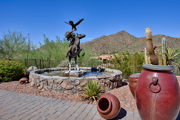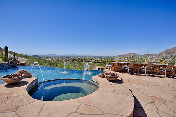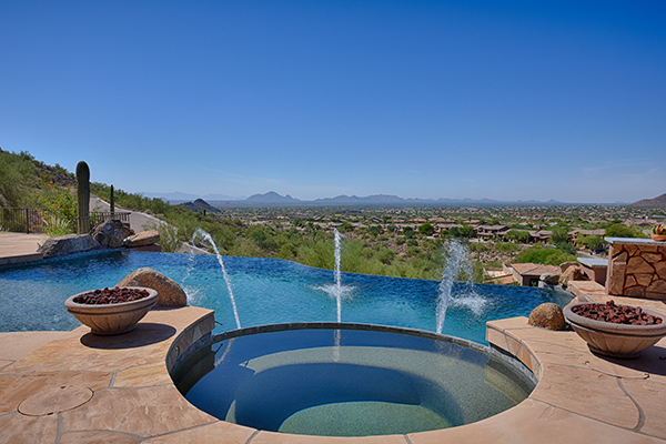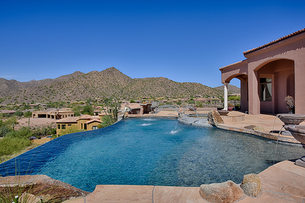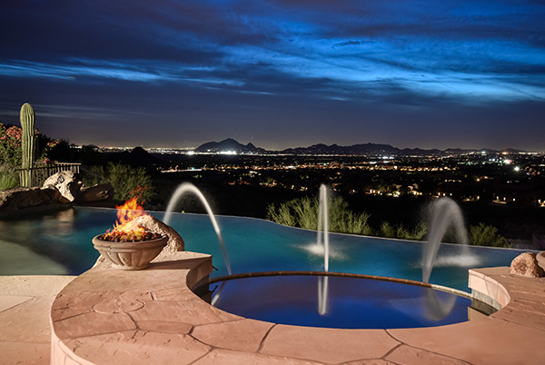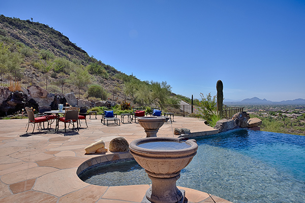 The most captivating views available in Scottsdale! Situated high above the valley floor backing to the mountain, this custom estate home is the result of the utmost in thoughtful design and superior construction. One of only 13 home sites in gated El Gran Final, you enter the property on the private drive that leads you to the five car garage, RV garage and air conditioned workshop. At 7530 square feet, this estate is ideal for entertaining and featuResa master suite plus four additional bedrooms all ensuite and all with stellar views, office, authentic movie theatre room, fitness room, basement, and a large kitchen with wet bar. Great room, and heart of the home, featuReswalls of glass to take in the spellbinding views, that seem to go on forever highlighted by Camelback Mountain. The best outdoor living Arizona has to offer with a negative edge pool that spills over to the city lights below, spa, waterfall, putting green and a two level BBQ with massive granite slabs. Cozy up to the fireplace in the master suite after relaxing in the spa style master bathroom. Details throughout are numerous; wood casement windows, solid wood doors and baseboards, built in cabinetry, high-end flooring including wood, polished stone, and upgraded carpet, soaring coved ceilings, designer granite surfaces, top of the line stainless steel appliances, expansive natural stone and paver exterior surfaces, custom glass and metal entry door, custom light fixtures, and so much more. This feature rich property is a must see.