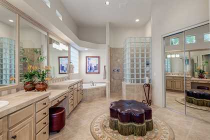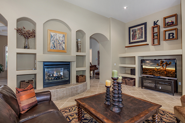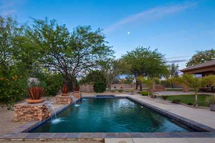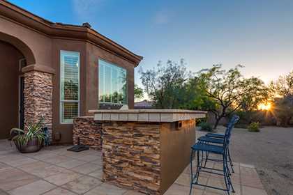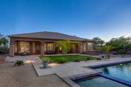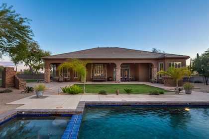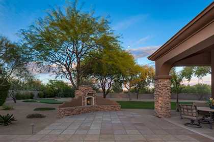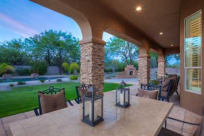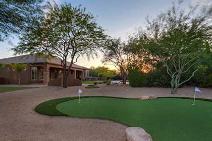 Meticulously maintained home in the private and gated community of Ironwood Preserve, featuResa resort style backyard on an oversized lot, perfect for entertaining. With mature landscaping and trees, enjoy the Arizona sun from the refreshing pool and spa with water feature, putting green, grass areas, large covered patio for dining and lounging, built in BBQ with seating, and the cozy fireplace for those endless nights. The interior impresses with a grand rotunda entrance, plantation shutters throughout, porcelain and wood flooring, interior and exterior stacked stone accents, and home office with built ins. The kitchen has a lot of counter and cabinet space with granite counters, gas cooktop, center island, and breakfast room and counter seating. The two way fireplace illuminates the formal dining room and the great room with built in art niches and shelving. With a grand master suite, three additional bedrooms, and three and half baths encompassing 3,596 sq ft, this home is the perfect fit.