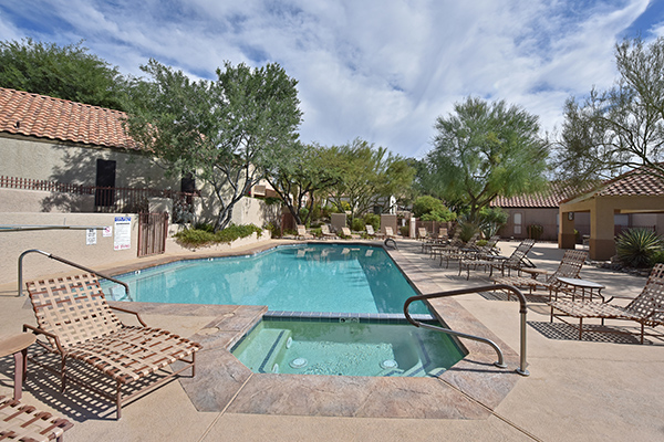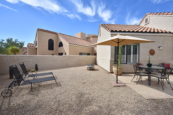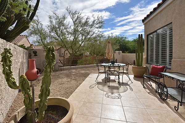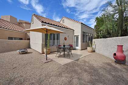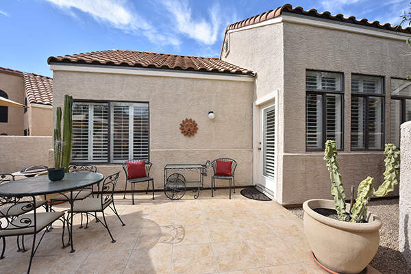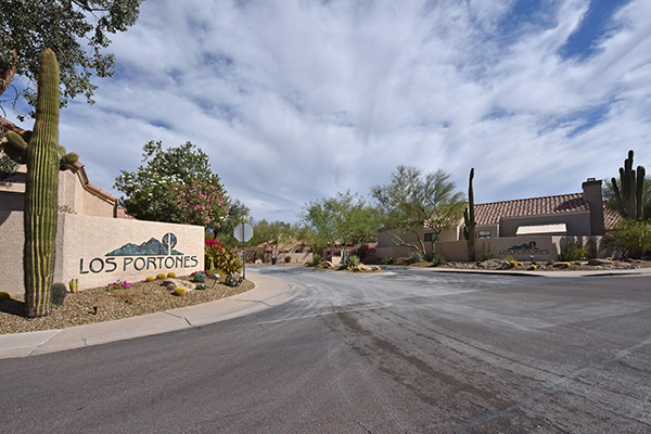 Located in the desirable resort style community of Los Portones in North Scottsdale, this lock in leave, two bedroom plus den home is ready for you to make your own! This quiet, gated subdivision featuResa community pool, paved paths for walking and jogging, and within close proximity to top notch shopping and dining. Located on an oversized interior lot, the backyard allows for dining and lounging space to enjoy the picturesque Arizona skies. The master bedroom is large and inviting with a soaking tub, dual sinks, separate shower, and walk in closet. Other featuResinclude: plantation shutters throughout, two car garage, ample storage, den could be used as a third bedroom, and vaulted ceilings. Don’t miss the chance to live in this serene neighborhood!