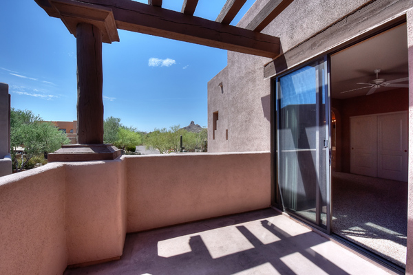 This town home showcases fairway views of Troon Norths Monument course and is ready for you to ake your own. Entire residence is oriented to highlight these views with floor to ceiling windows while still maintaining privacy within the home. Great room floor plan provides flowing living spaces that include the open kitchen with SS appliances, breakfast bar, dining area, and living/family area with fireplace. Main floor also featuResa full size laundry room, guest powder room, and doors opening onto a back patio spanning the entire back of the residence. Appointing the upper level are two bedrooms, which includes the master, two separate view decks accessed from the individual bedrooms, and a loft area. Master featuResa huge walk-in closet, full bathroom with soaking tub and walk-in shower, and golf views. Community featuResincludes access to heated pool and spa, gated entry, walking distance to Troon North Golf Club, and close to hiking, shopping and dining.