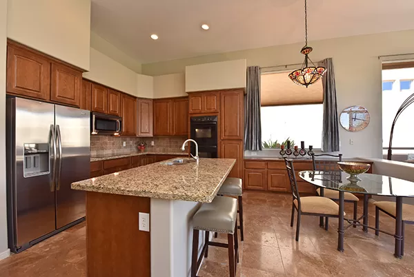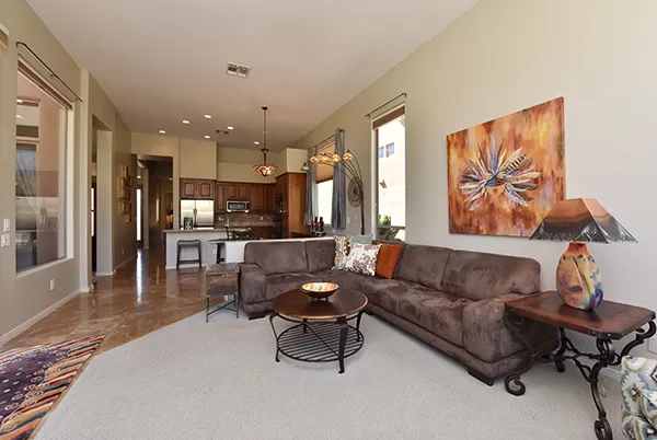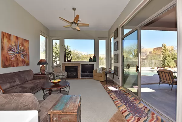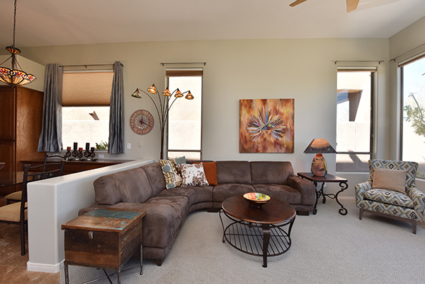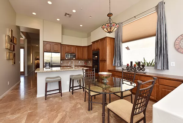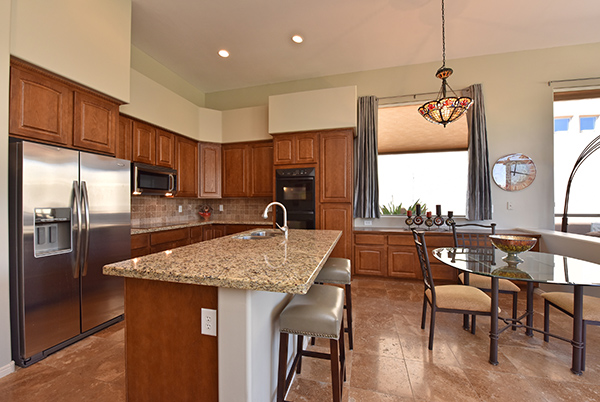 Spacious, well-maintained and ready for its new owners, this great family home has all you could ever need. The split-level floor plan offers three bedrooms, including the master bedroom with a beautifully-appointed ensuite, walk-in closet and access to a rear courtyard. For added privacy, there are two more bedrooms and the main bathroom with bath located at the front of the home. The beautiful kitchen featuResgranite counter tops and two ovens, and overlooks the breakfast nook and out to the family room. There is also an open-plan concept living and dining space with a fireplace. A two car garage, well-established, low maintenance backyard and a heated pool with a covered patio space are some of the outstanding extra featuResof this property. All of this is located in the private, gated community of Pinnacle Canyon at Troon North and backs onto a beautiful natural open space. The low-maintenance aspects of this property make it an ideal lock-and-leave holiday home or great for those seeking an easy-care lifestyle in a peaceful community.