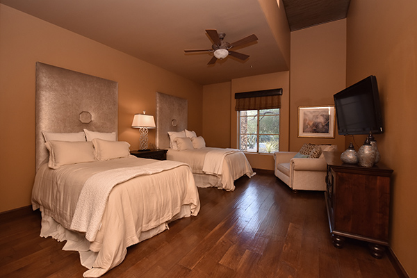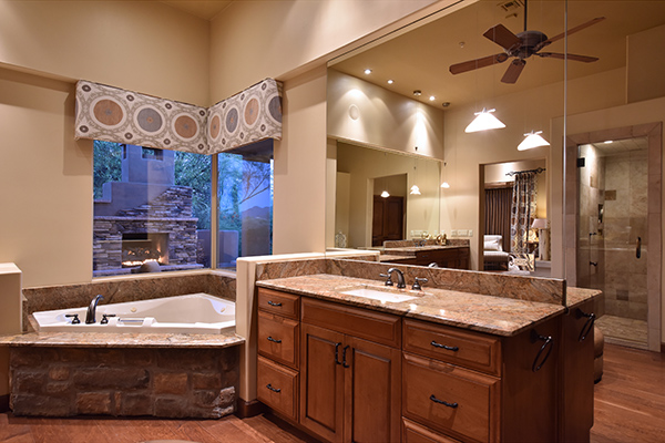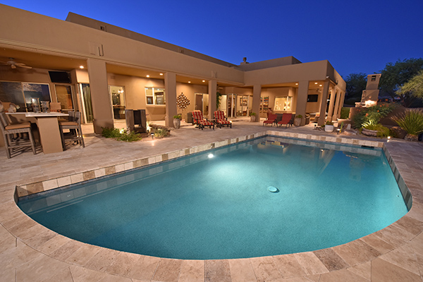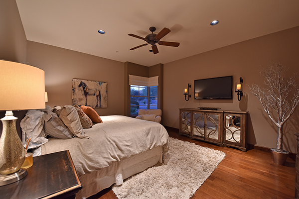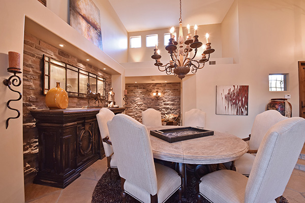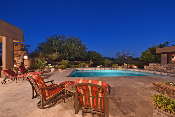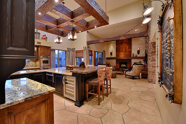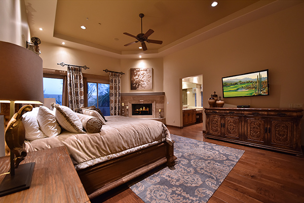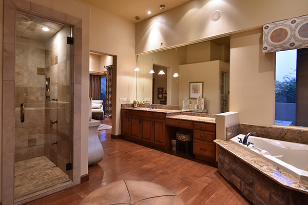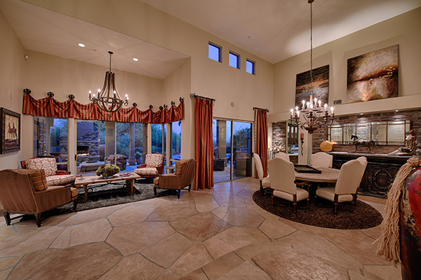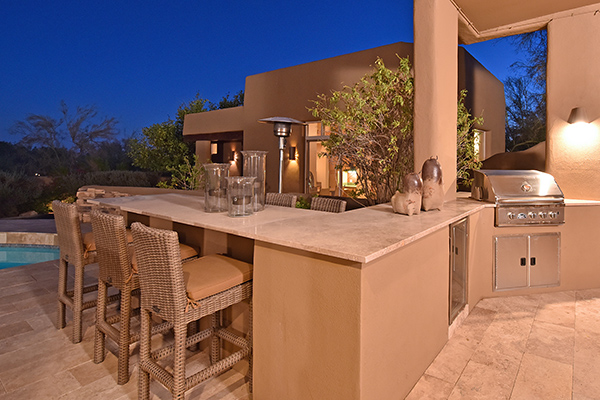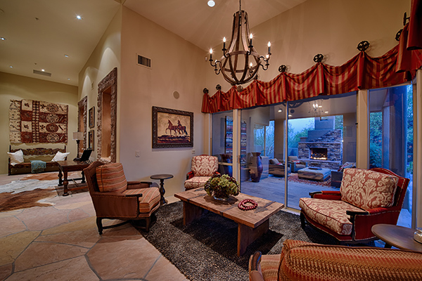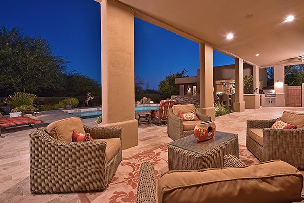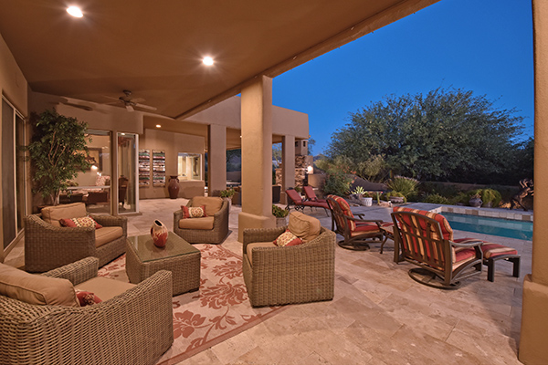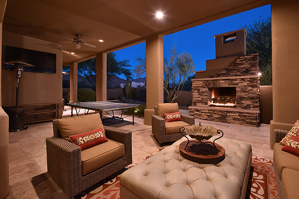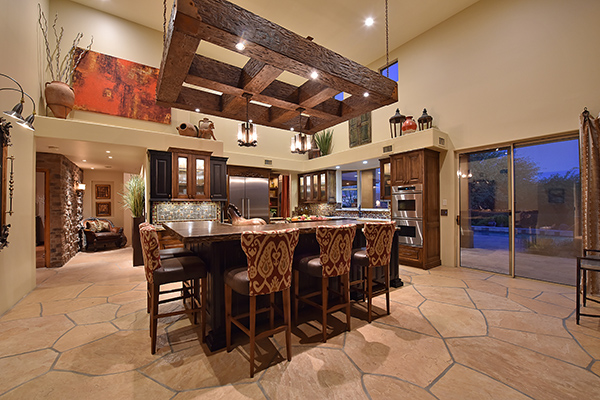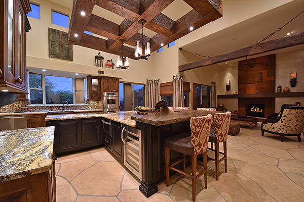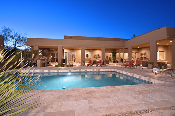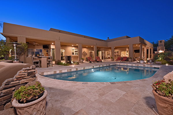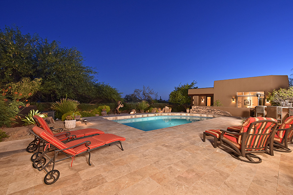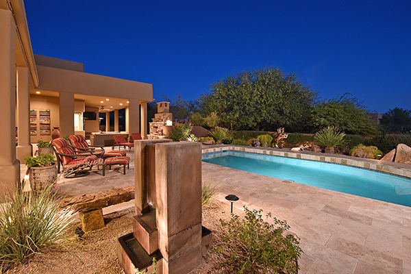 Located in the heart of Pinnacle Peak Vistas is a TRUEcustom, remodeled home reminiscent of a Spanish Colonial with modern touches offering tasteful refinement in detailing. The upper view deck allows for 360 degree views including the McDowell Mountains and Pinnacle Peak, city lights, and the entertainer’s backyard. With a remodeled pool, exterior BBQ and bar, multiple covered patio areas with travertine decking, commercial misting system, lush landscaping of mature trees and grass, outdoor TV, and a fireplace. The chef inspired kitchen is newly remodeled complete with custom furniture grade alder cabinets with custom handles/pulls, leathered granite counters, stainless steel appliances (Dacor/Thermador), induction cooktop, and opens to the family room. The TRUEmaster suite featuResit’s own private office, walk in closet with built ins, soaking tub, two fireplaces, and a steam shower. Other featuResinclude: casita with kitchenette and living room, hand hewn hickory wood flooring, complete speaker system throughout, motorized shade in master bath, extensive landscape lighting, 3 car garage with private driveway, 1,000 bottle wine room, and beamed ceilings. With too many featuResto mention, this home is sure to impress!