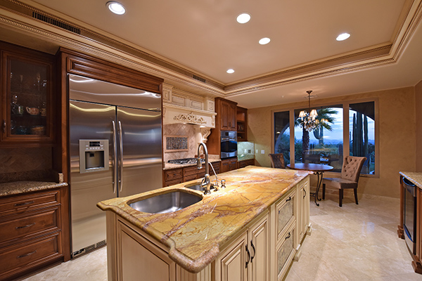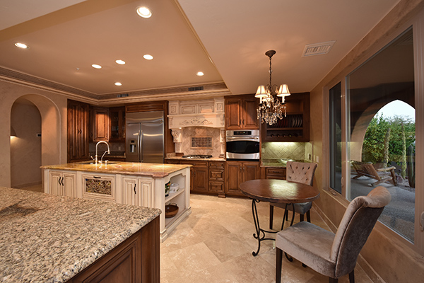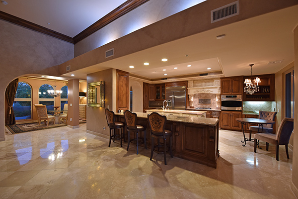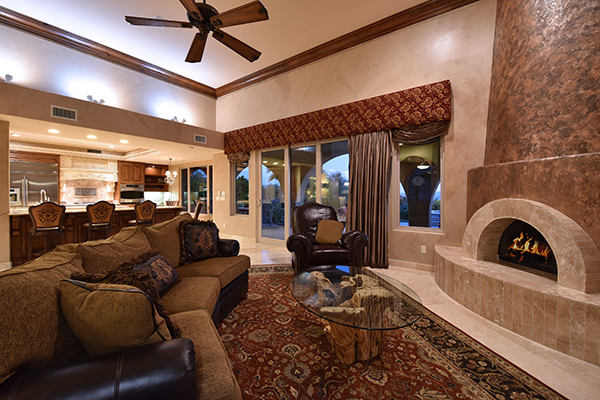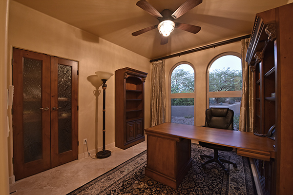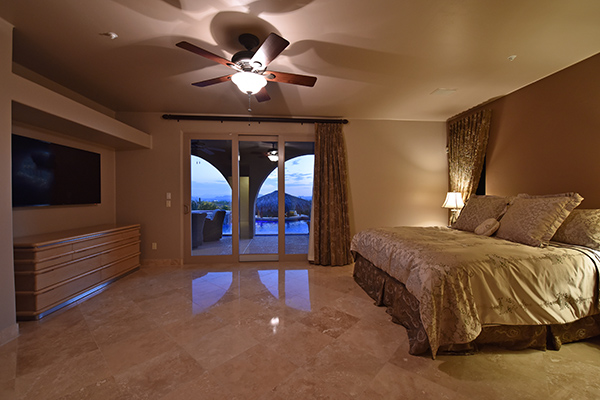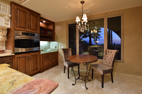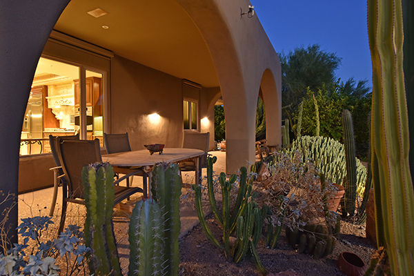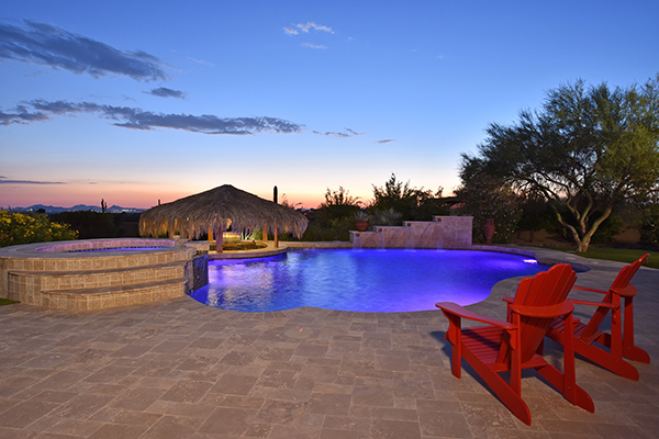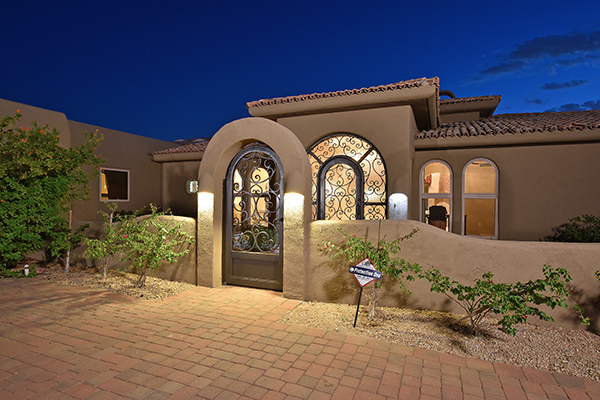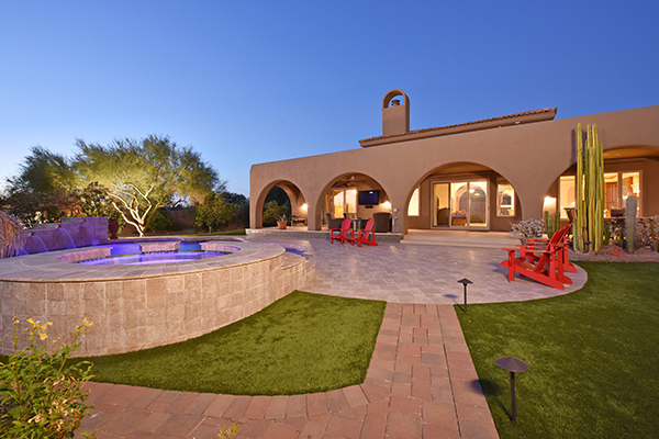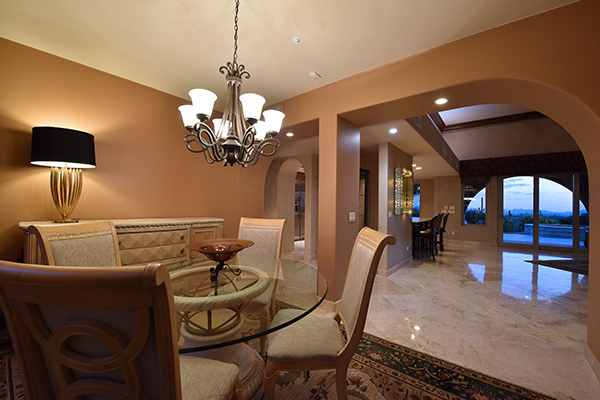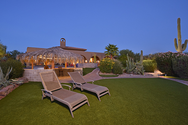 Superb city light views are the focal point for this beautiful home in Pinnacle Peak Vistas on nearly an acre. A TRUEresort yard highlighted by a swim up cabana with built in BBQ and seating, play pool with water feature and elevated spa, large covered porch spanning the length of the house, artificial turf and hardscape accents, and mature vegetation including cactus garden. Inside the home you will enter through the grand foyer with custom arched metal and opaque glass door and matching windows leading to the great room, dining and kitchen for a spacious open floor plan feel. The kitchen is a chef’s delight with furniture grade cabinetry, eat in breakfast area and peninsula bar, two toned center island, stainless steel appliances, cantera stone hood vent, and drop ceiling accents. The master suite is large and has exterior access to soak in the city lights and grand sunsets, with dual vanities, walk in shower, and his and hers closets in the master bath. Other featuResinclude; travertine flooring throughout, kiva fireplace and built in entertainment unit in great room, office with built in desk and shelving, art niches with custom murals, entry courtyard with water fountain, three car garage and pavered drive, and two additional guest suits. The private setting of the home and neighborhood are complimented by the convenience of restaurants, shopping, and freeway access just minutes away.