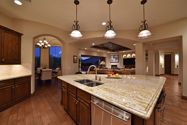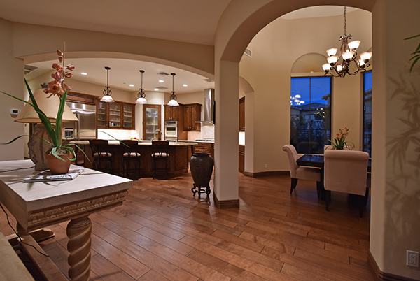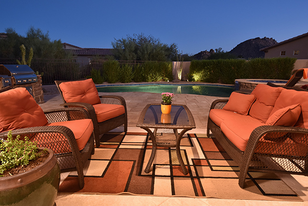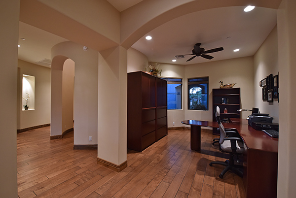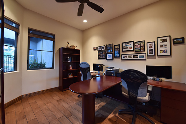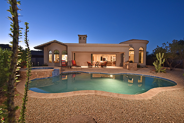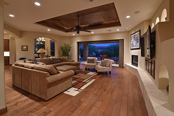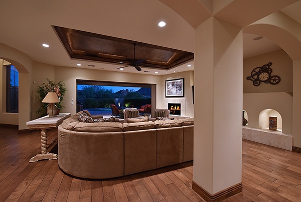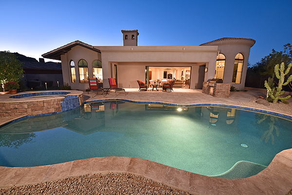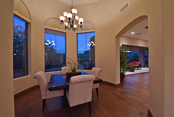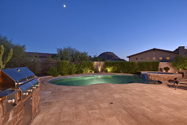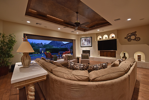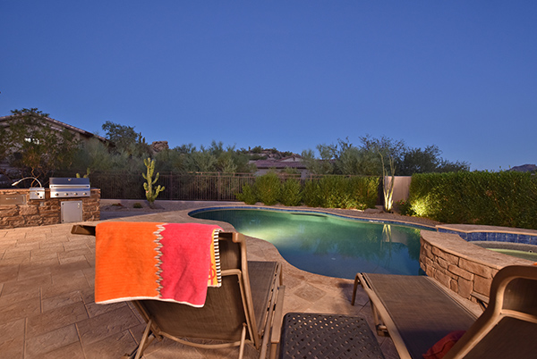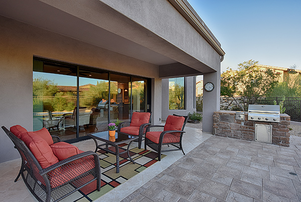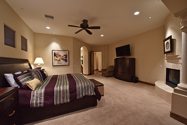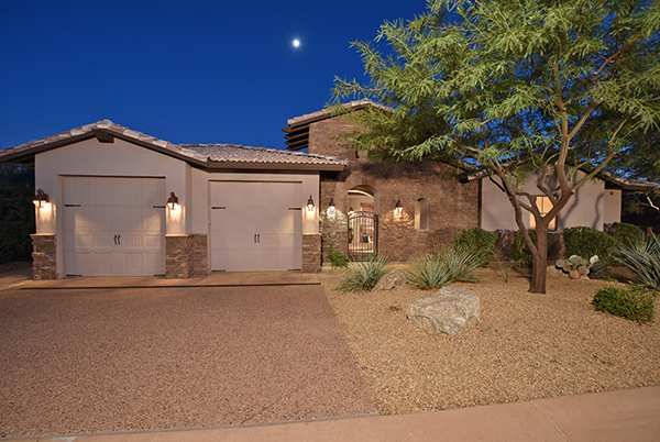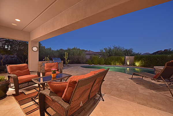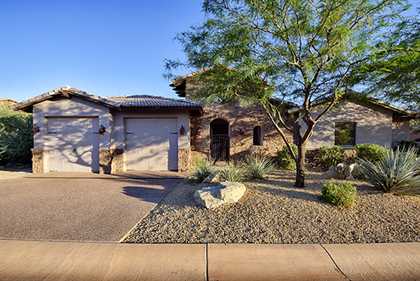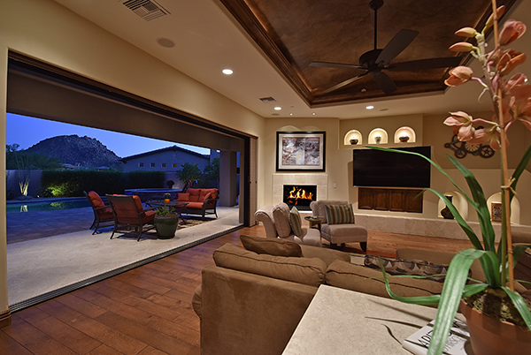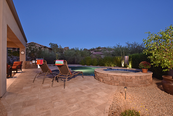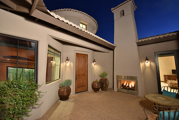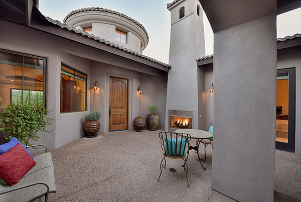 New to the Market: Immaculately maintained home built in 2010 in the gated community of Quisana showcases fine finishes and architectural details galore. Upon arrival, notice the stacked stone exterior accents, mature landscaping, and separate two bay garage doors, as you walk into the gated courtyard complete with cozy fireplace. Once inside the entry rotunda foyer, the great room floor plan opens the kitchen, dining, and family room to each other with large sliding pocket doors to the exterior for seamless transition. Travertine floors and neutral carpet in the bedrooms accent real hardwood floors and baseboards throughout the main living areas. The large kitchen has stainless steel appliance, granite slab counters, rich wood cabinetry with glass accent pieces, wine fridge, double oven, and an oversized island. Relax in the backyard with 2016 completed pool and spa, built in BBQ, putting green, large patio and deck spaces all while taking in the Troon Mountain views. Retreat to the master suite with stately cantera columns, fireplace, sitting room, large walk in shower and soaking tub, extended double vanity with seating, and walk-in closet. The secondary bedroom has an ensuite bath and separate access to the front courtyard. Located across from the four seasons, and adjacent to the George “Doc” Cavalliere Park, you can enjoy all that the North Scottsdale lifestyle has to offer in this lightly lived in home, ready for move in.