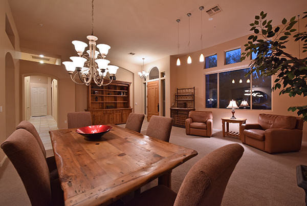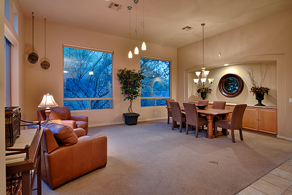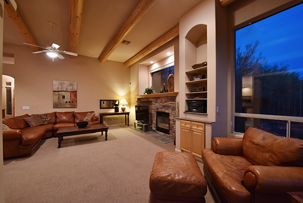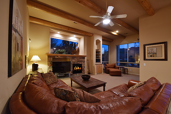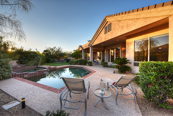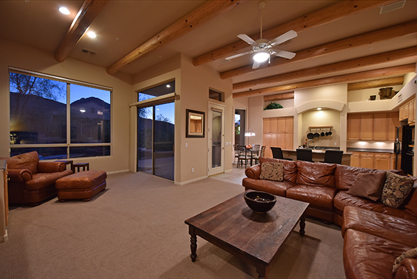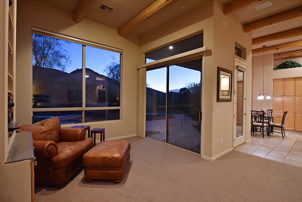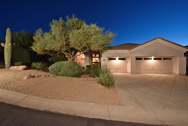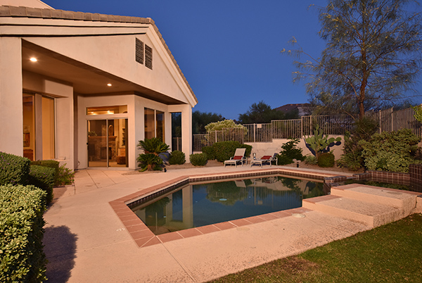 Great find at Saguaro Canyon in Troon Vilage is now priced to sell! Offering prime interior corner lot location with views, expanded south facing yard and pool, this residence is a perfect winter residence or year round retreat. Single level floor plan with no interior steps featuReshigh ceilings, vega beam accents, large bright windows to capture natural light as well as direct views of the McDowell Mountains, plantation shutters, huge master bathroom with walk-in shower and separate soaking tub, two guests suites connected with Jack and Jill bath, third guest bedroom with adjacent bath, great room with built-in buffet, eat-in kitchen with dining nook and open to family room with fireplace, and more! All appliances included; 3-car garage with storage. Backyard featuRescovered patio wrapping the entire back facade for mulitple seating and dining spaces, heated spa that descends into pool, and real grass lawn with lush palms and flowing landscape. Bring your decorator and make this home your own.