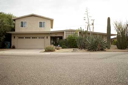 One of kind 2400 sf + home within walking distance of two city parks. The spacious upstairs master bedroom has a sitting area, wet bar, large walk-in closet, and a master bathroom with double vanities and a jetted tub. The recently updated soft contemporary kitchen has shaker style cabinets, glass inserts, butcher block counters, white subway tile backsplash, stainless steel appliances, hanging storage areas, with cork flooring extending into the den and breakfast area. With low maintenance desert landscaping in the front, the backyard is a retreat with a sparkling diving pool, covered patio, grassy area, and fruit trees. Conveniently located with easy access to major freeways, shopping and dining, top rated Paradise Valley School District, and mountain preserve hiking and biking trails.
