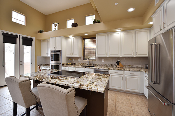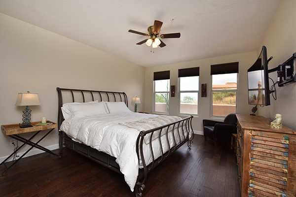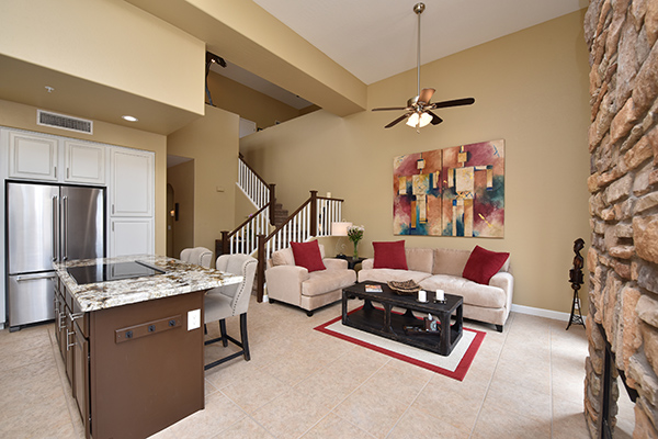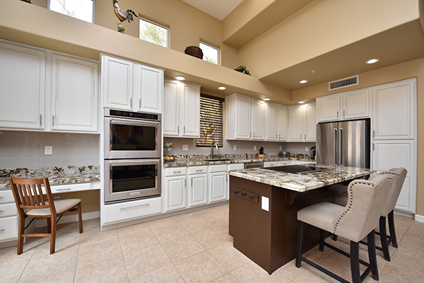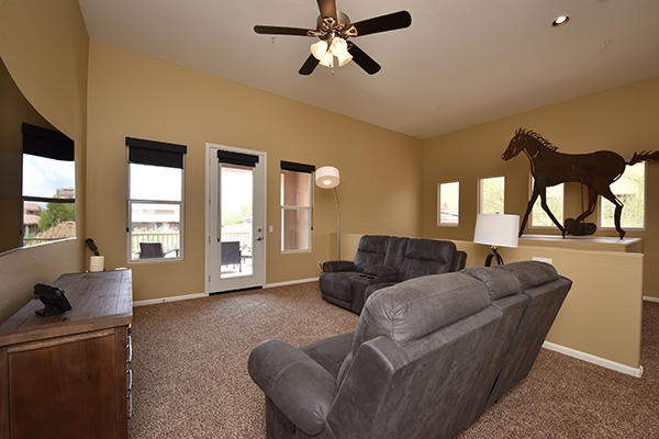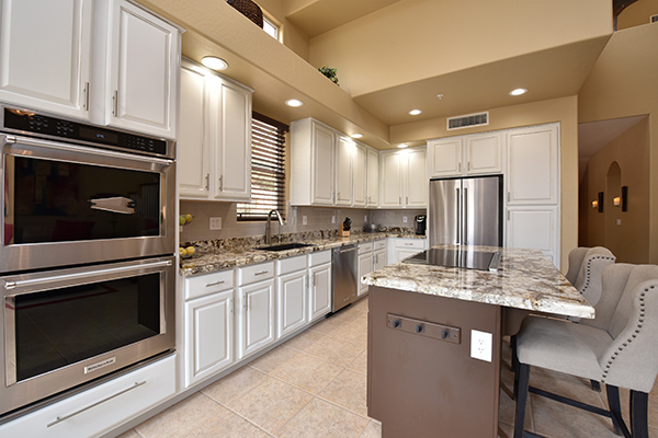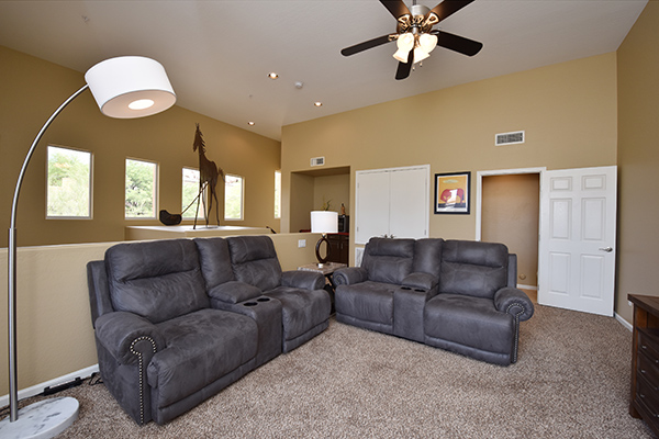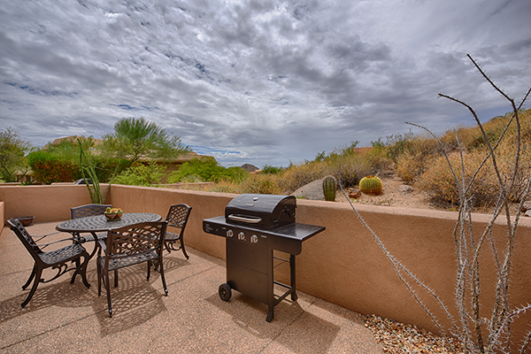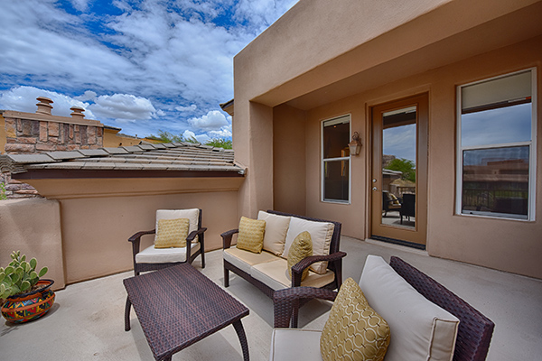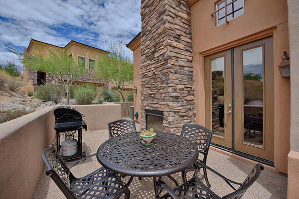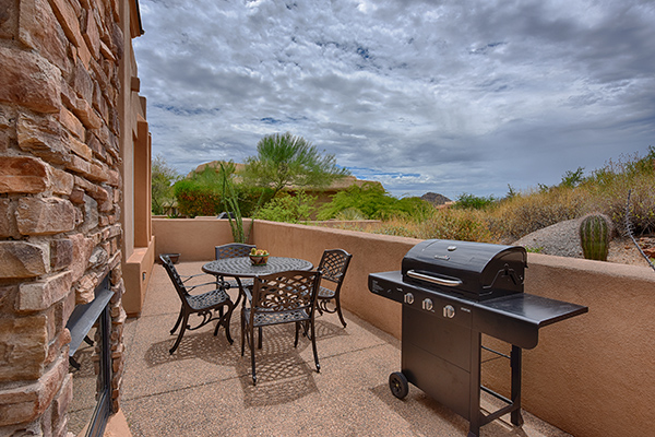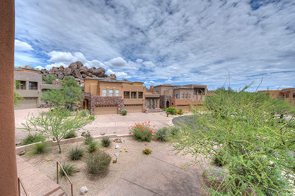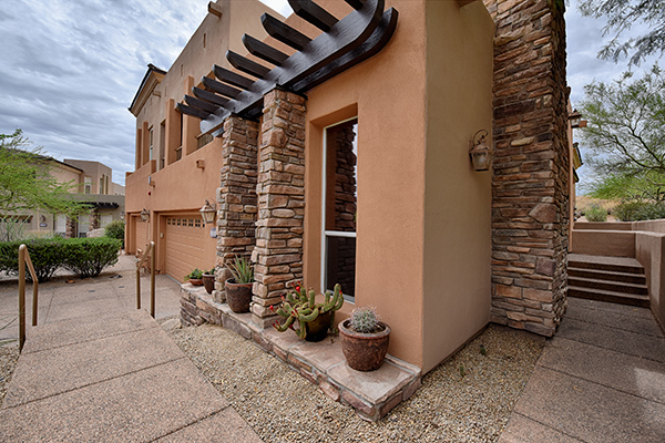 Superb location in gated Stonedge at Troon North highlights beautiful city views, sunsets, and boulder outcroppings. The newly remodeled town home featuResa designer kitchen with a new stainless steel appliance package, refinished cabinetry and hardware, granite slab countertops, two toned island with bar seating, built in desk area, upgraded lighting, and stacked stone two way fireplace leading out to the private patio. The downstairs master has new hardwood flooring and a remodeled bathroom with dual sinks, makeup vanity, large soaking tub and walk-in shower and closet. Upstairs is another ensuite bedroom with remodeled bath, loft with powder bath and balcony could be used as a bonus/flex space or second family room. Downstairs also has a guest powder bath, den with new hardwood floors and stacked stone fireplace, and an attached garage. Other featuResinclude: newly painted interior and exterior, upgraded baseboards, new window coverings, new hardware and light features, new carpet, new roof in 2015 (HOA covers), and a security system (HOA covers).