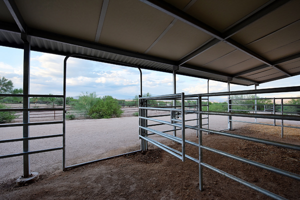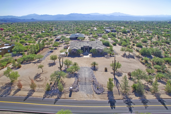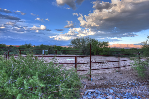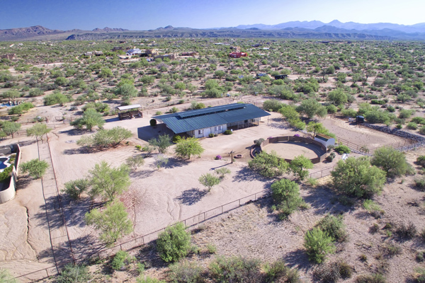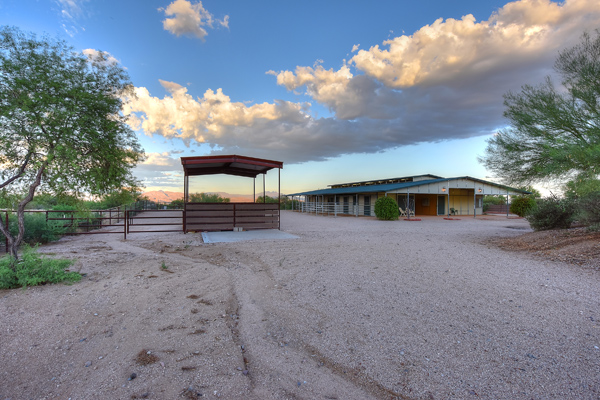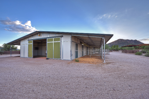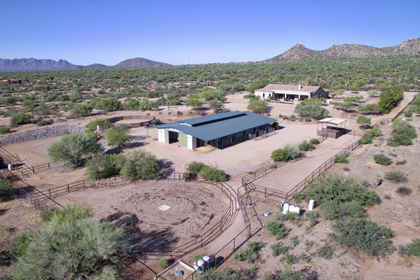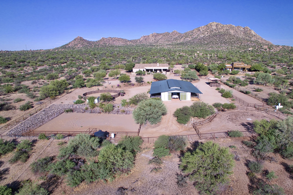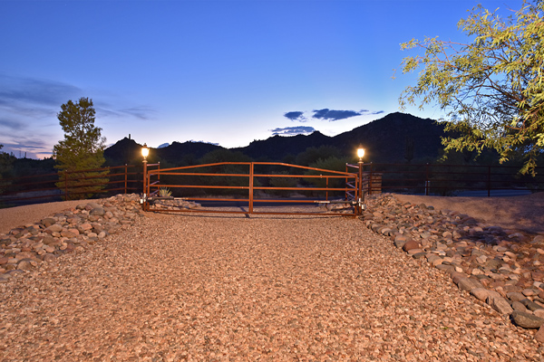 3.5-Acre Gated Residential Equestrian Complex now available in North Scottsdale. Conveniently paved access to main road for calm trailering, the equine facilities include: barn with six 12×12 stalls w/ individual covered corrals w/ fly system plus a grooming stall with hot/cold wash, tack room, laundry area, half bathroom, and a guest/stable manager apartment with private living space, bathroom, kitchen and Arizona Room; 85′ x 100′ training arena for dressage, jumping or gymkhana, 60′ round pen, and three additional open air turnouts with hot walker setup available. Riding trails await right outside the doorstep with Granite Mountain Trailhead and the Tonto National Forest.