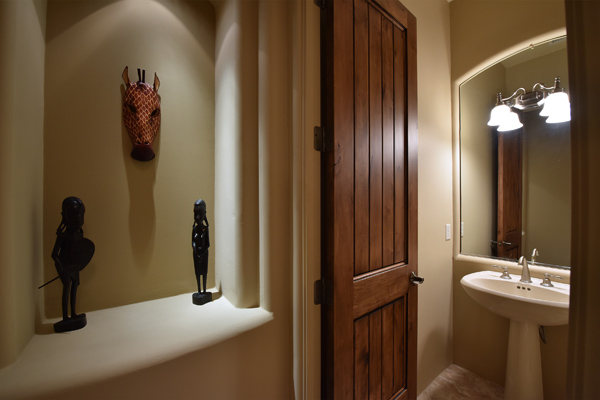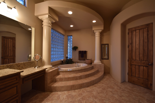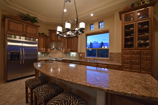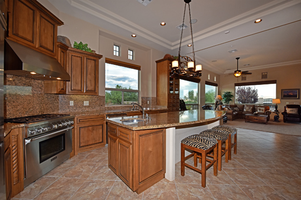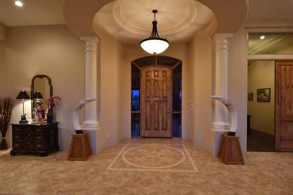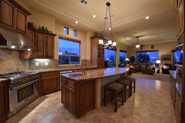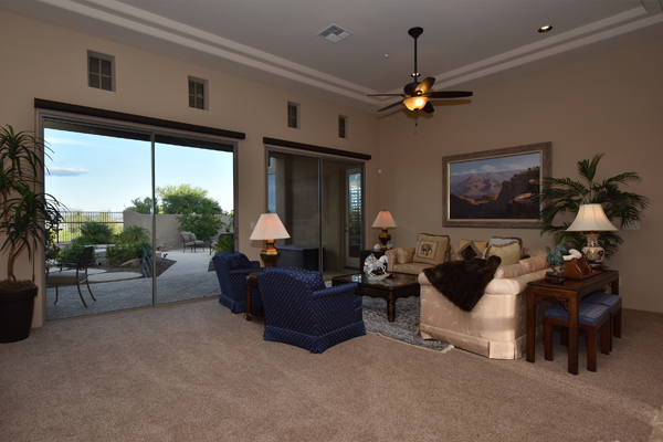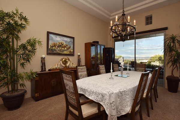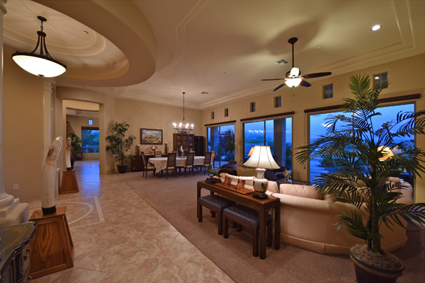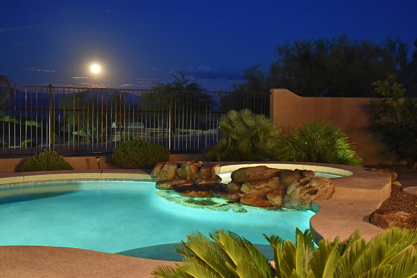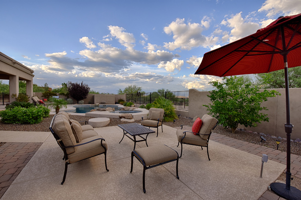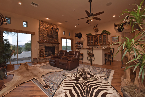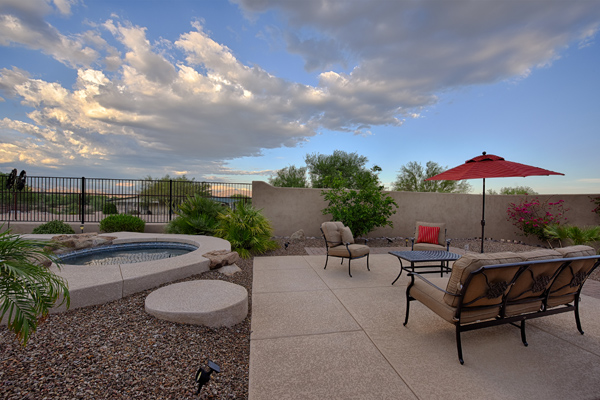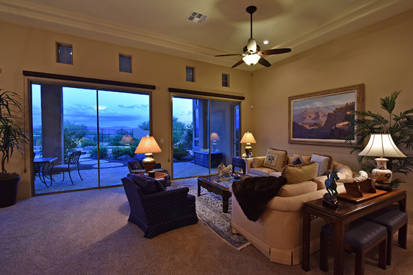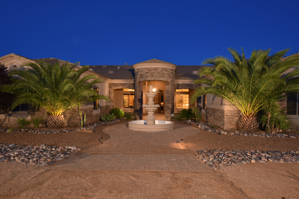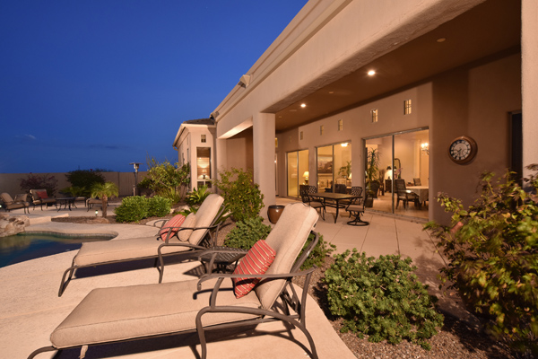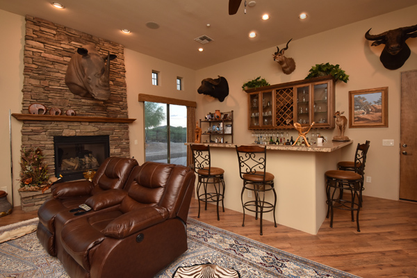 The main house begins with the great room featuring walls of sliding doors framing the property and dramatic mountain vistas. The open kitchen/ family room has granite counters, alder cabinetry, breakfast room, walk-in pantry, top of the line stainless steel appliances including the hooded 6 burner Viking range, and a stacked stone fireplace with entertainment center. The master suite featuResa fireplace with space for seating, access to the back patio, two walk-in closets, and large bathroom with walk-in shower and jetted soaking tub. All three additional bedrooms, each connected to a bath area, open onto the bonus/game room complete with a full bar area. Additional interior amenities include executive office, powder room, laundry room and 3-car split garage. An extended patio wraps the back facade for covered seating and dining areas before expanding out to surround the heated pool and spa. Enjoy panoramic mountain views after a trail ride in the 30,000-acre McDowell Sonoran Preserve adjacent to this gated residence.