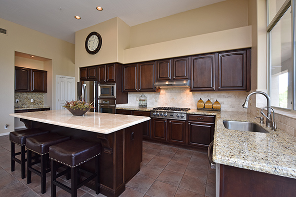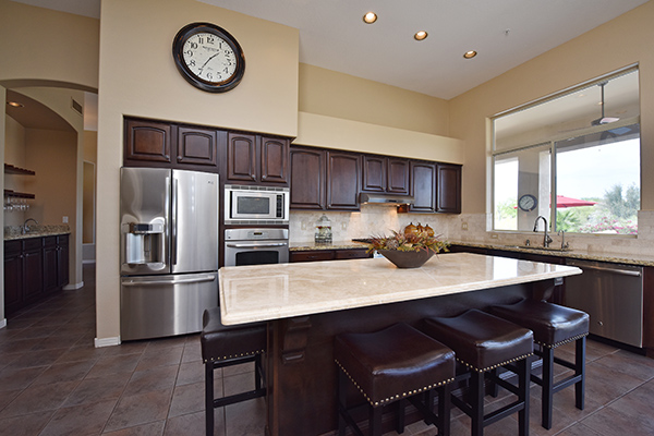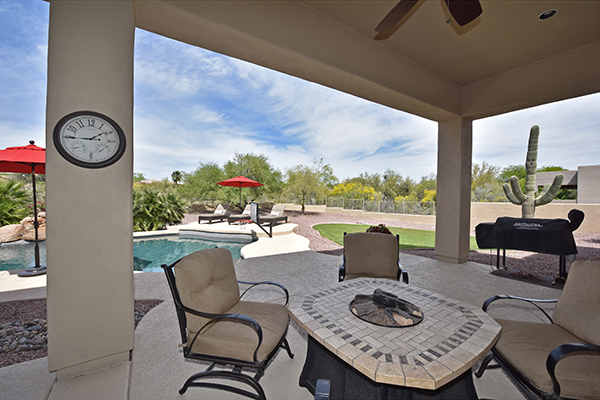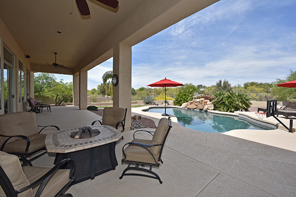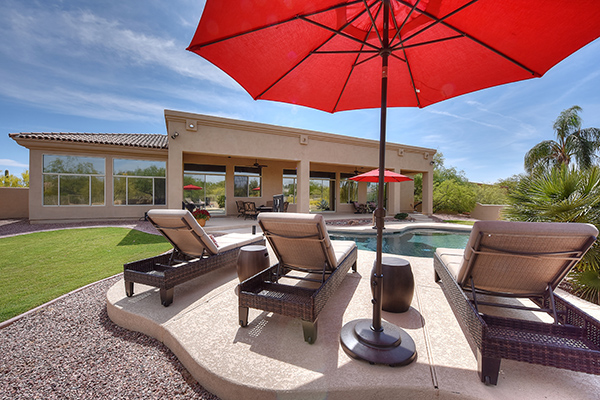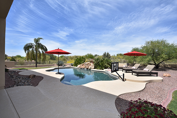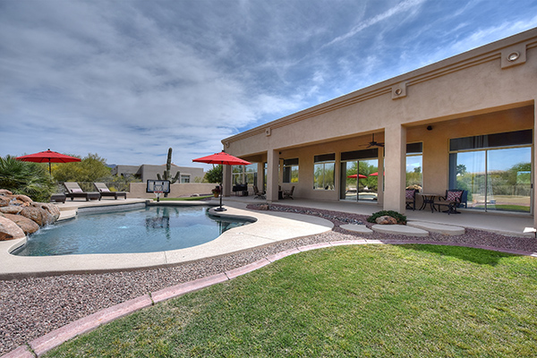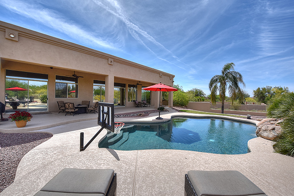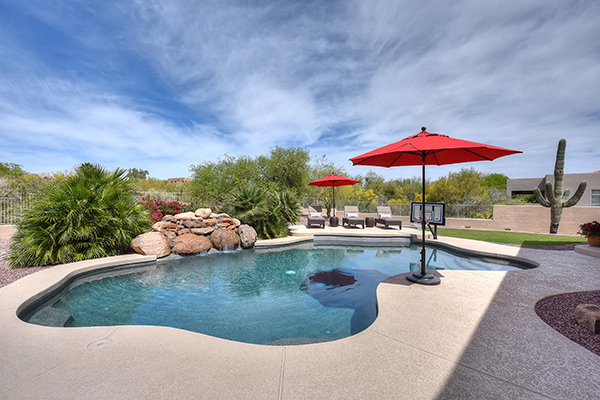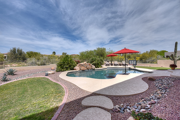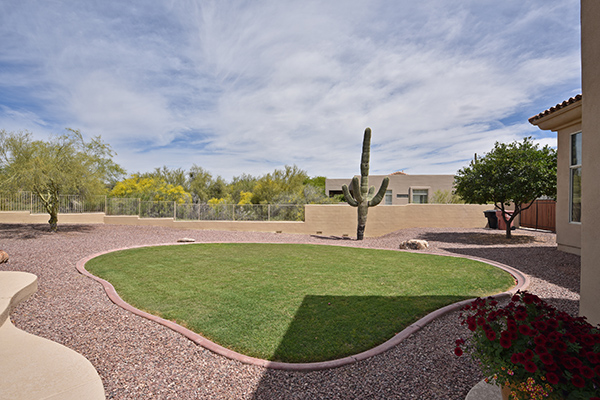 Beautifully maintained home in the private and gated community of Tierra Bella, featuResa resort style backyard on an oversized lot, perfect for entertaining. With mature landscaping and trees, enjoy the Arizona sun from the refreshing pool with waterfall feature, grass areas, large covered patio for dining and lounge area for relaxing. The updated kitchen has it all with a six burner Viking gas range, stainless steel appliance package, rich wood cabinetry, large center marble island with bar seating and two toned granite counters opening to the breakfast area and family room with exterior access. The formal living and dining spaces are flanked by a wet bar and a foyer with large art niches and lots of natural light from the windows. With a master suite complete with an updated spa like bathroom with marble and travertine finishes, three additional bedrooms and updated bathrooms encompassing 3,122 sq ft, this home is the perfect fit.