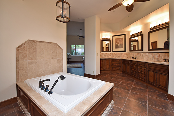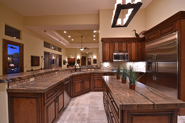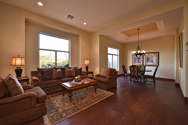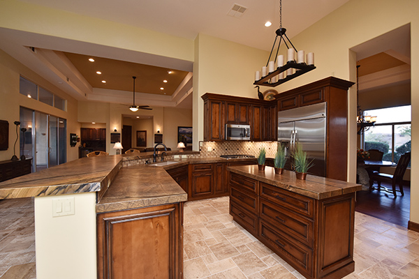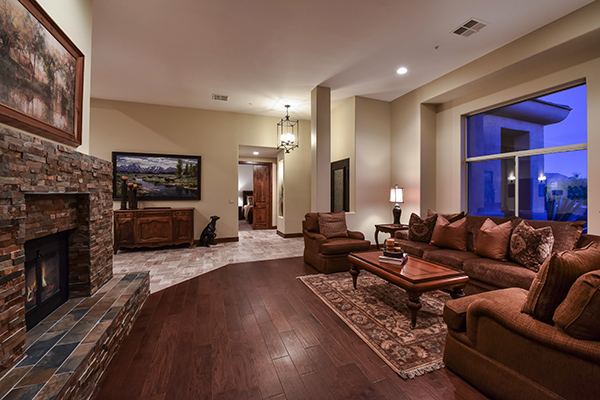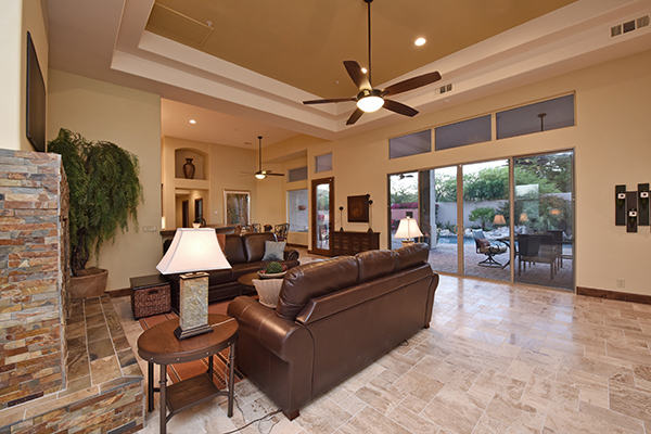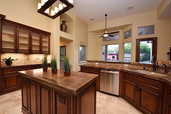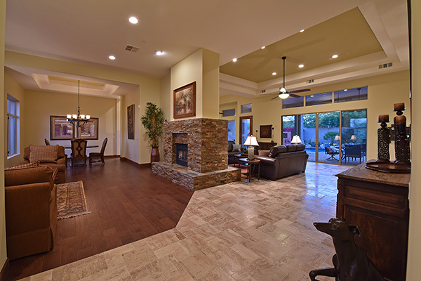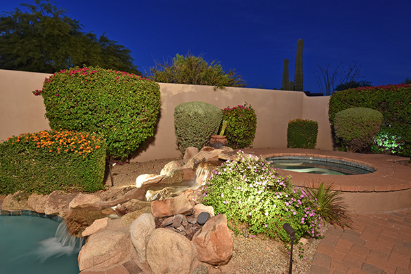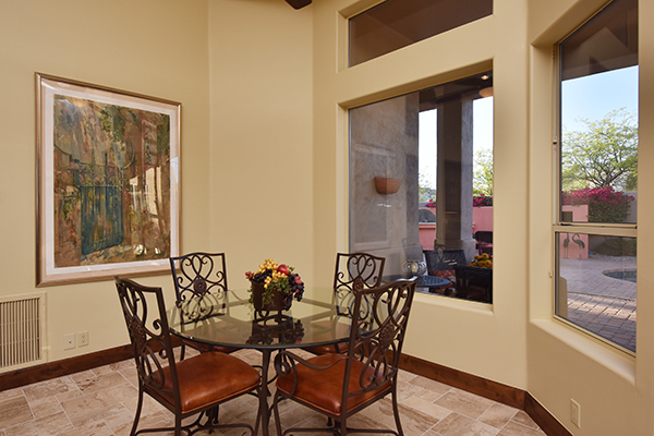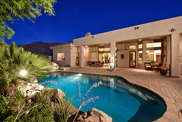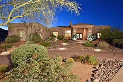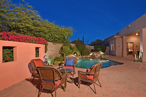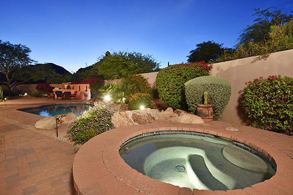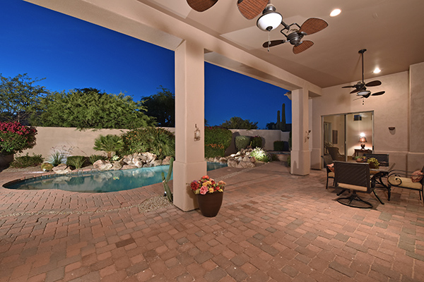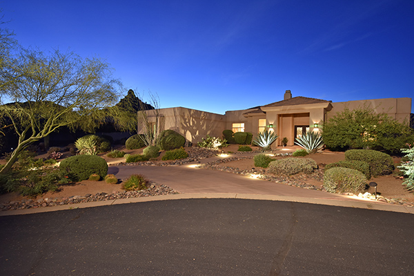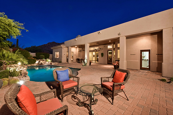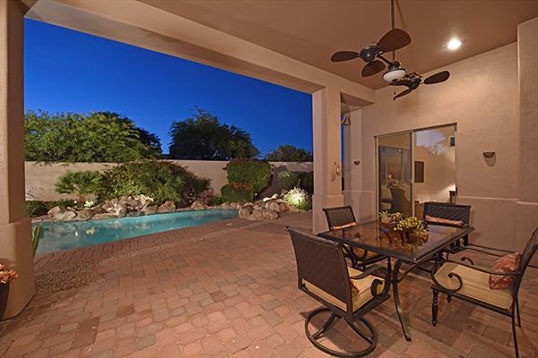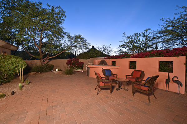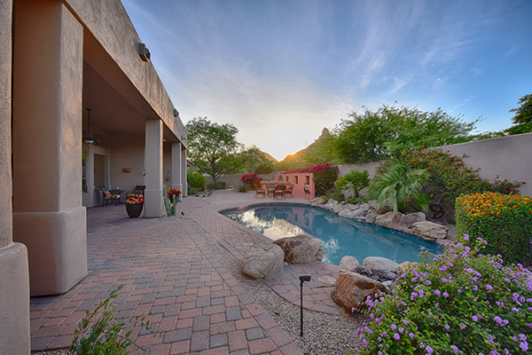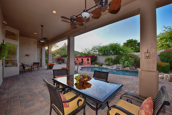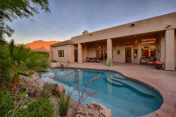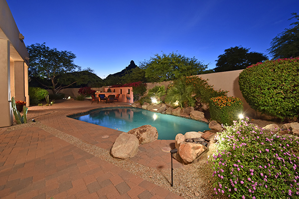 Newly renovated with quality finishes make this gated Troon Fairways home move in ready! Enjoy the direct views of Troon Mountain and Pinnacle Peak from the oasis like backyard with heated swimming pool, waterfall feature, spa, hand pavered surround, large covered patio, and an outdoor grill and island. Beautiful finishes found throughout including the large kitchen with custom knotty alder cabinets with glass inserts, top notch granite slab counters, stainless steel appliance package, center island, and eat in wrap around bar. Hardwood floors are complimented by patterned travertine floors and upgraded carpet. The spacious master retreat is complete with a fireplace and exterior access, with a spa like bathroom featuring a freestanding soaking tub, double sinks, and an oversized shower with dual shower heads and rain head, opaque glass window and travertine surrounds. With a three car garage, corner, cul de sac lot, mature landscaping, and just over 4,000 square feet this home has it all!