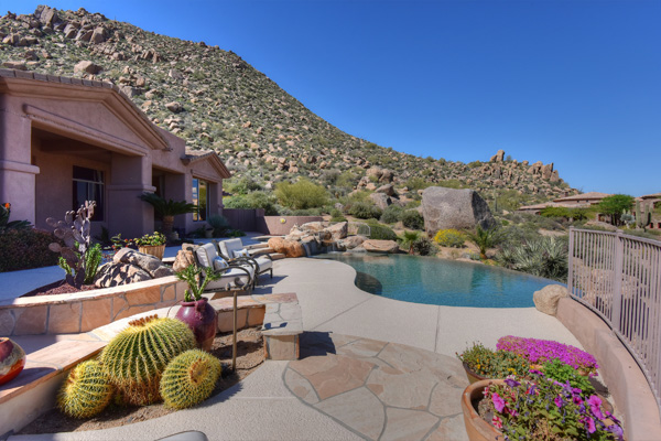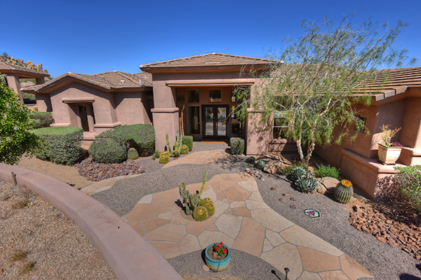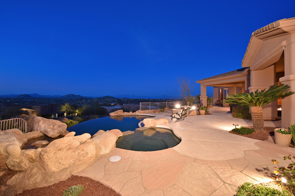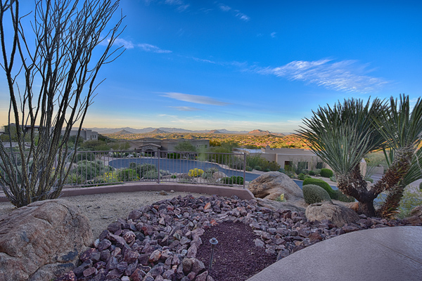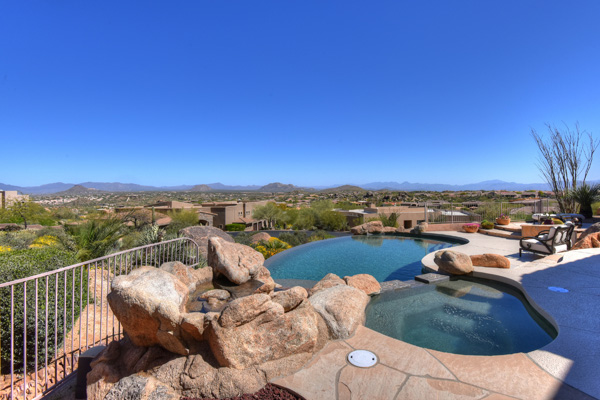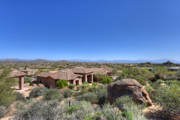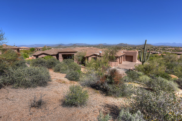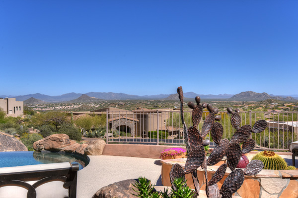 HUGE Price Reduction! On one of the highest elevation lots in guard-gated Troon Village, this home has stunning, incomparable views from 2800+ft. The home was designed to optimally capture those views from all angles. The negative edge pool and spa lets you soak in the stunning views and the expansive deck space allows for plenty of seating and entertaining. Escape to your private elevated ramada to sit by the peaceful fire and appreciate the unobstructed views. The large open kitchen is adjacent to the spacious wet bar and featuResgranite surfaces, multiple dishwashers, ovens, and cooktops, custom cabinetry, ss appliances, bar seating, and large center island, opening to the cozy family room with fireplace framed by built-ins. A 4-car garage with a huge workshop complete with heating/cooling and full bath allows for potential guest quarters conversion. Some of the fine finishes include: cherry cabinetry, granite and travertine surfaces, large master suite with designer closet, study with beautiful wood work, fitness room, media room, handicap accessibility, private cul de sac lot, custom glass and metal entry door and too many more to list. Come see one of the finest North Scottsdale has to offer.