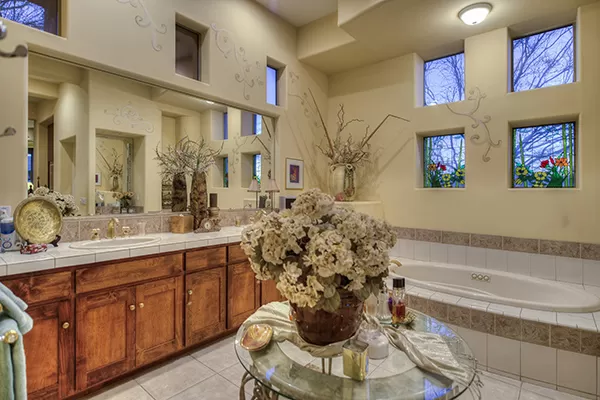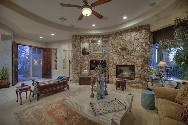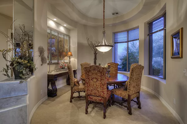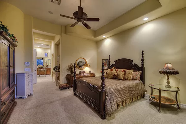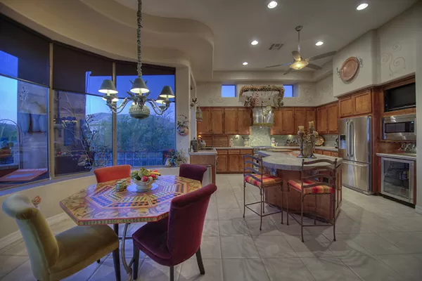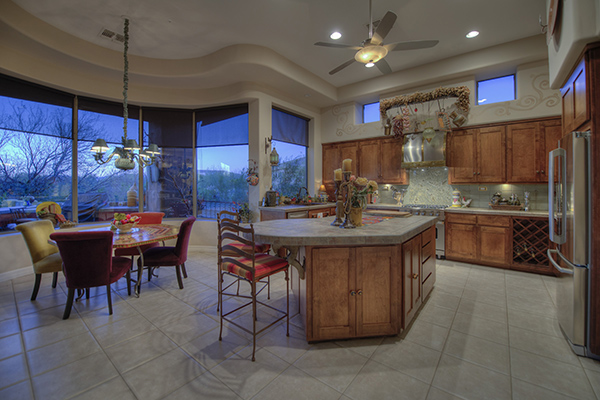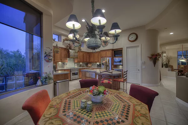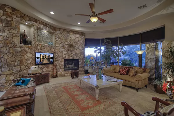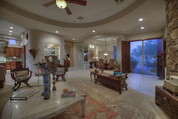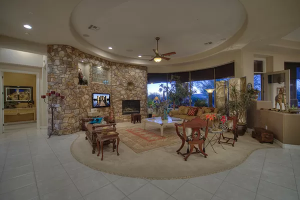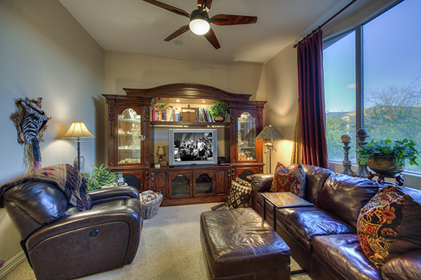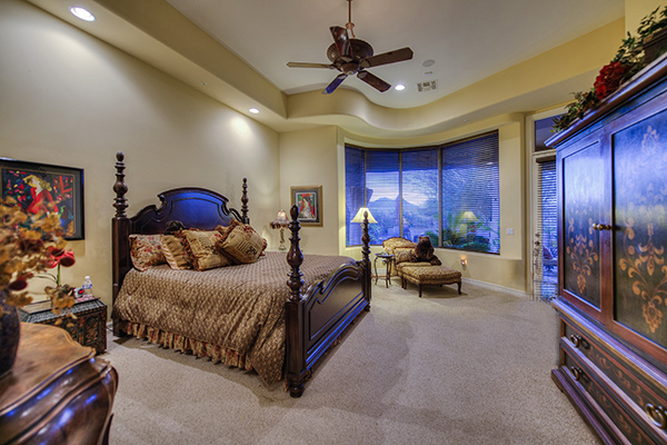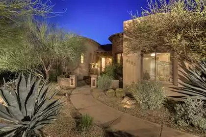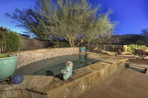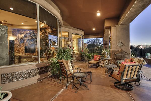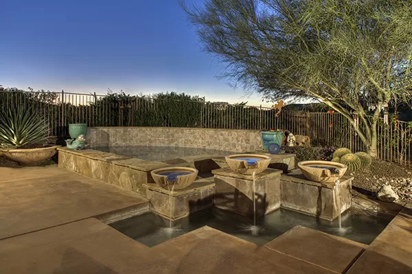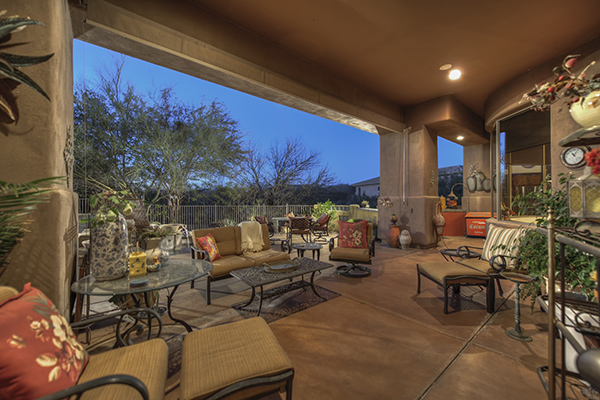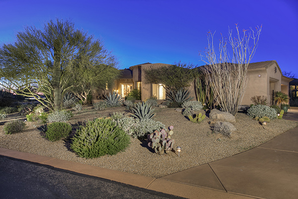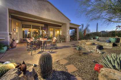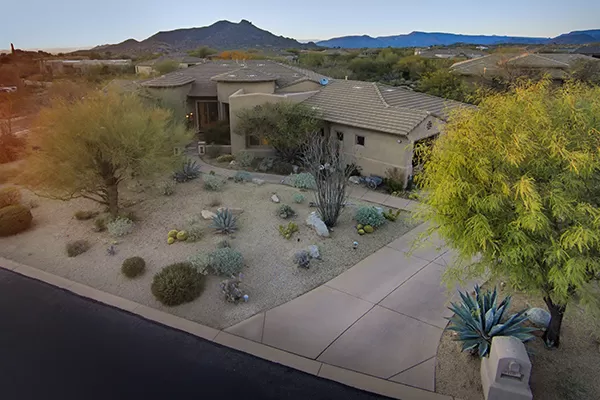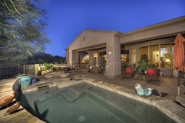 Stylish and sophisticated describe this popular open concept floor plan in the gated community of Verdante at Westland. Spacious interior spaces and circular rooms provide 180 degree views of mountains and natural area open space. Lush greenery surrounds the home giving a private resort-style feel. Upgraded kitchen with premium appliance package and a huge walk-in pantry with ample room for storage. The extra large granite island has a sit-down bar for entertaining. Neutral paint throughout will suit every lifestyle. 1500 sq ft of covered patio with heated play pool and waterfall featuResadd to the luxury resort backyard feel. The BBQ kitchen overlooks spectacular greenery. Leaded glass windows in Master Bath. With three additional ensuite bedrooms and a separate den this has it all.