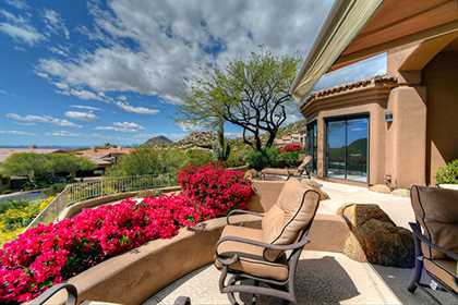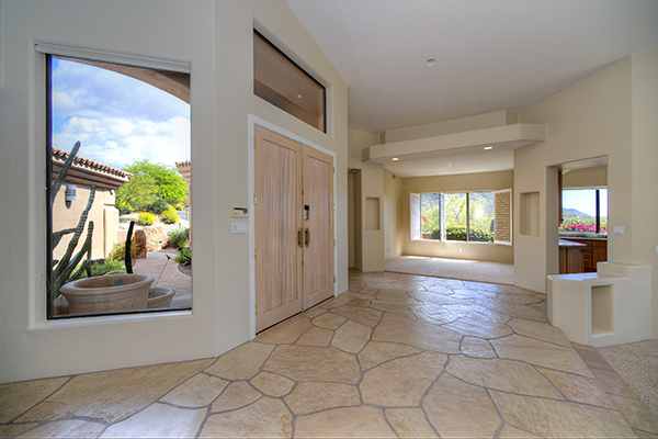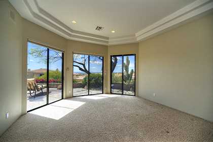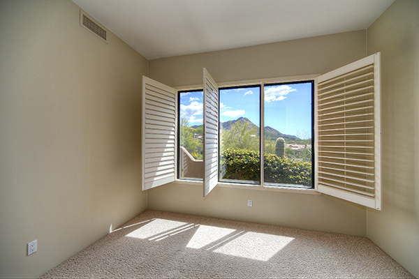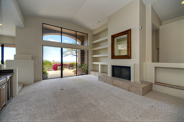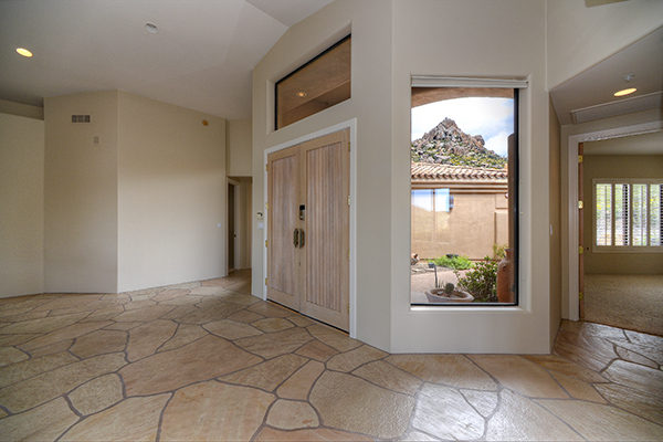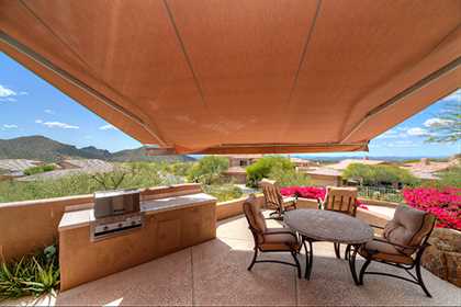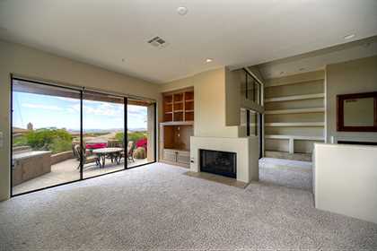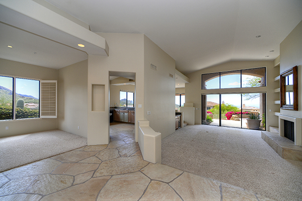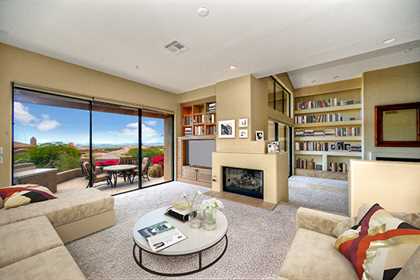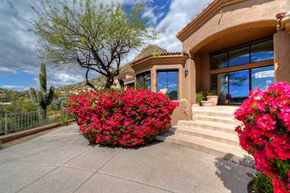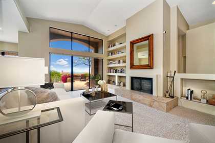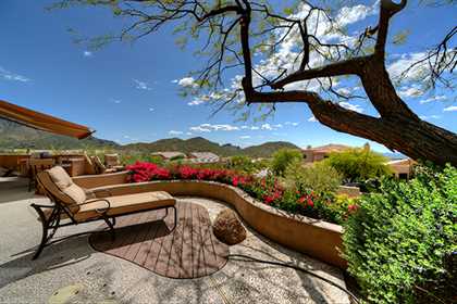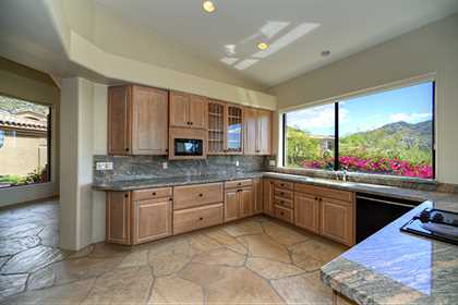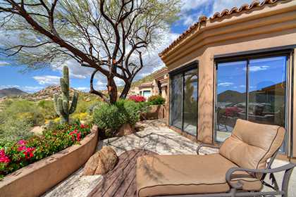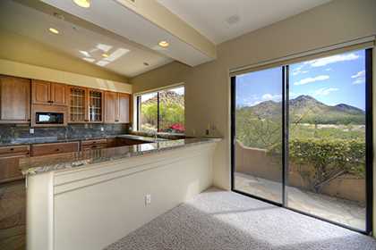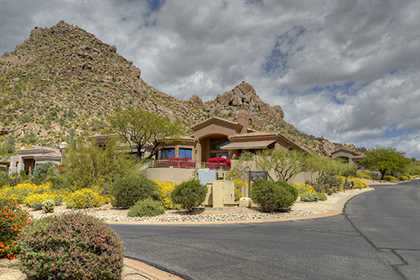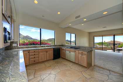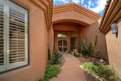 Located in the gated community of Whispering Ridge in Troon Village this spacious home is ready for you to make your own. The 2,853 square feet floor plan offers three bedrooms plus den, three bathrooms and multiple living spaces including a formal dining room and living room with fireplace. For the home chef, the kitchen offers plenty of cabinetry and prep space, granite countertops, eat in bar top, built in microwave, cooktop with griddle. The kitchen overlooks the family room with built ins, cozy fireplace, and dual sliding doors that open out to separate patio spaces where you can take in the views of the McDowell Mountains in the day or the city lights at night. Outside, there is also a built-in barbecue with alfresco dining area and retractable awning, plus a parked spa ready for conversion and beautiful established landscaping. This home is set on a corner lot, with plenty of extra windows and sliding glass doors throughout the home to allow natural light to pour in as well as perfectly framing the beautiful mountain and city views. With new air-conditioning units, hot water heater and fresh interior paint, this home is ready for its new owners.