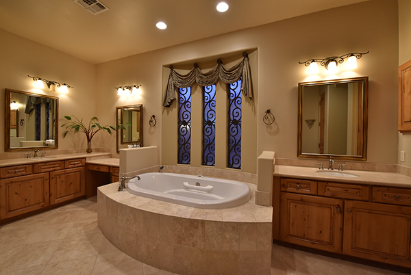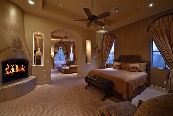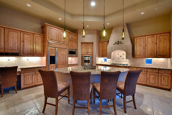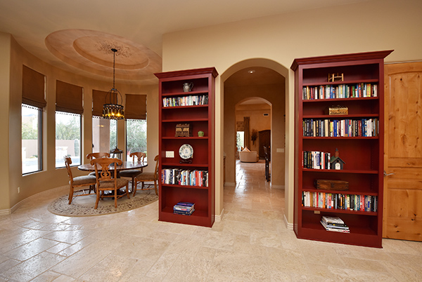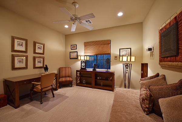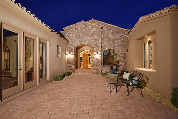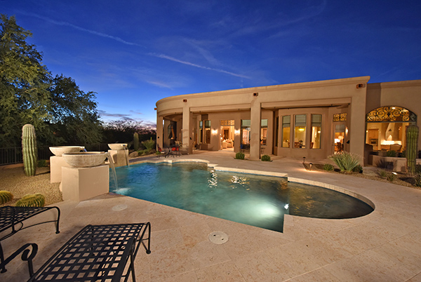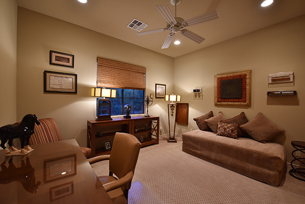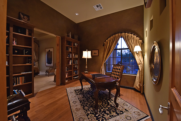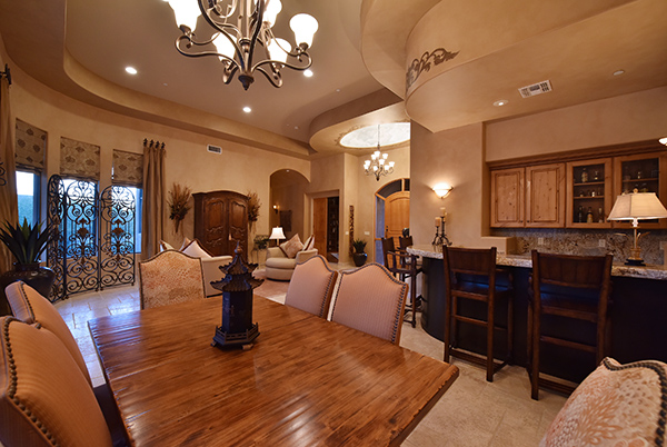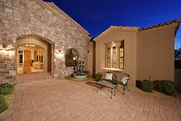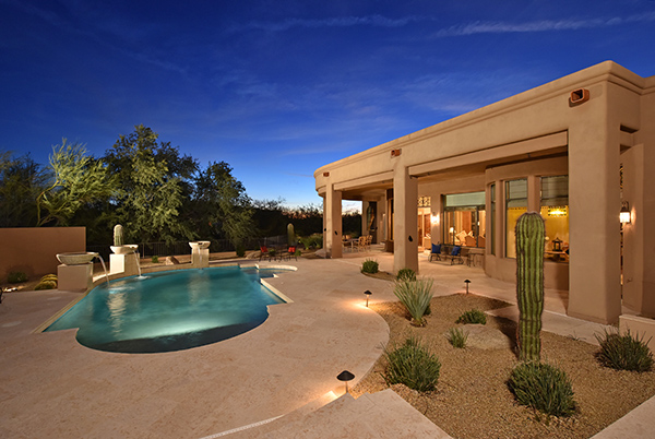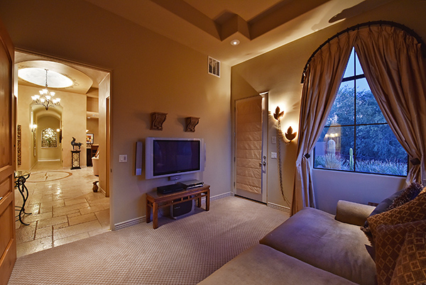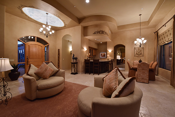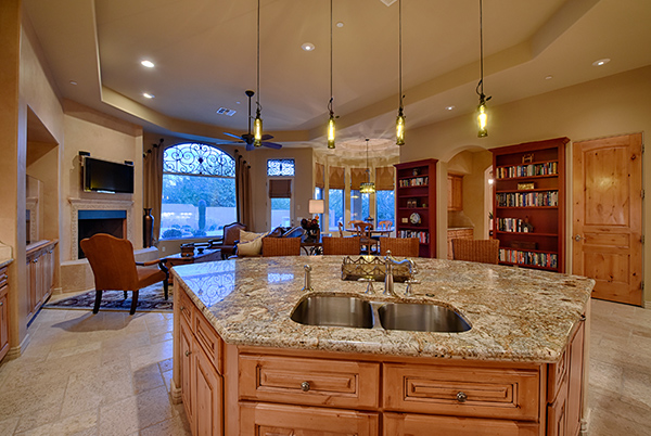 Beautiful residence in gated Windy Walk Estates at Troon Village boasts direct views of Troon Mountain. All on one level with no interior steps. Master retreat with private sitting area and adjacent office, mother-in-law suite, plus 2 additional bedrooms. Warm up in the master suite with the adobe-style fireplace, then move between the attached office and seating areas. The stone accented front has a private entry courtyard. The stunning kitchen with its soaring ceilings, open floor plan to the family, custom travertine stone vent and backsplash, stainless steel appliances, large center island, granite slab counters and ample cabinet space will satisfy even the pickiest buyer. Outside, the lot is equipped with a two-car attached garage, and four-car detached garage complete with Tiki-bar. The backyard is sure to impress with resort-style lounge seating and a pool decorated with water featuResblending seamlessly into the desert landscaping. Escape the heat under the covered patio while still enjoying the breathtaking views. Outside, the lot is equipped with a two-car attached garage, and four-car detached garage complete with Tiki-bar for entertaining. Other featuResinclude versailles pattern travertine throughout the interior and back exterior, designer paint, large wet bar, wood doors, upgraded carpet in the bedrooms and billiards room, and epoxy floors in the garage. This wonderfully maintained home is ready!