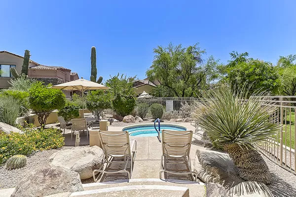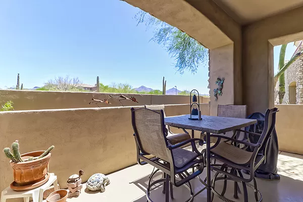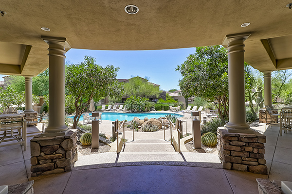 Location and Views! Located in the guard-gated golf community of Cachet at Grayhawk, this fully furnished, turnkey unit is perfect for year round or seasonal living. Enjoy the outstanding views of McDowell Mountains from the upper balcony or covered patio. HVAC, dishwasher and hot water heater were all recently upgraded.