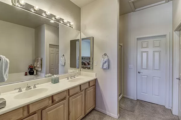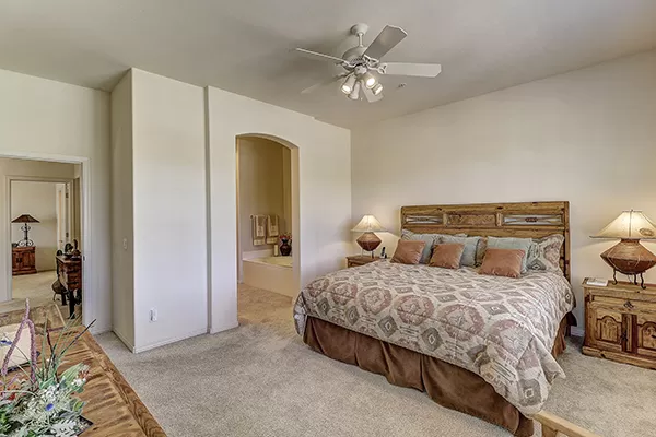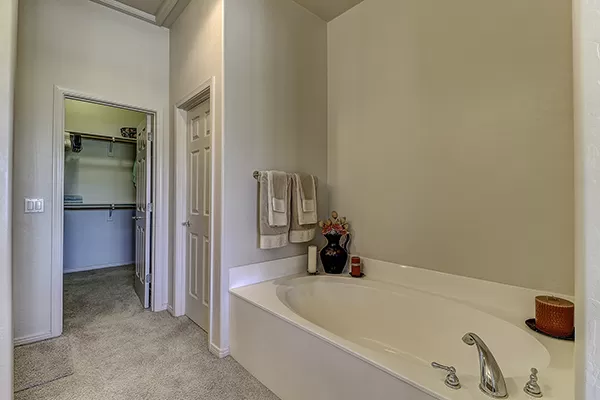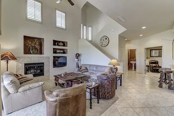 The open floor plan features two ensuite bedrooms upstairs and a den/flex space on the lower level. The large living room has a gas fireplace opening to the dining room and exterior access to the patio. The attached two-car garage has an extra storage room. Enjoy two championship golf courses, award winning clubhouse with heated pool/spa, BBQ, fitness center, plenty of guest parking and lush grounds. Conveniently located near dining, shopping, hiking, and entertainment.