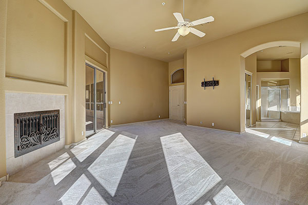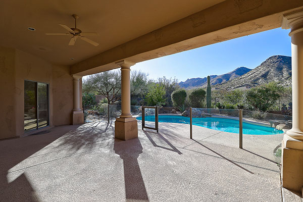 Great find at Desert Crest in Troon Village, this home is a perfect winter retreat or year round residence. An expanded south facing yard and refreshing pool highlight the backyard with a grassy play area, large covered patio, lush and easy care desert landscaping, and up close mountain views. The single level floor plan with no interior steps featuResthree bedrooms and two and half baths with a separate den, formal living and dining spaces, along with an open kitchen and family area with cozy fireplace and built in wet bar.