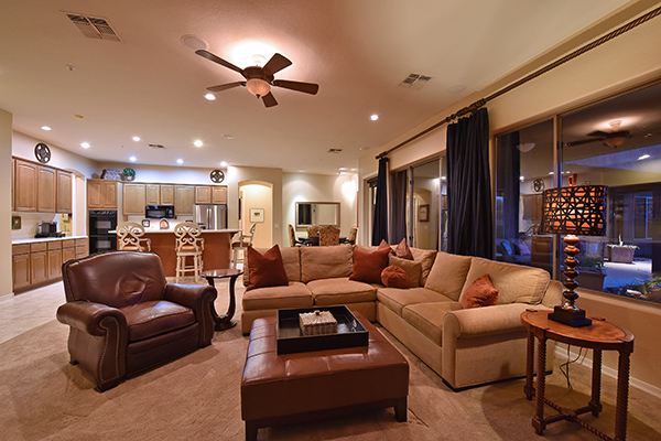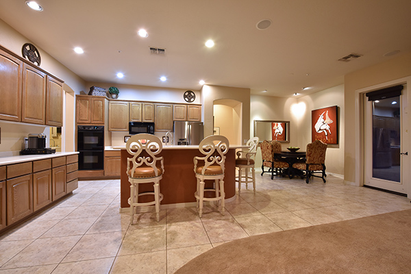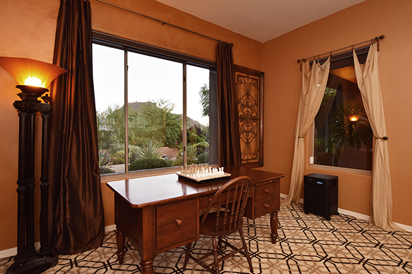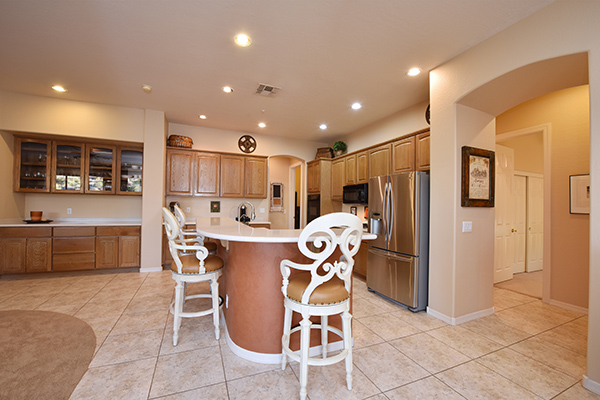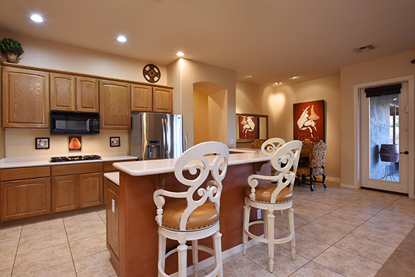 At over 4,000 sf, this five bed, four and half bath home includes such living spaces as: formal living, formal dining, den/office, a great room feel in the open kitchen and family room with cozy fireplace, and 700 sf attached casita with bedroom, bath, and living room with a wet bar and exterior access. The expanded drive way is set back from the road and leads to the four car garage.